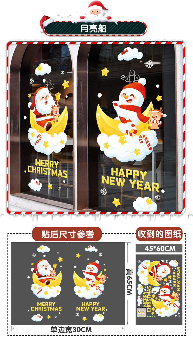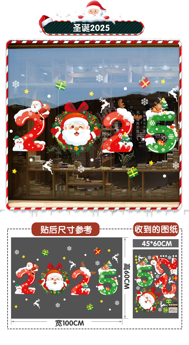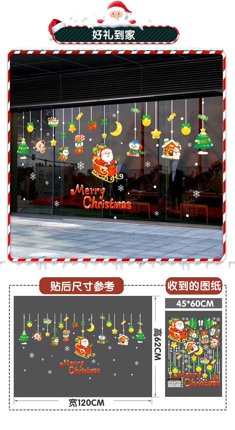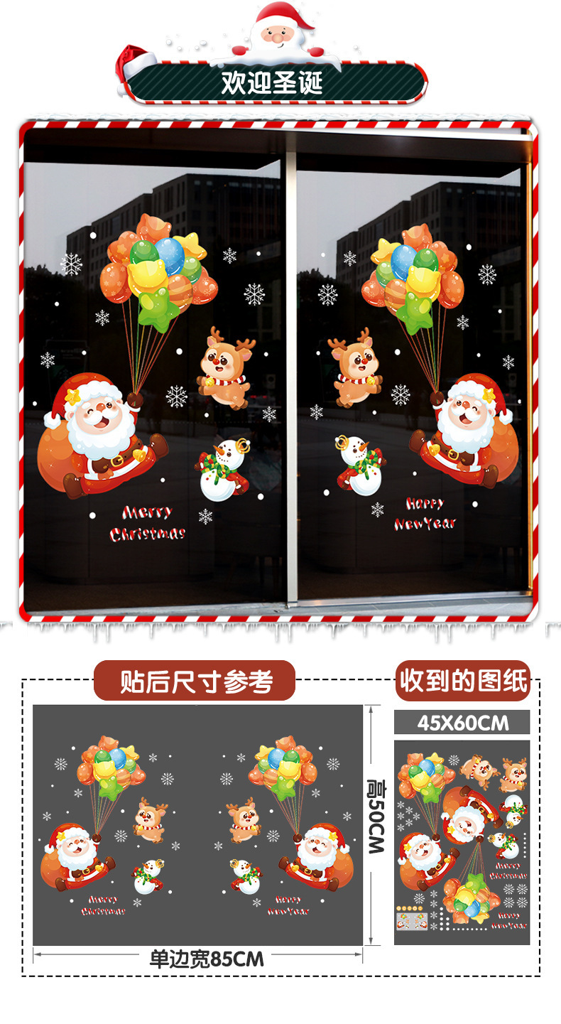 2026圣诞节装饰自粘贴纸店铺橱窗静电玻璃贴门贴场景布置窗花贴画