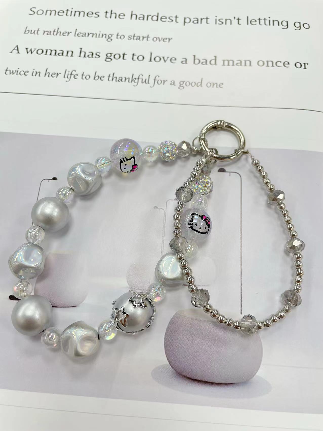 日韩风精美爱心可爱串珠链条耳机保护套挂件相机装饰链重工手机链