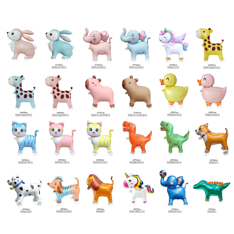 新款大号动物站立气球儿童节日布置气球公园夜市摆摊带轮走路气球