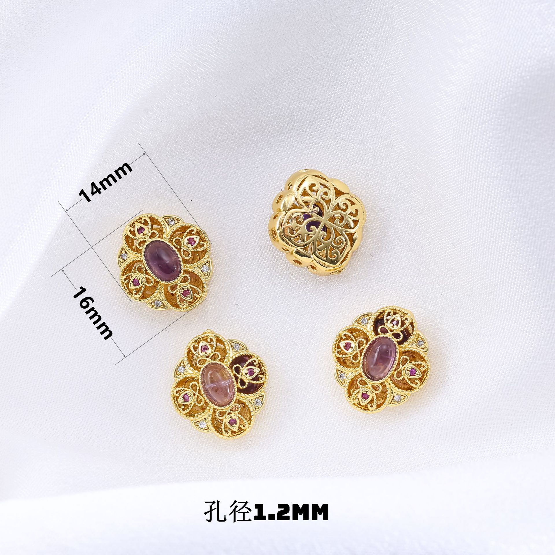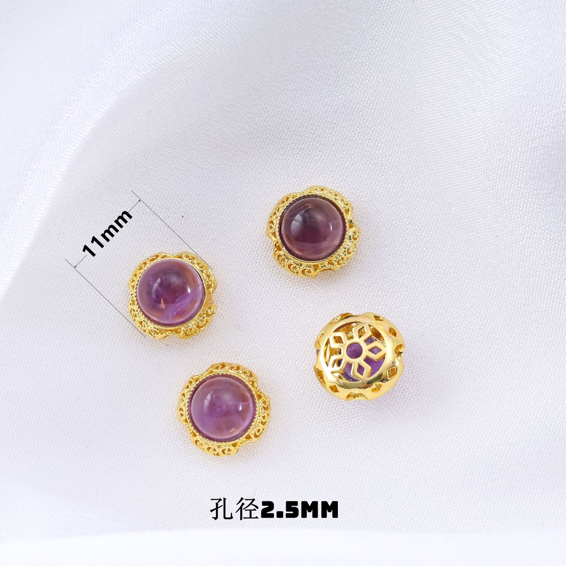 新款保色铜镀18K配件天然紫水晶戒面编绳魔盒DIY手链项链通孔配饰