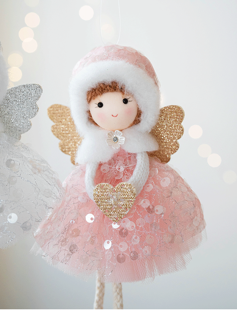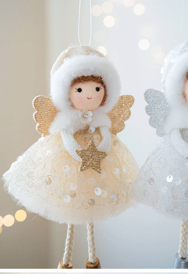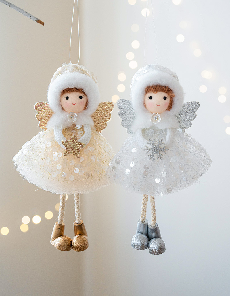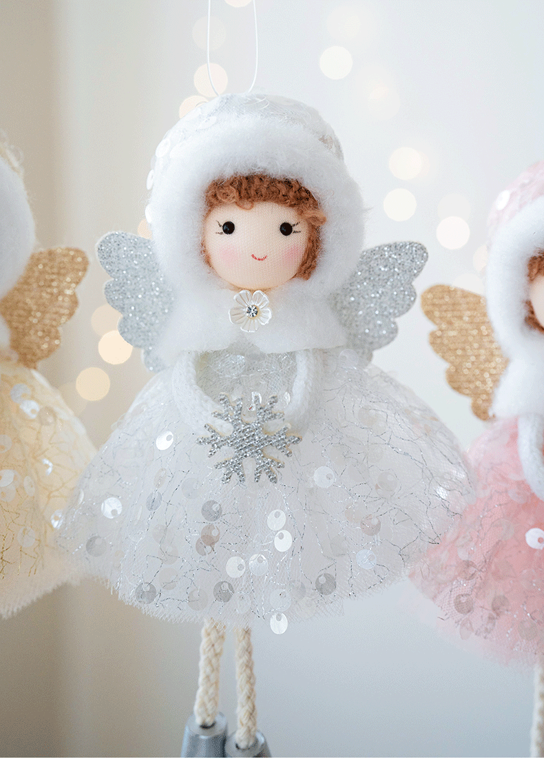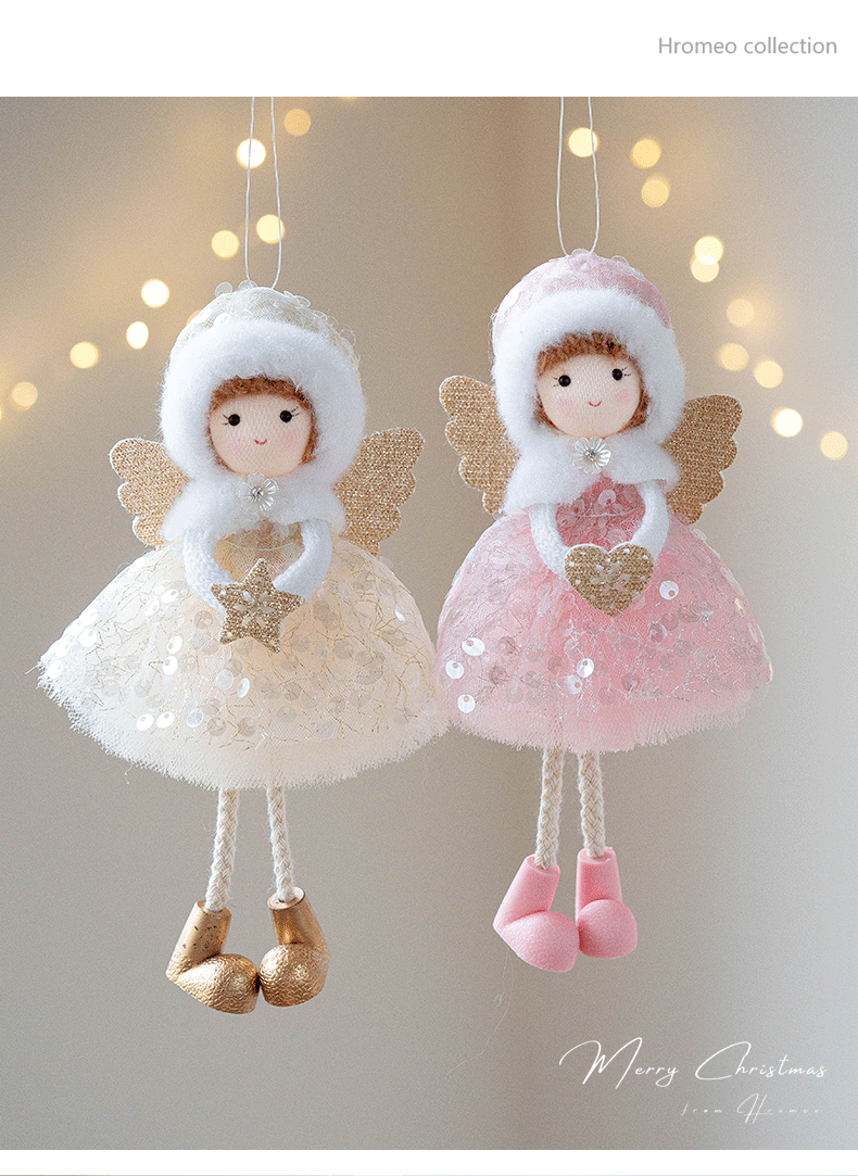 跨境新品圣诞节装饰冬日网纱毛绒帽天使大眼睛女孩挂件圣诞树挂件