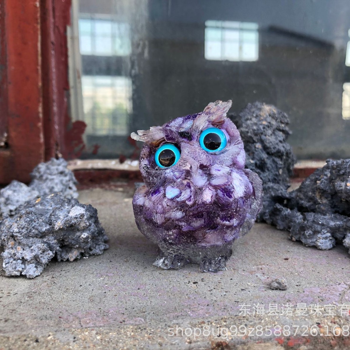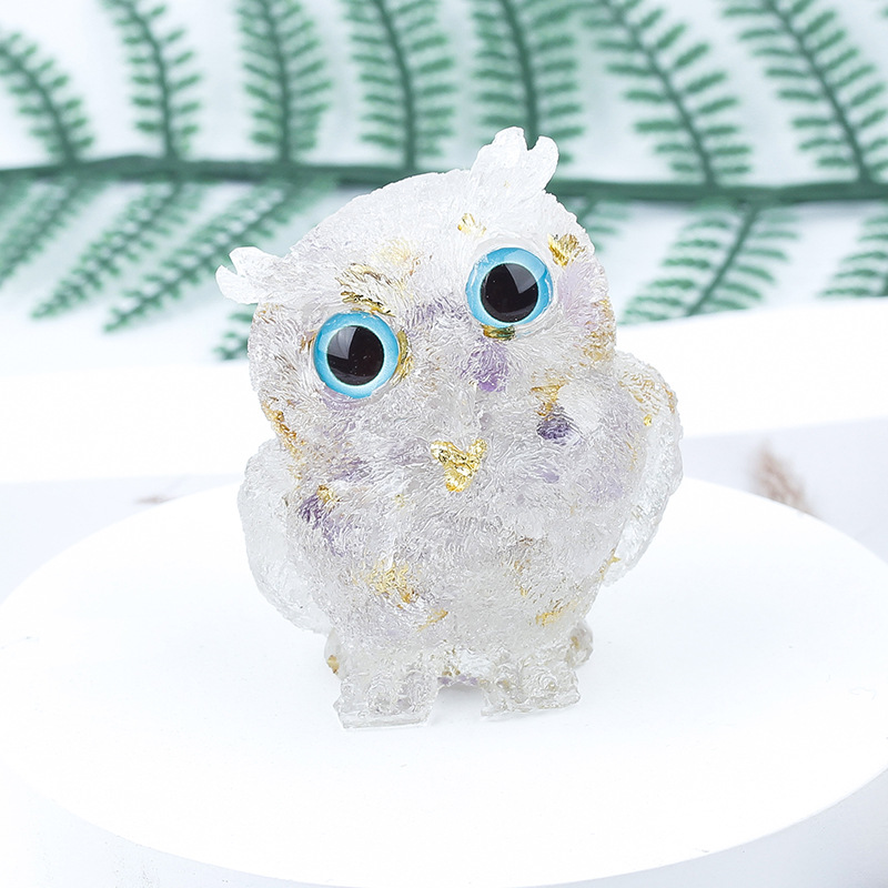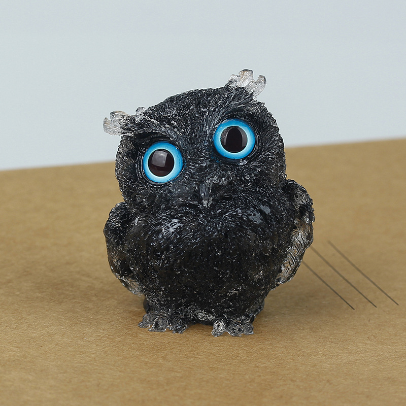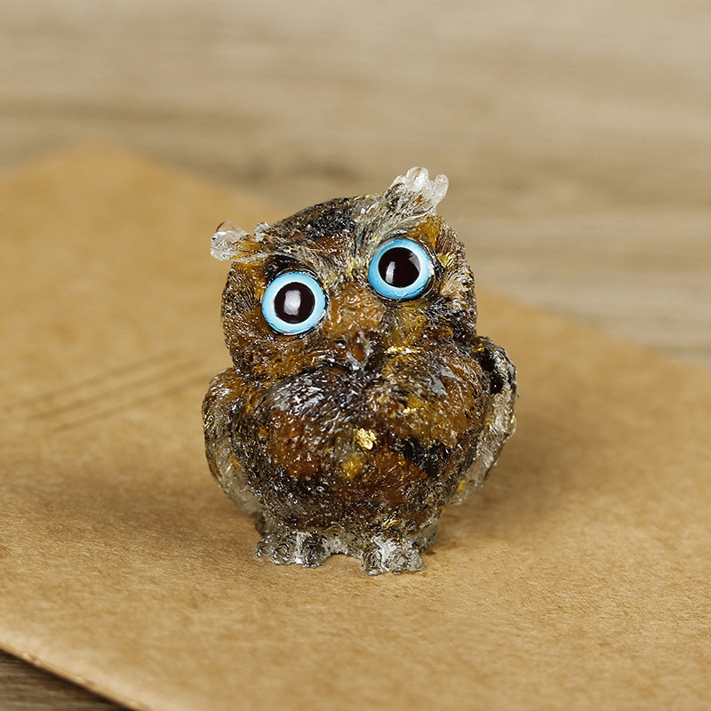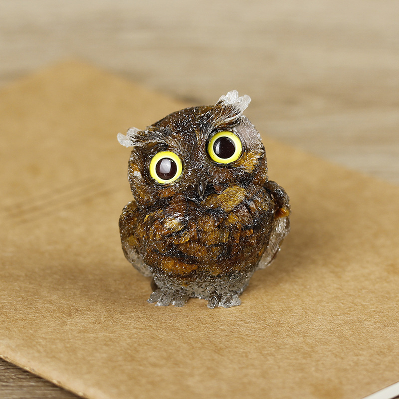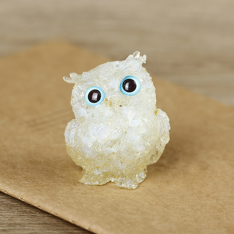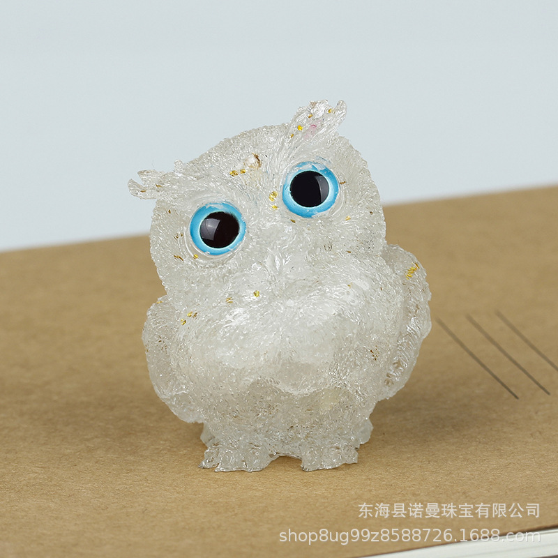 天然水晶猫头鹰摆件树脂高级感小众桌面小摆件萌粒家居装饰品礼品