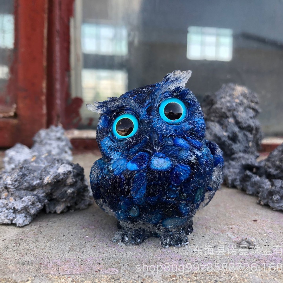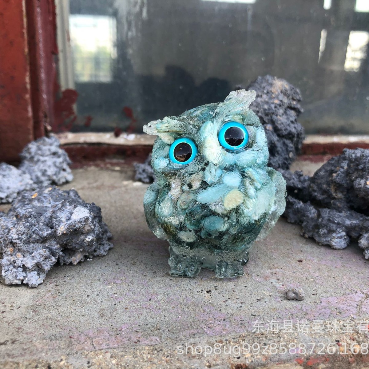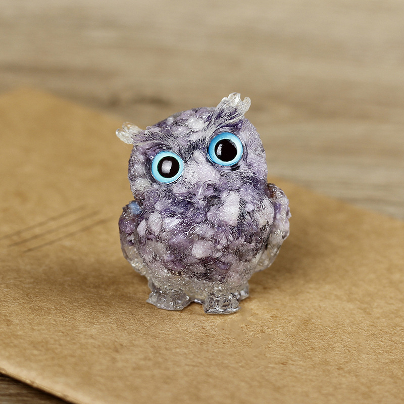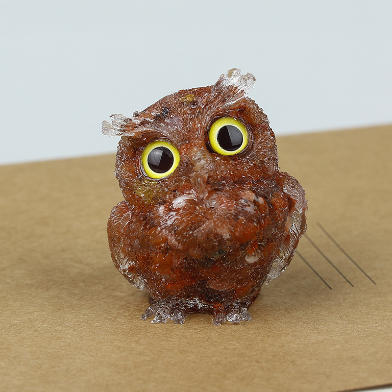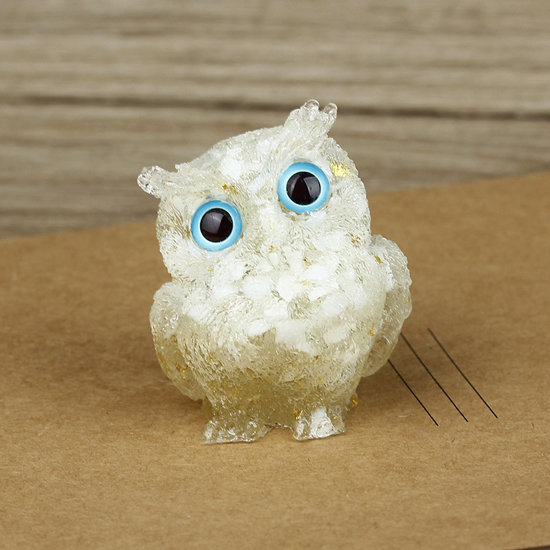 天然水晶猫头鹰摆件树脂高级感小众桌面小摆件萌粒家居装饰品礼品