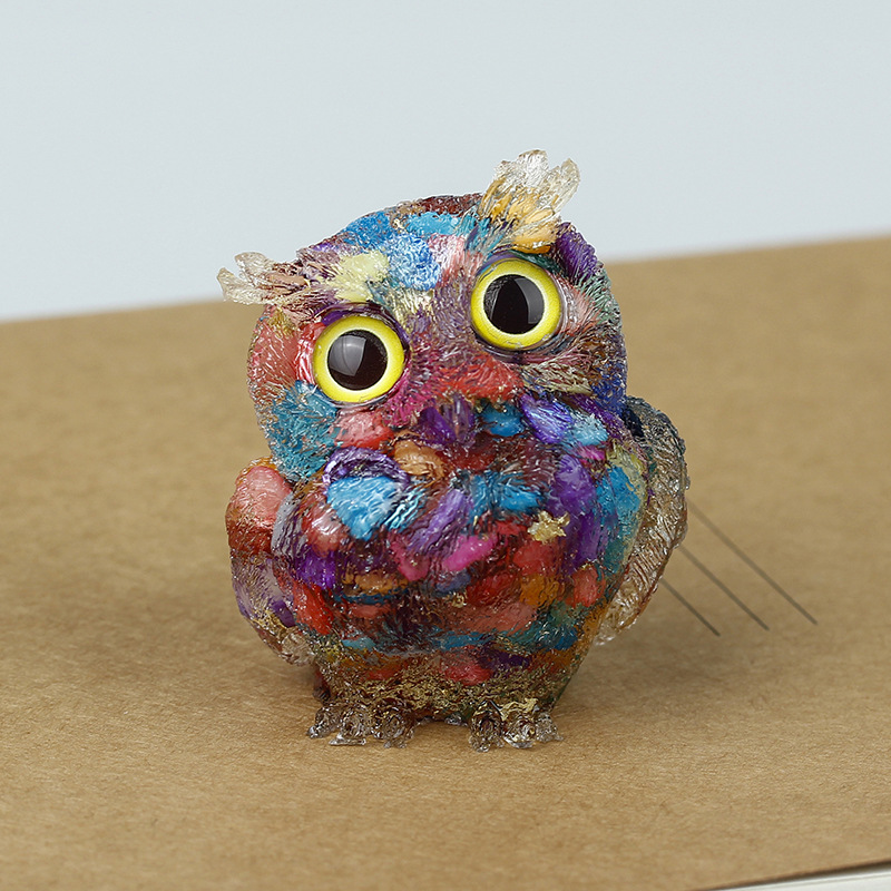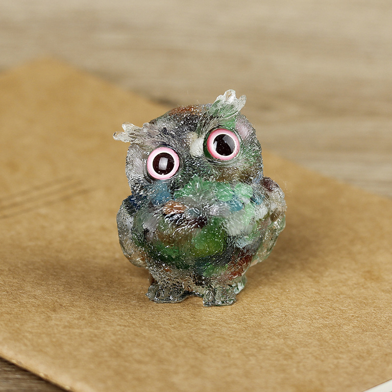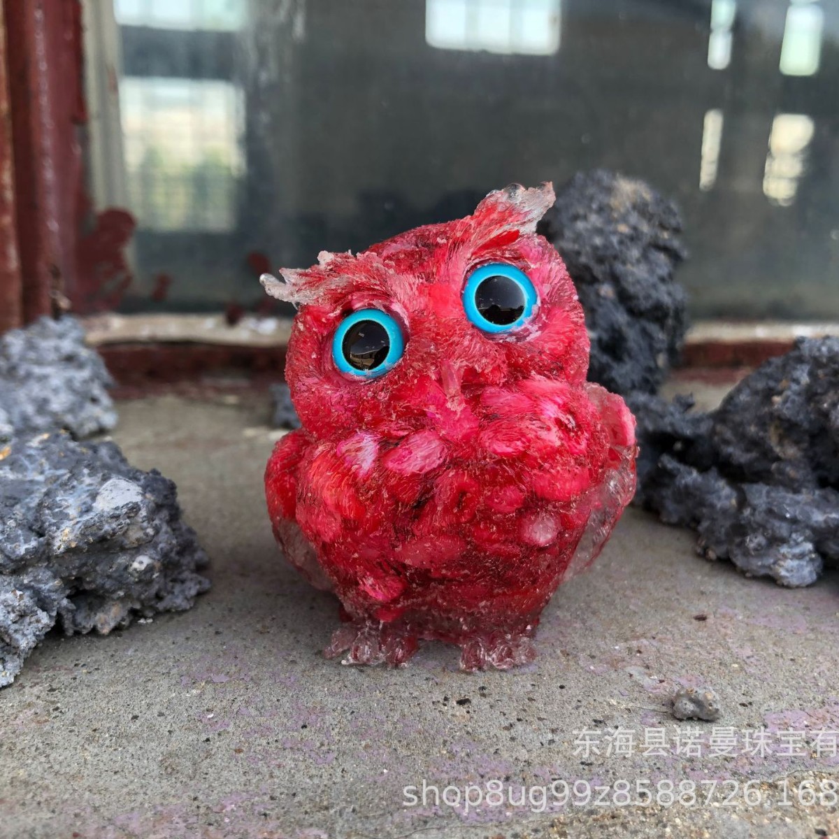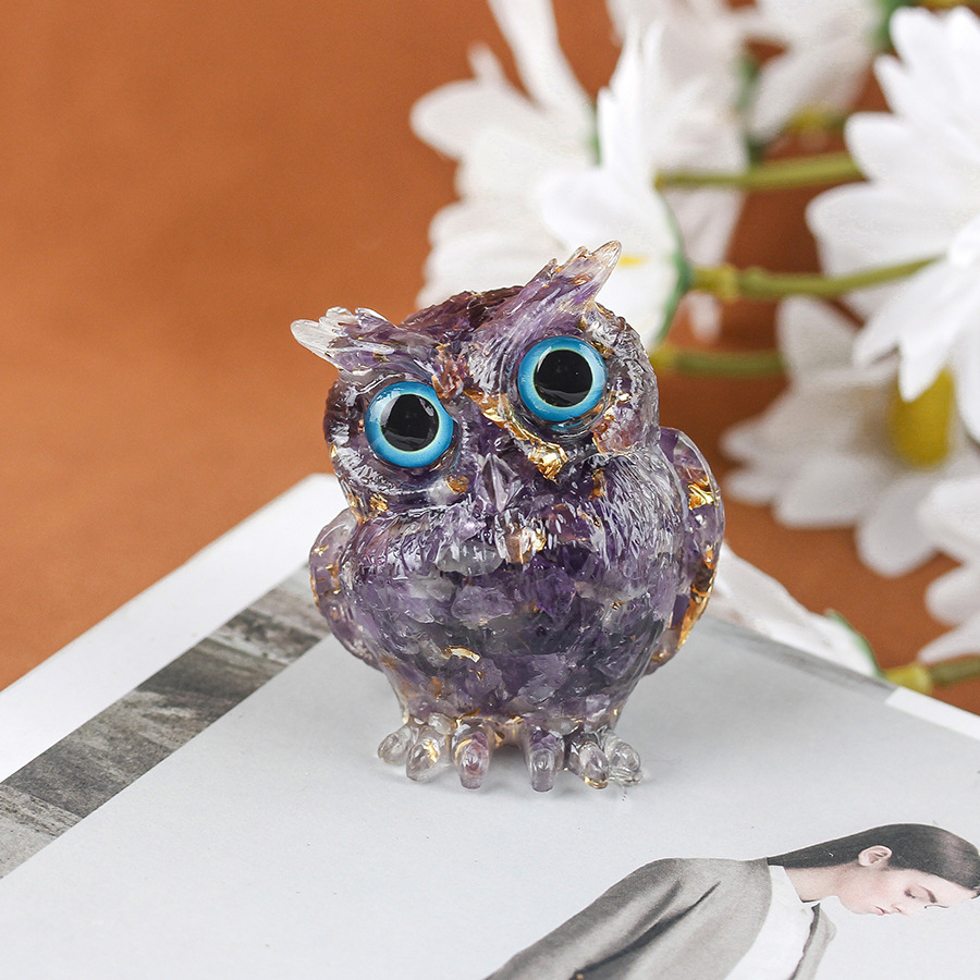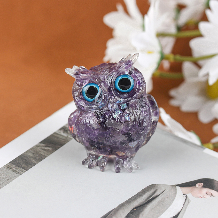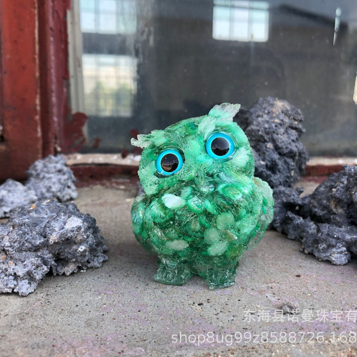 天然水晶猫头鹰摆件树脂高级感小众桌面小摆件萌粒家居装饰品礼品