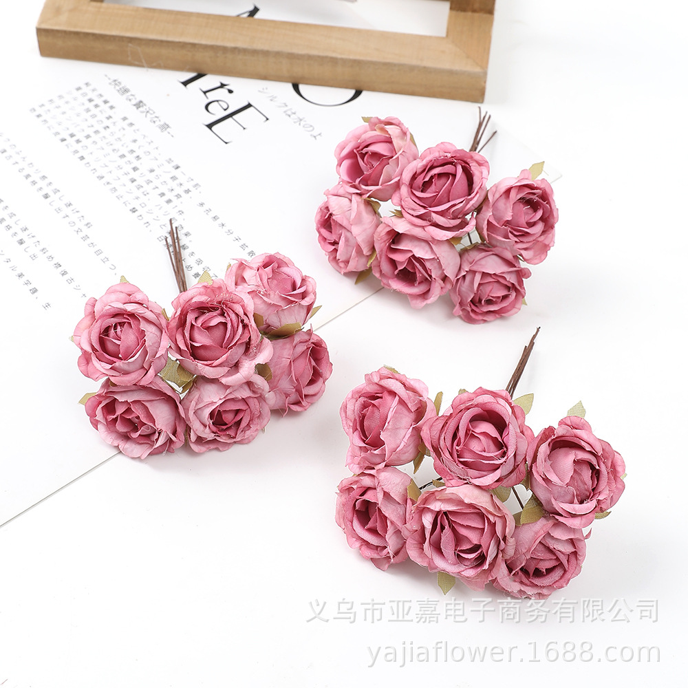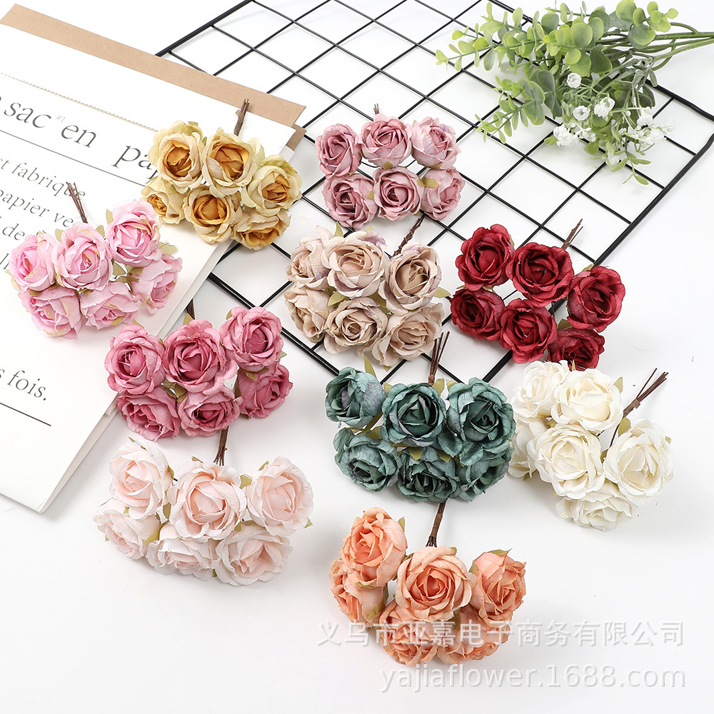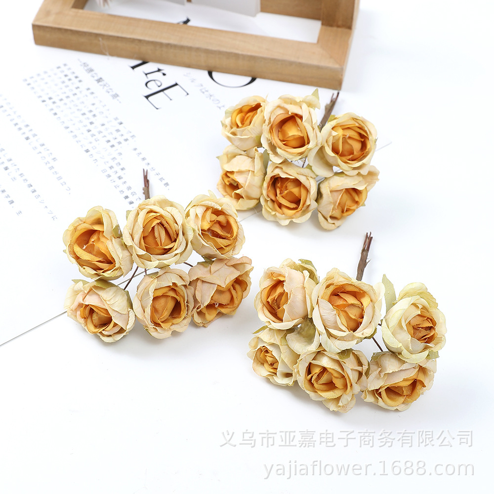 现货欧式复古仿真花玫瑰花束假花场景布置头饰diy材料礼盒装饰品