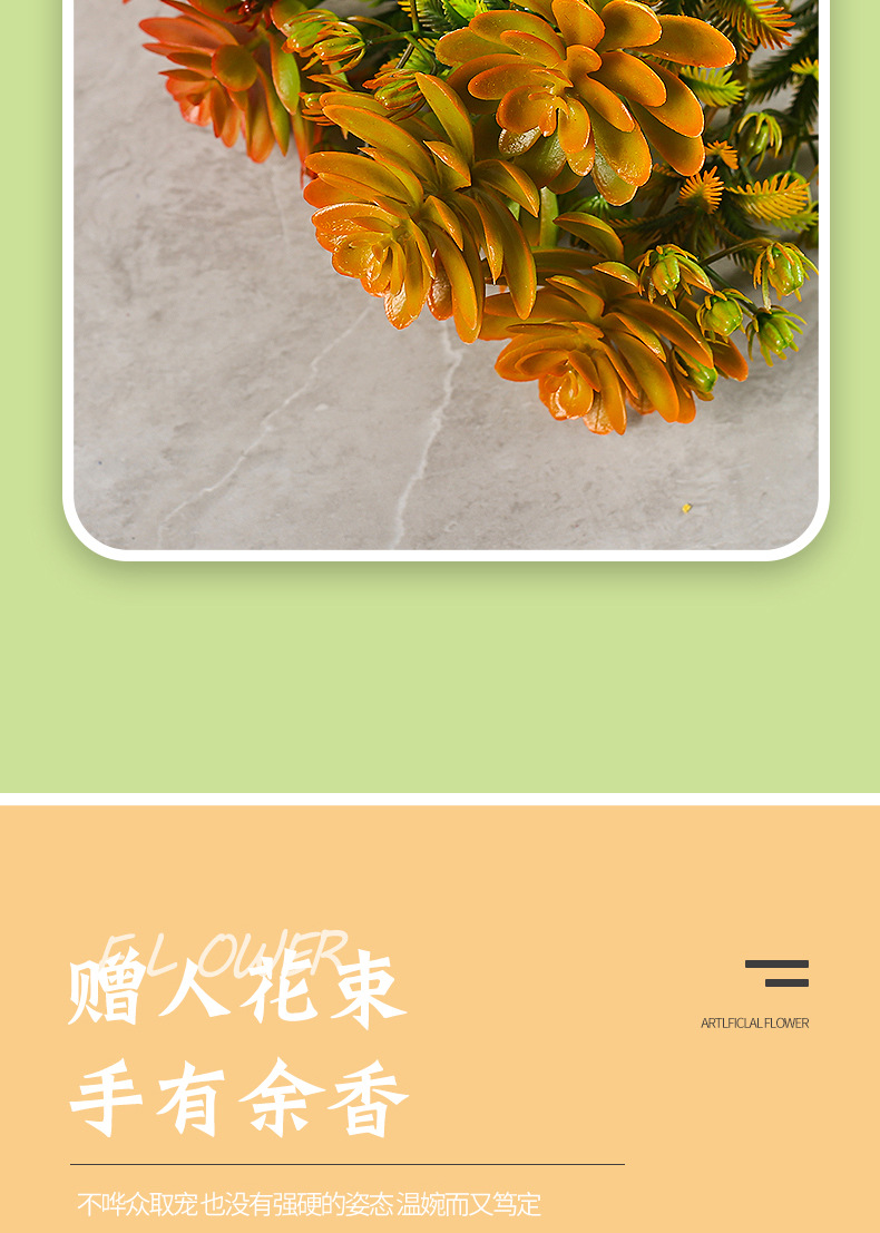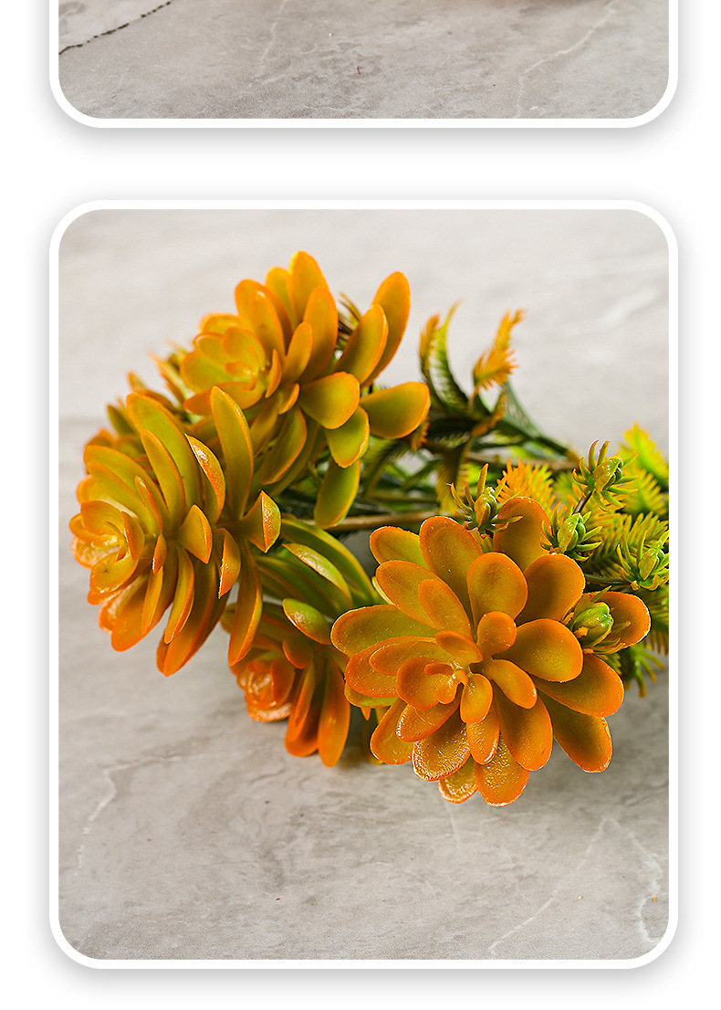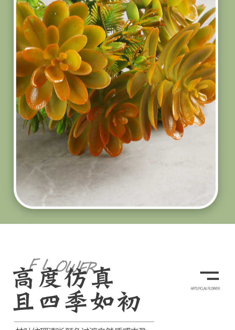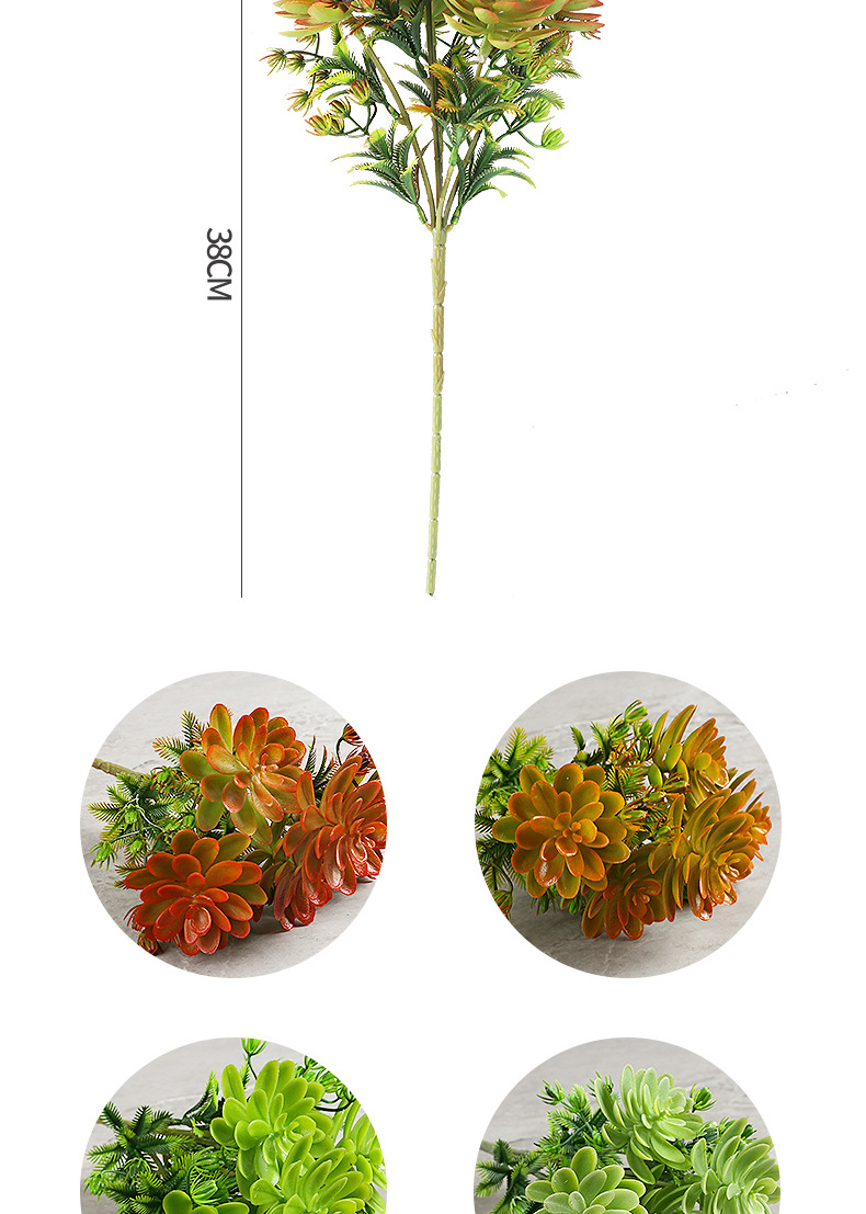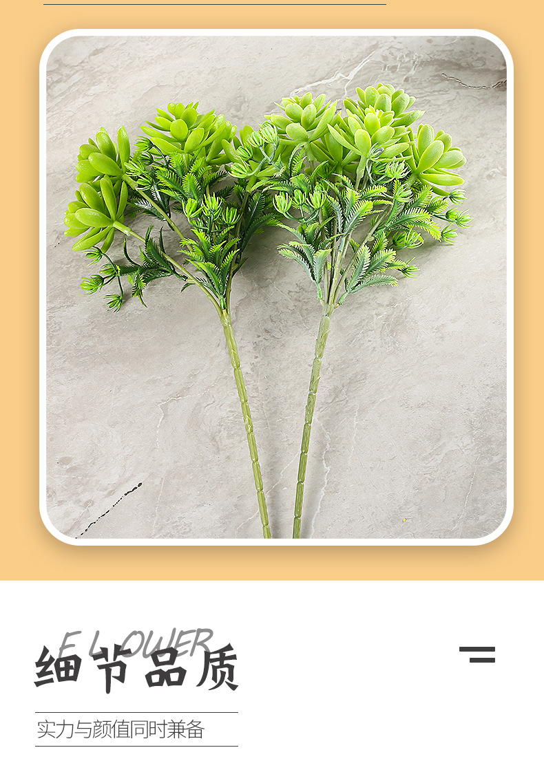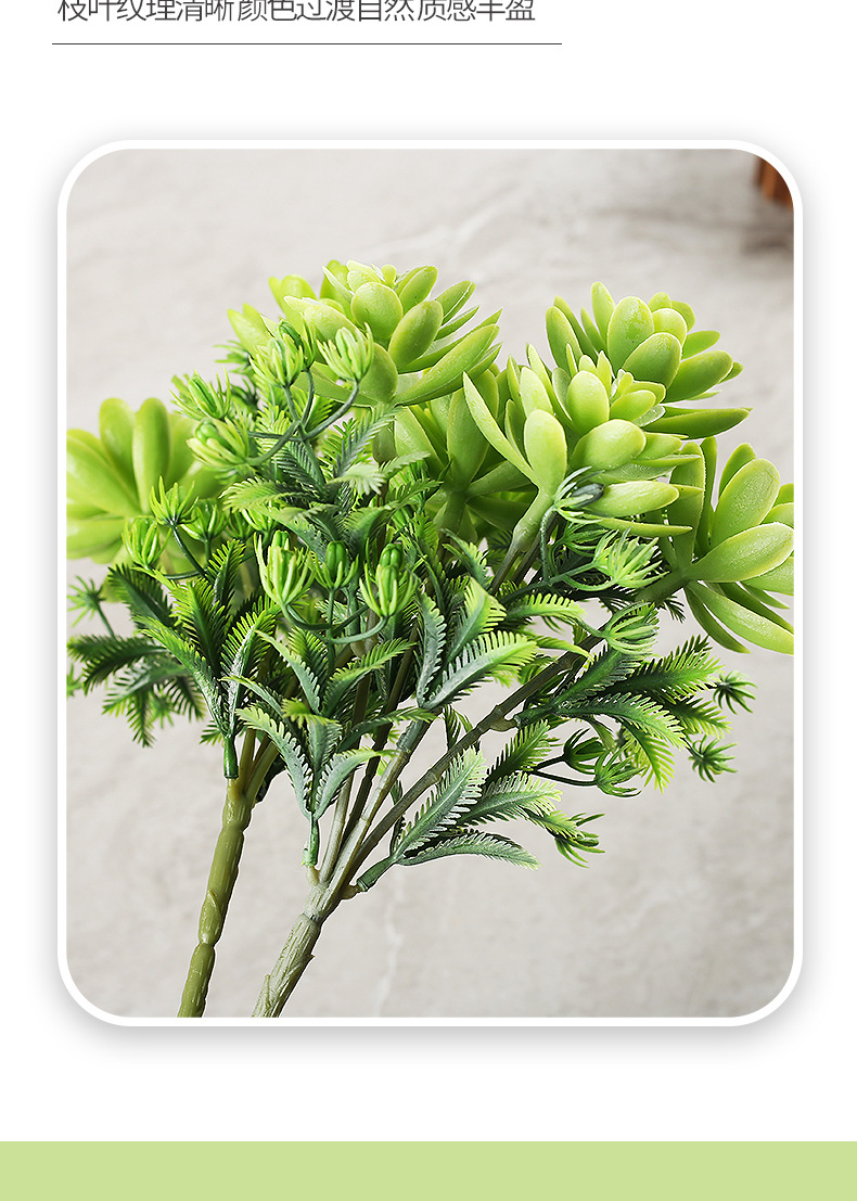 新款高枝5头多肉莲花 仿真多肉植物 塑料假花盆栽软装装饰配件