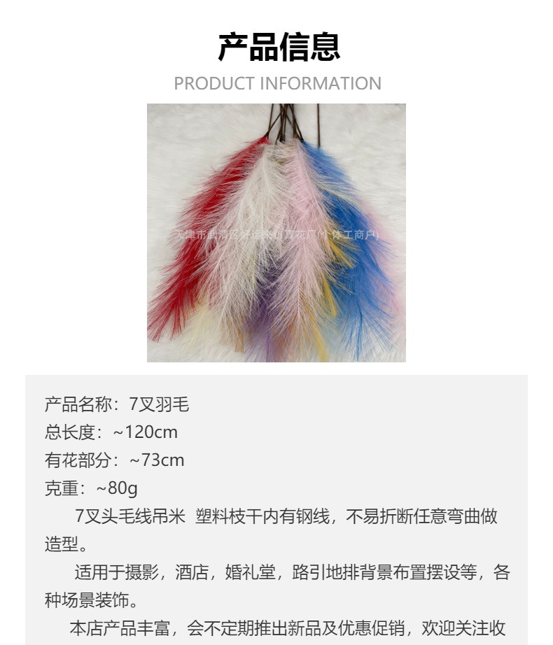 仿真花单枝烟花7叉芦苇羽毛 户外白日焰火梦幻花束婚礼路引装饰花
