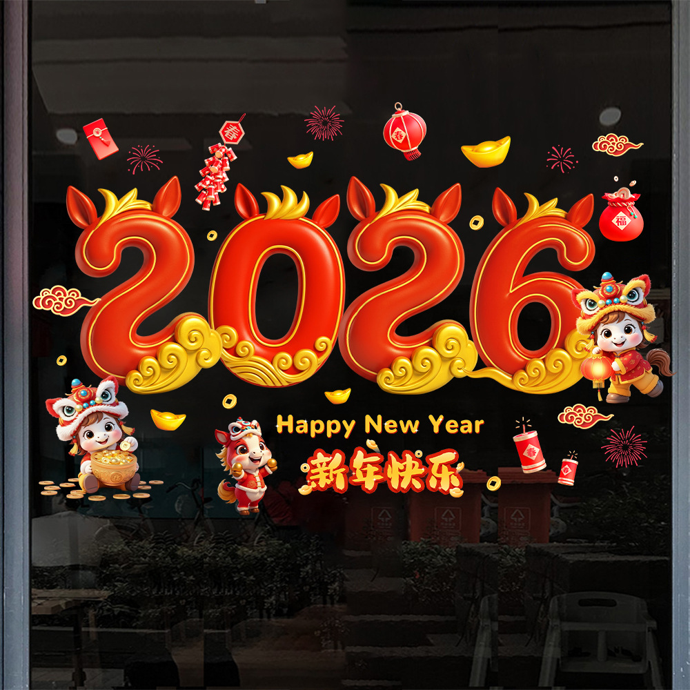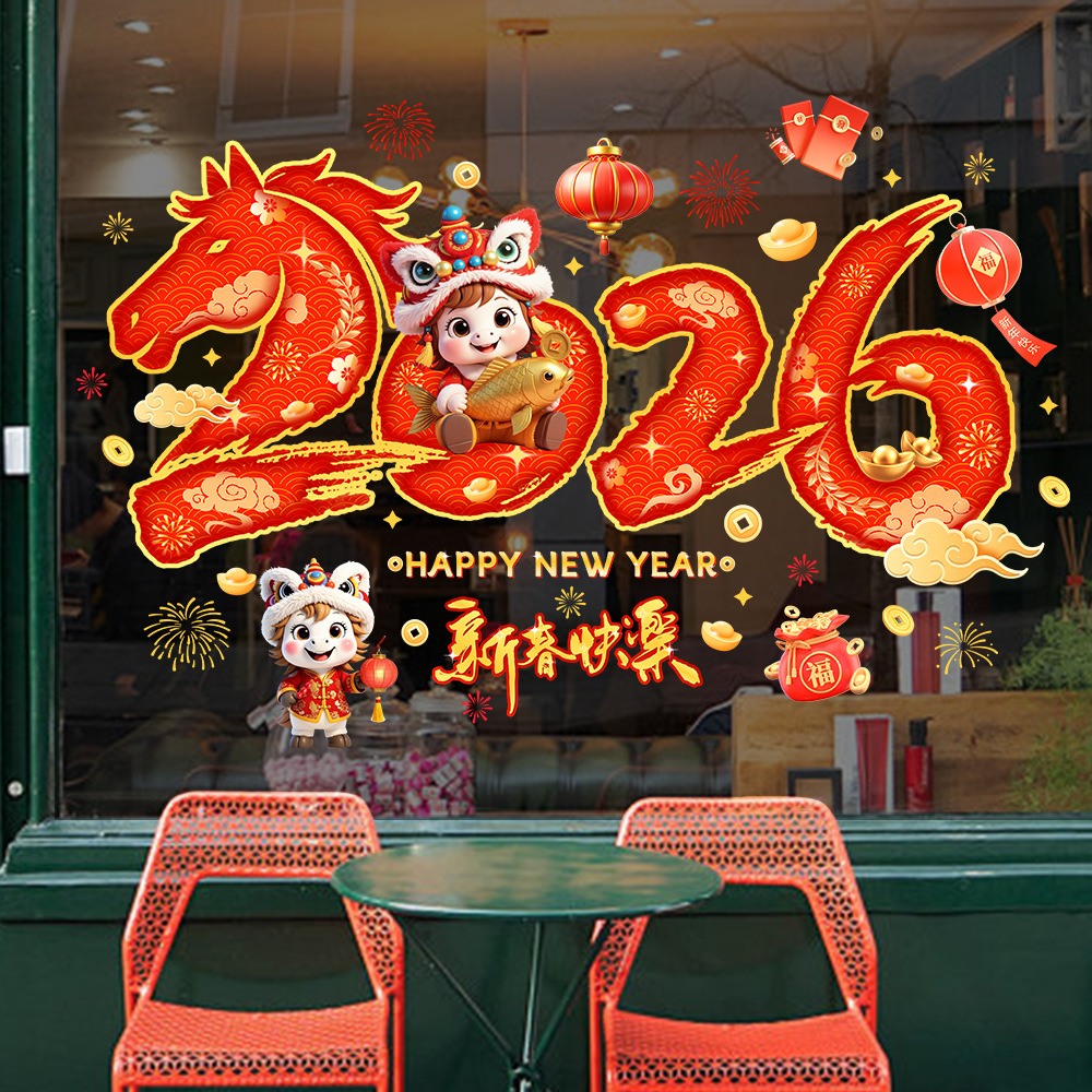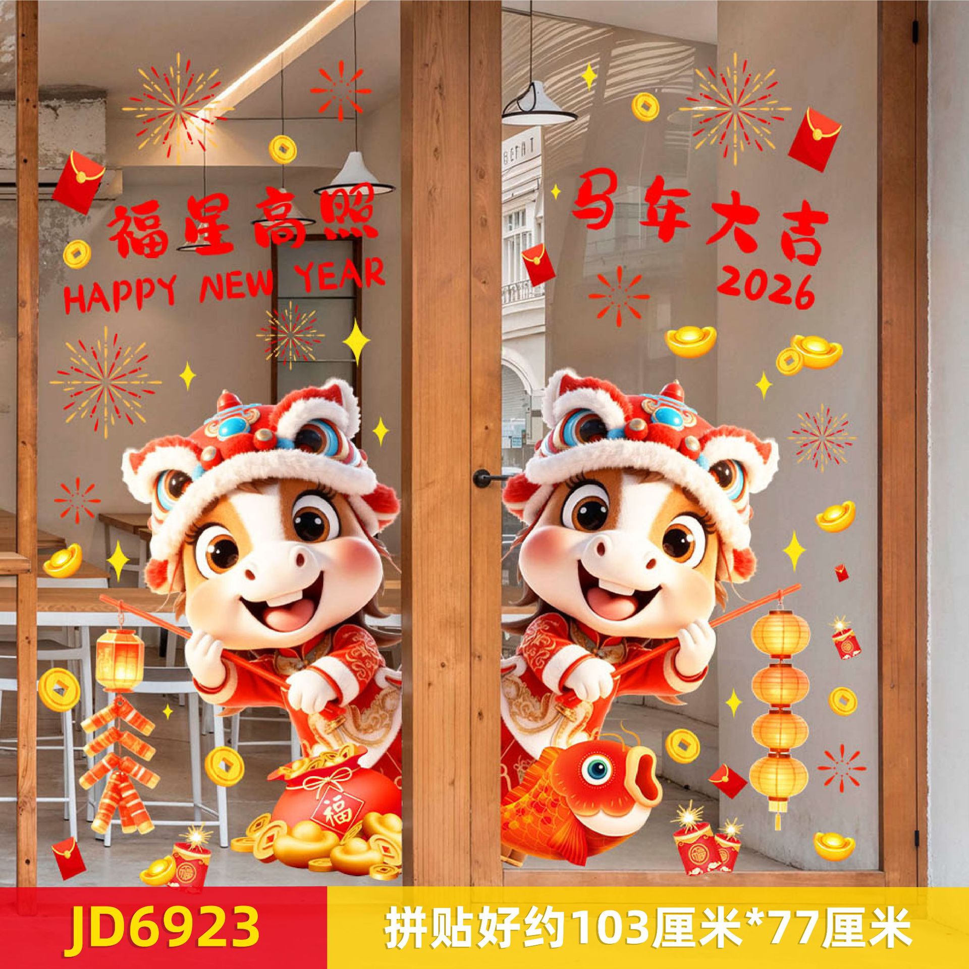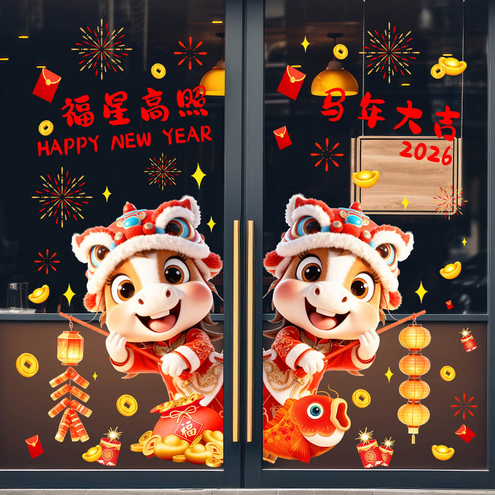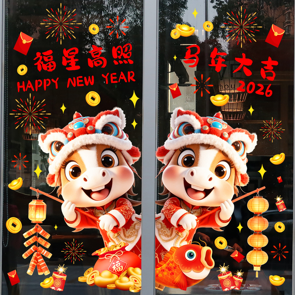 爱客2026卡通马年生肖福字门贴 商场布置春节静电贴纸新年贴纸