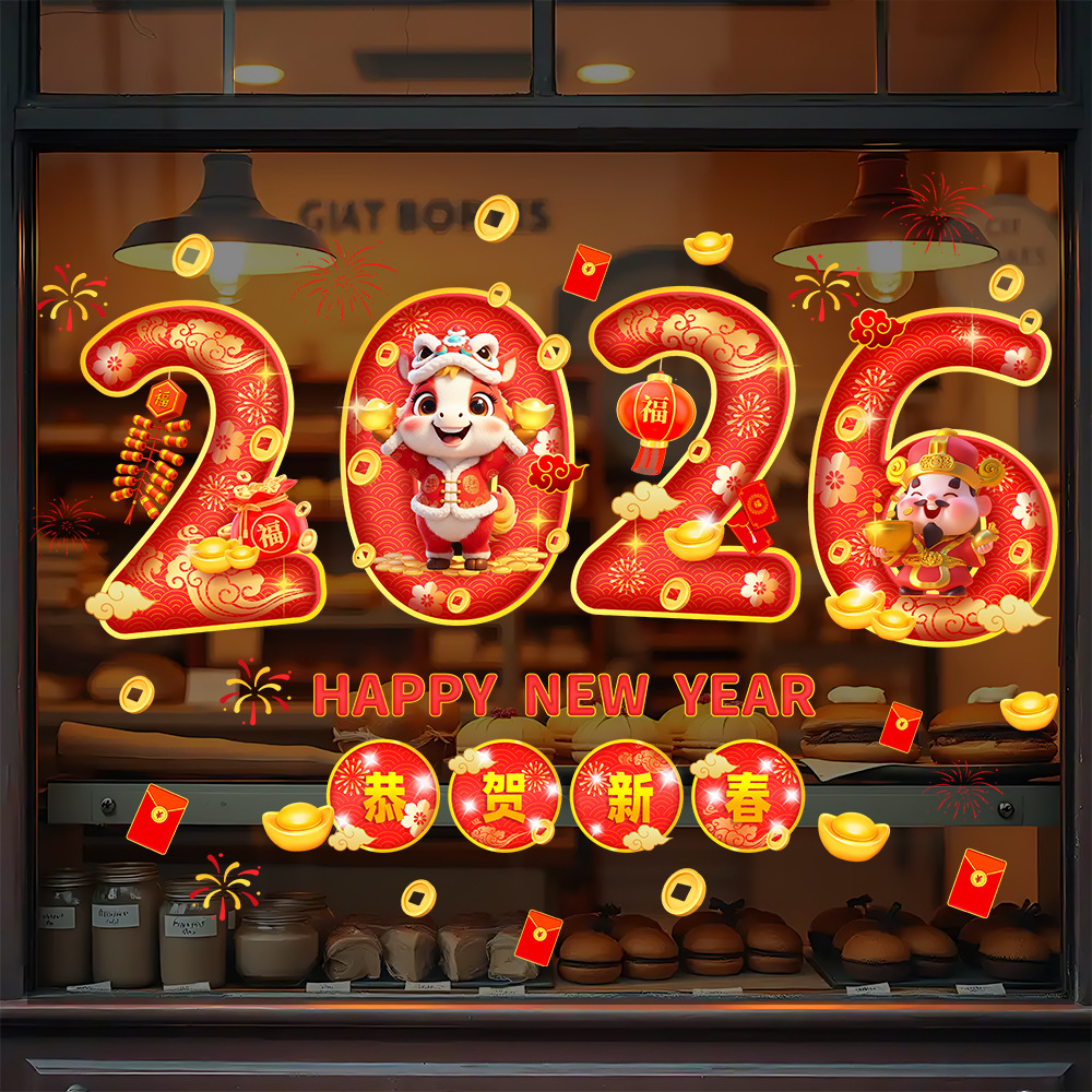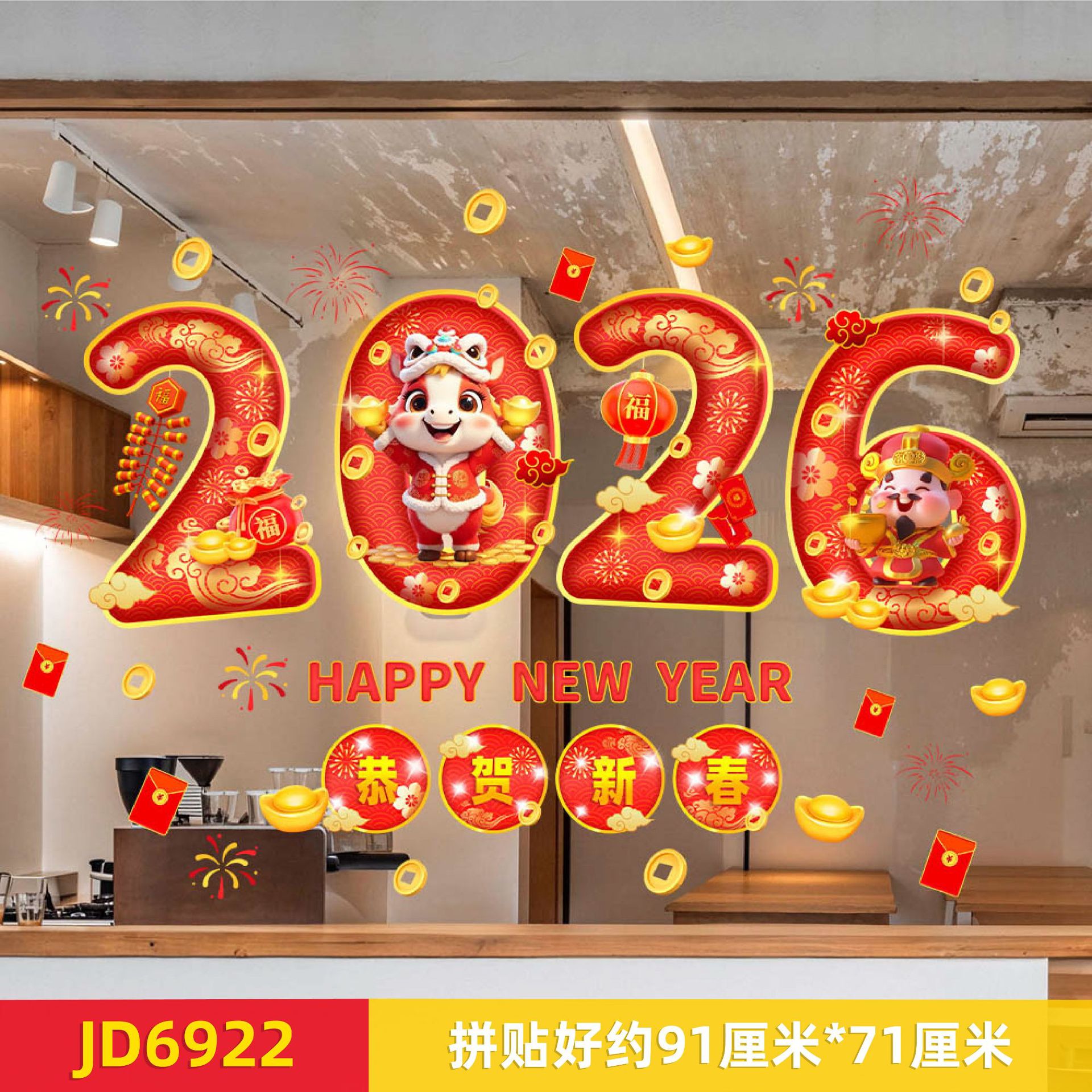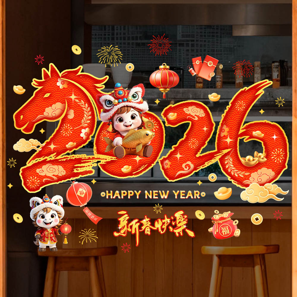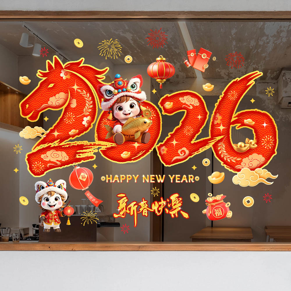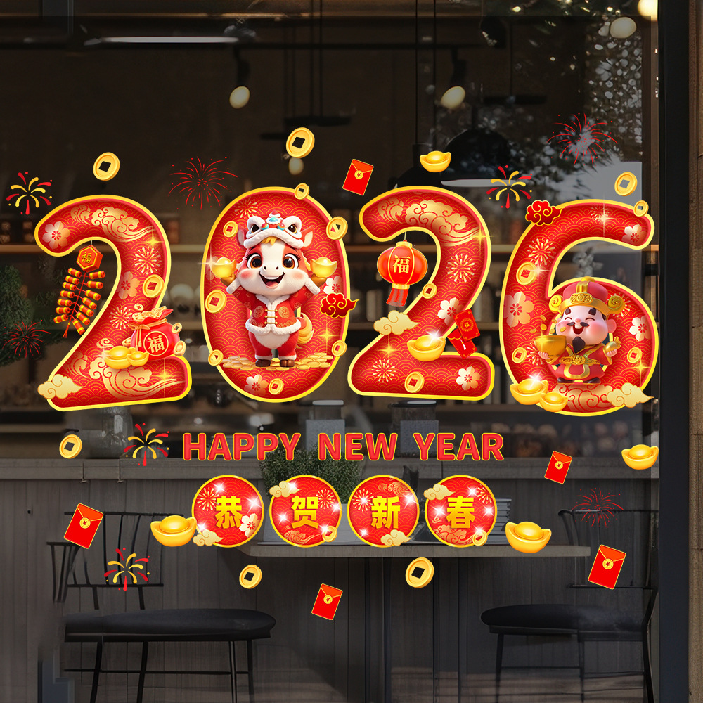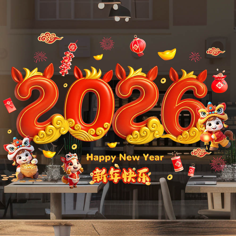 爱客2026卡通马年生肖福字门贴 商场布置春节静电贴纸新年贴纸