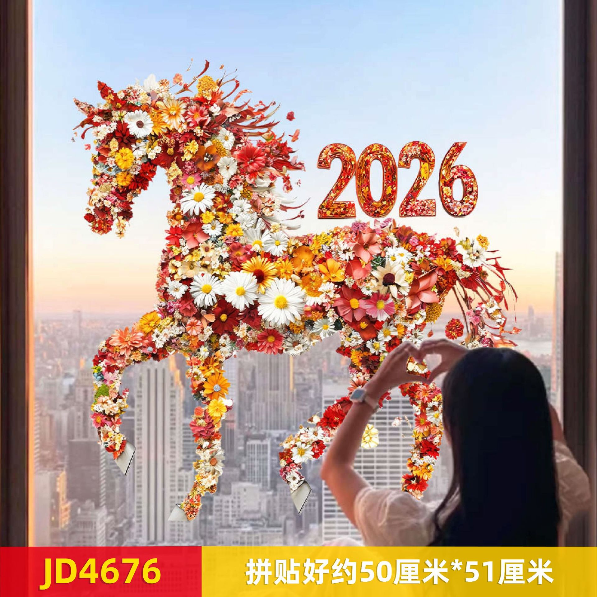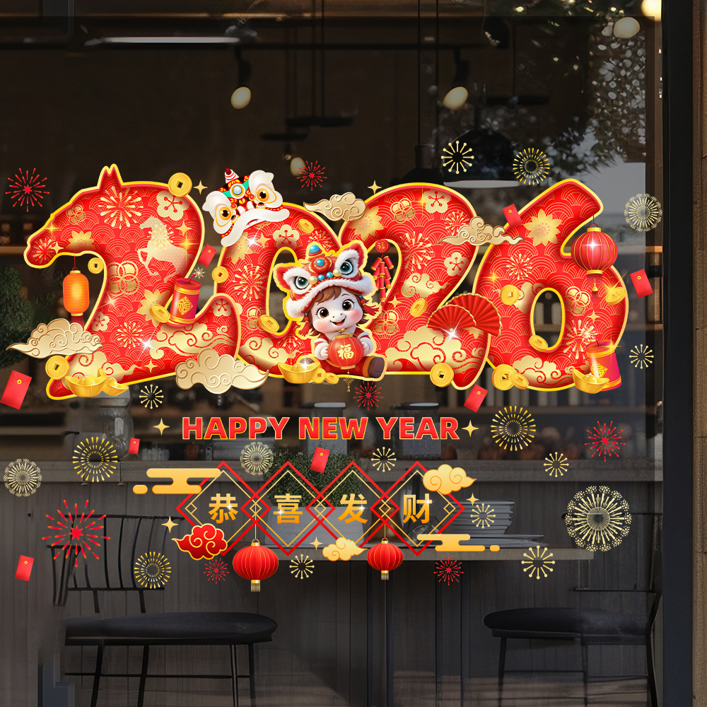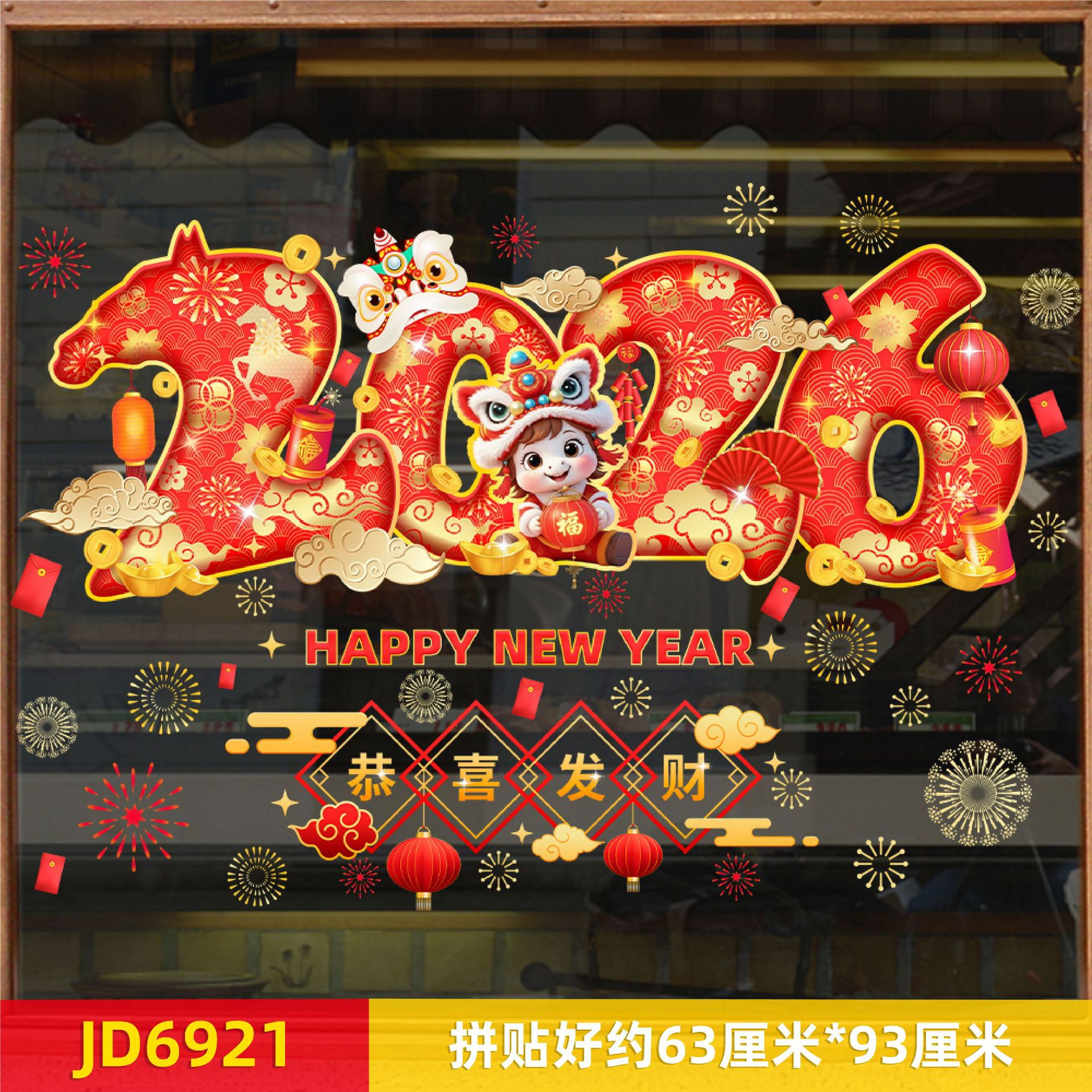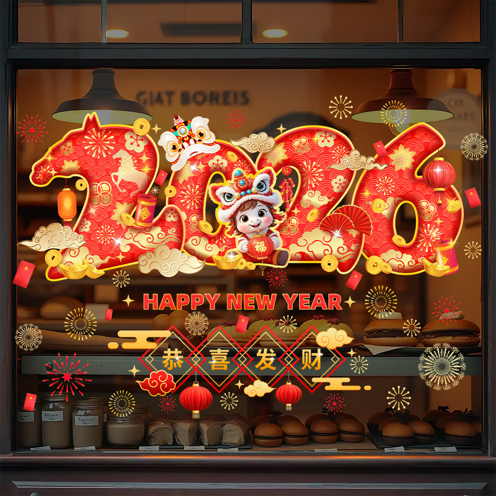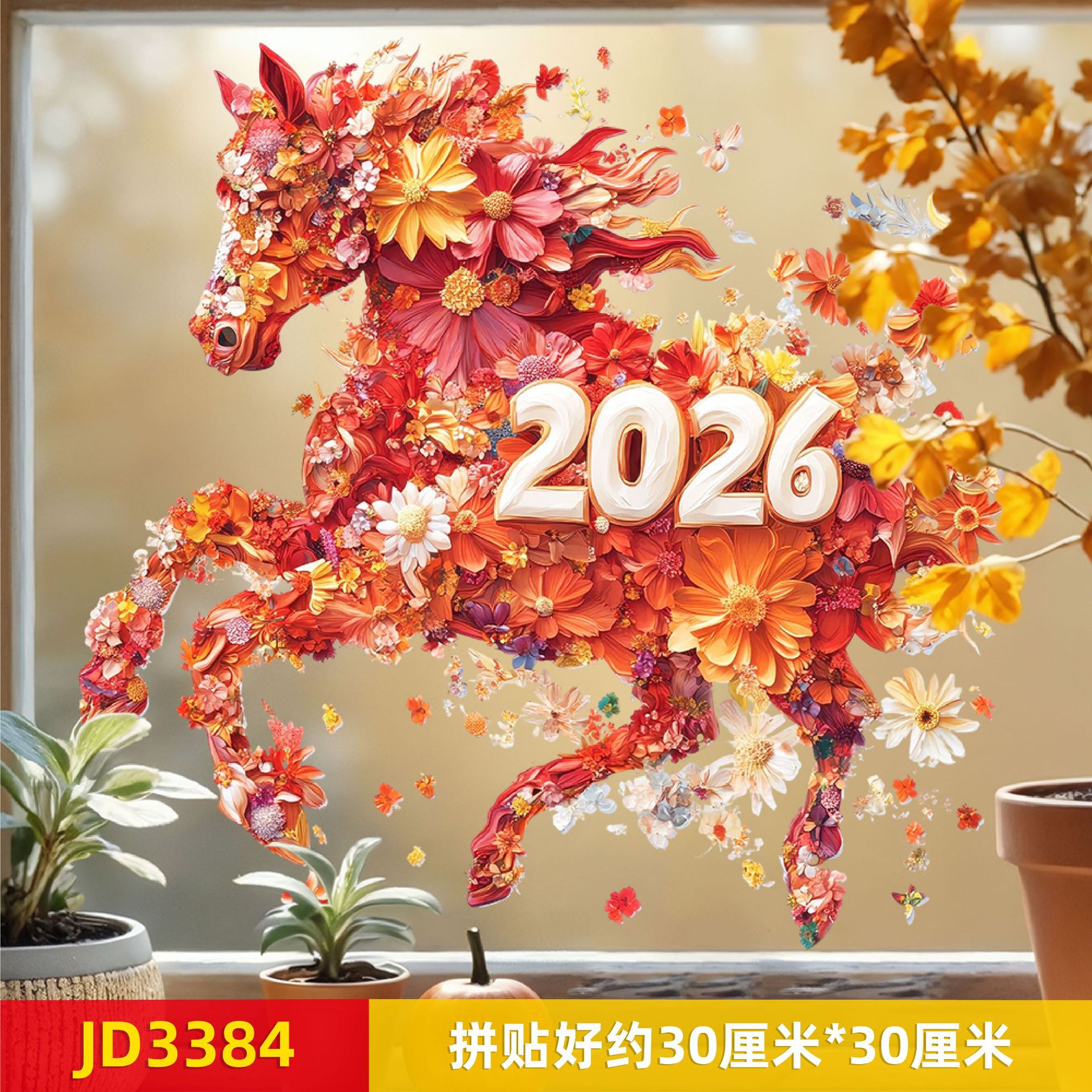 爱客2026卡通马年生肖福字门贴 商场布置春节静电贴纸新年贴纸