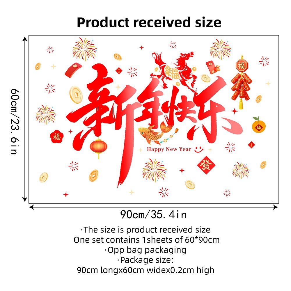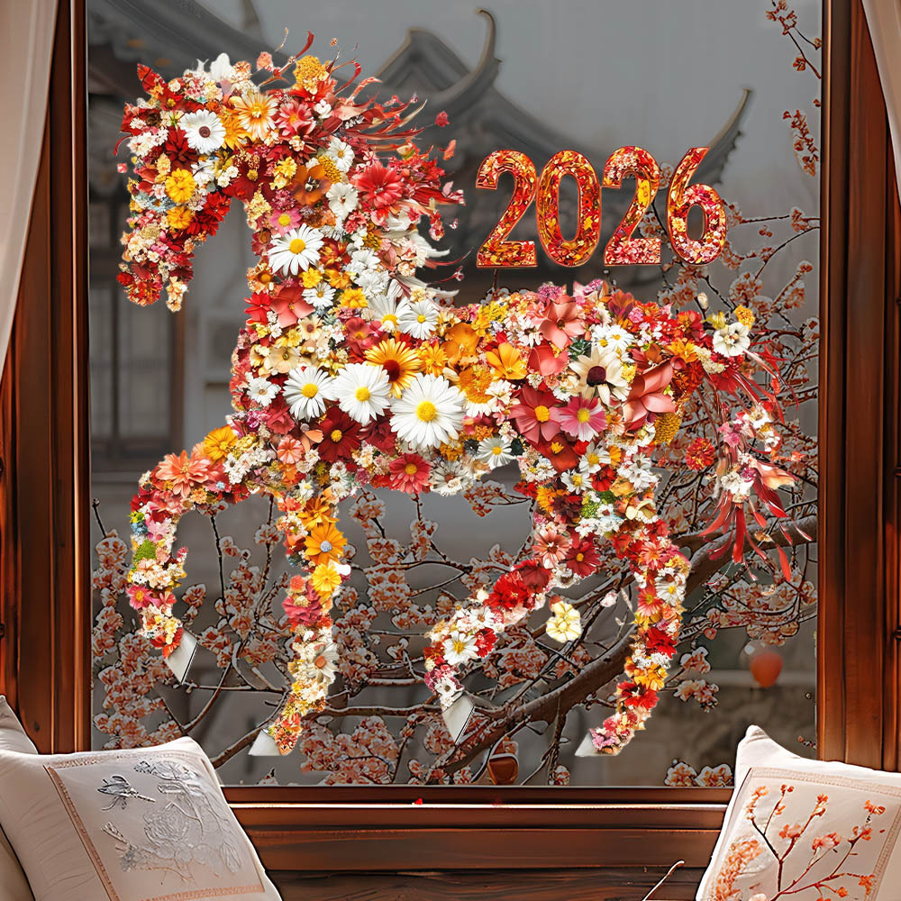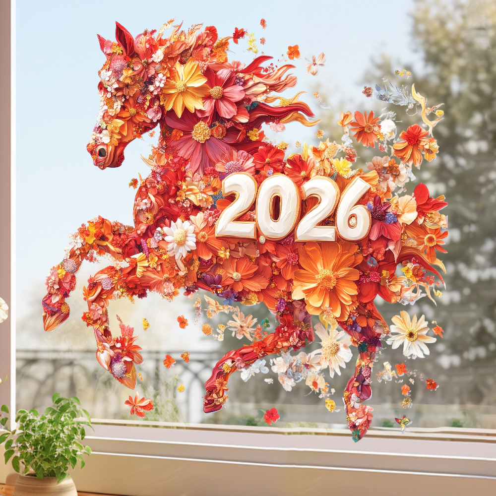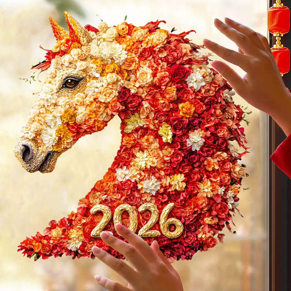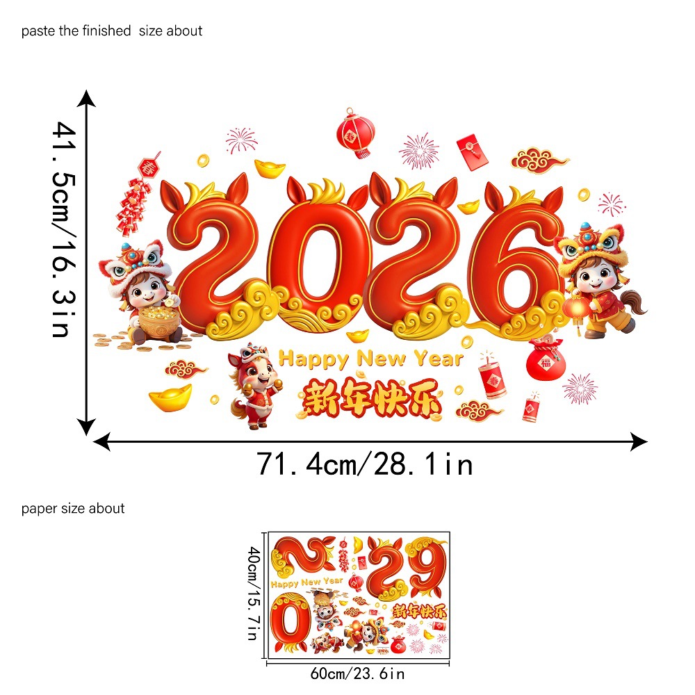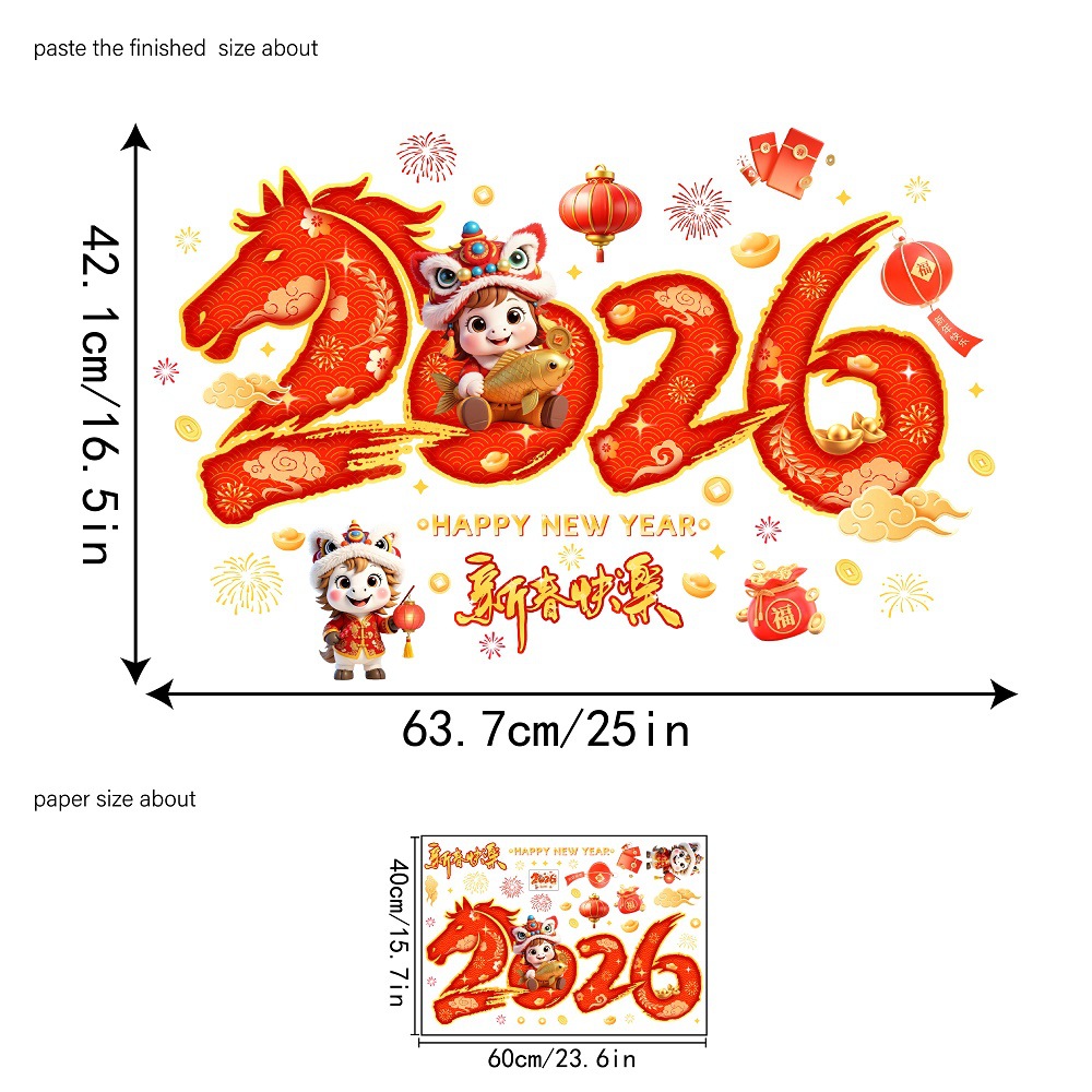 爱客2026卡通马年生肖福字门贴 商场布置春节静电贴纸新年贴纸