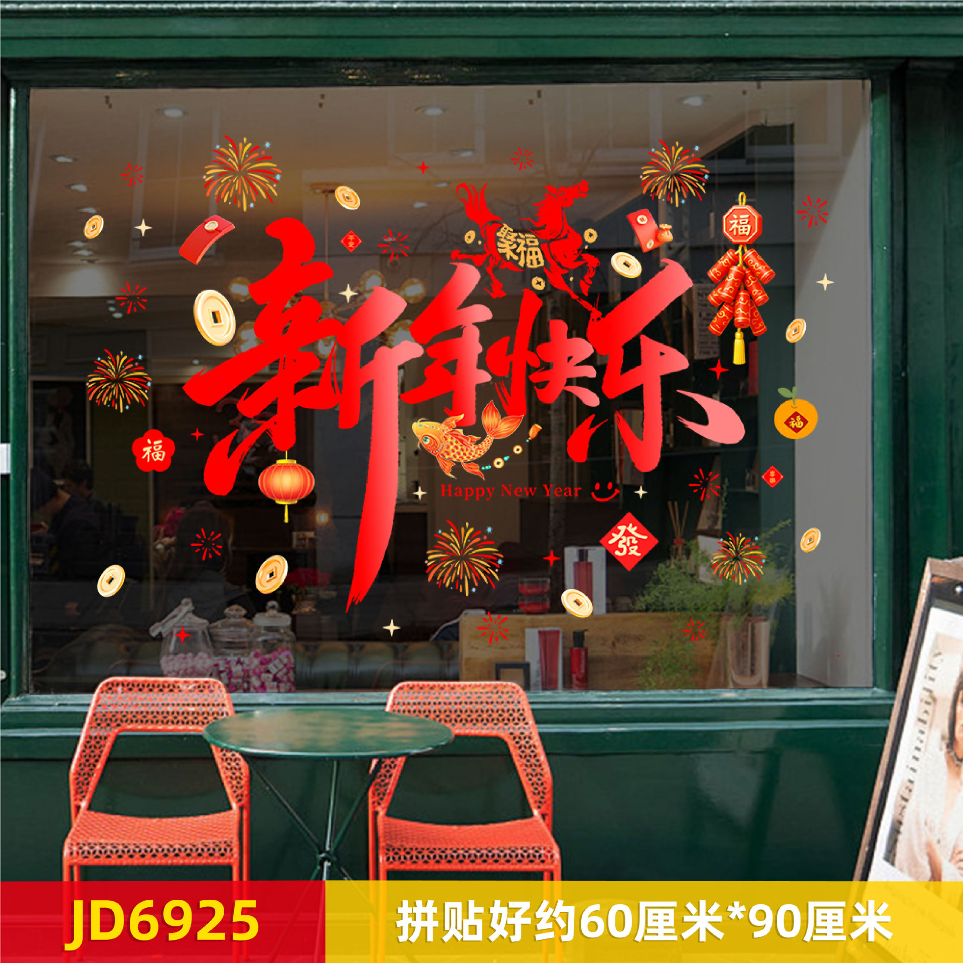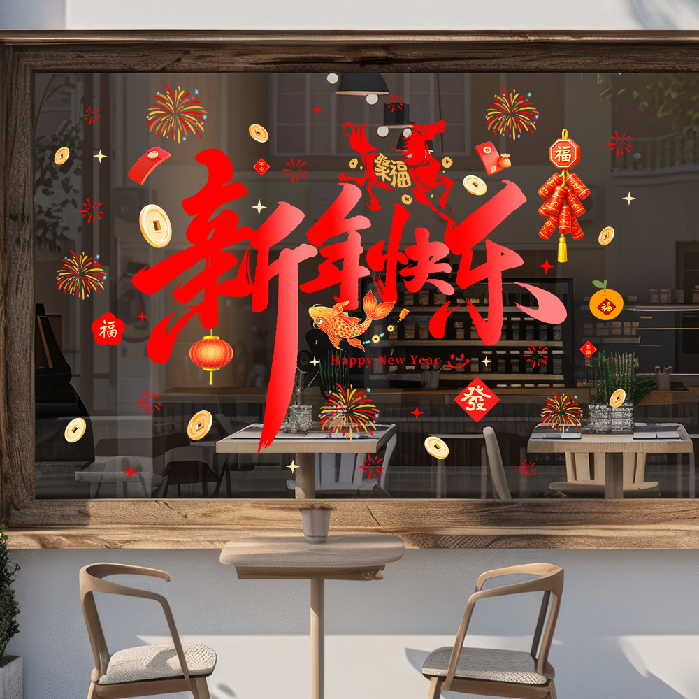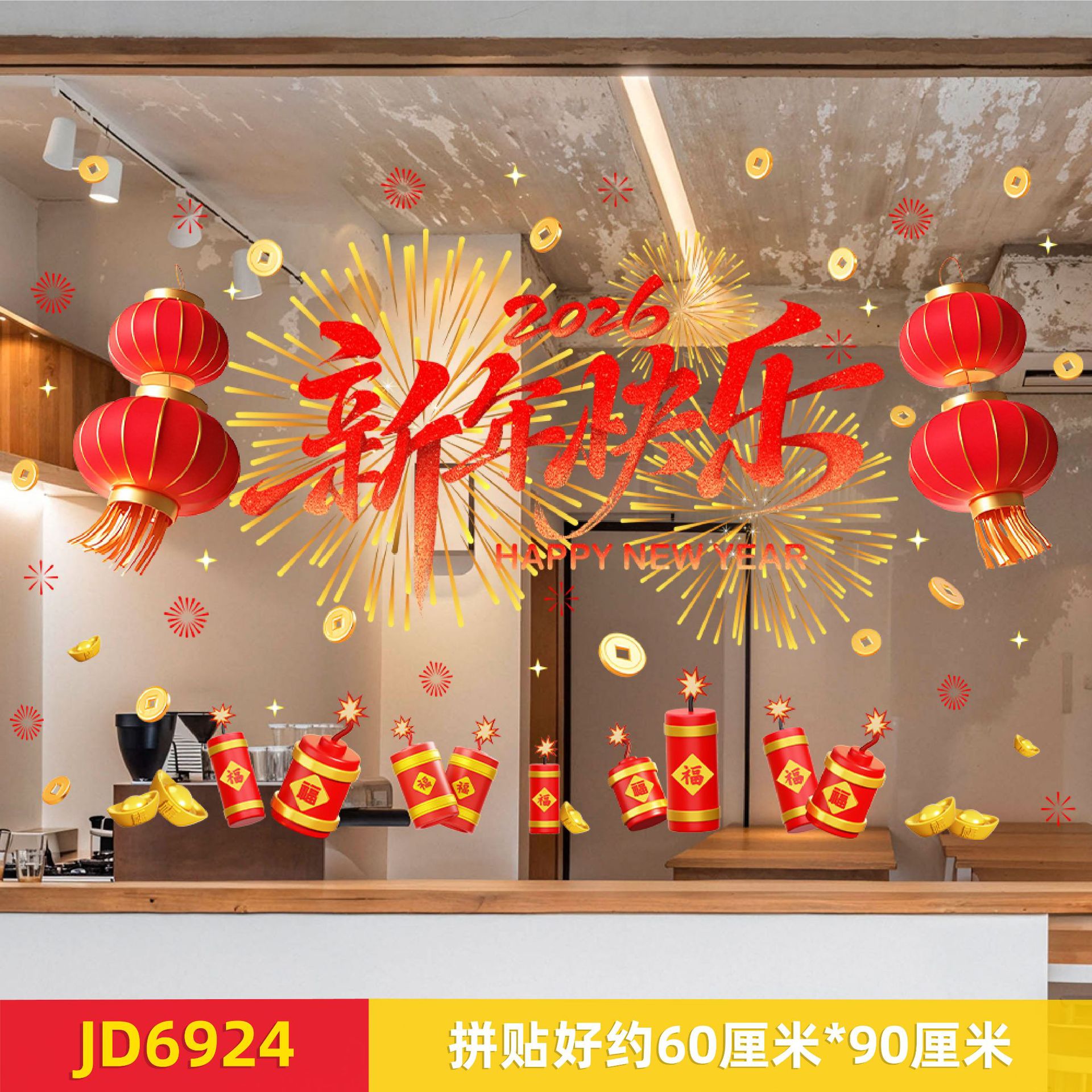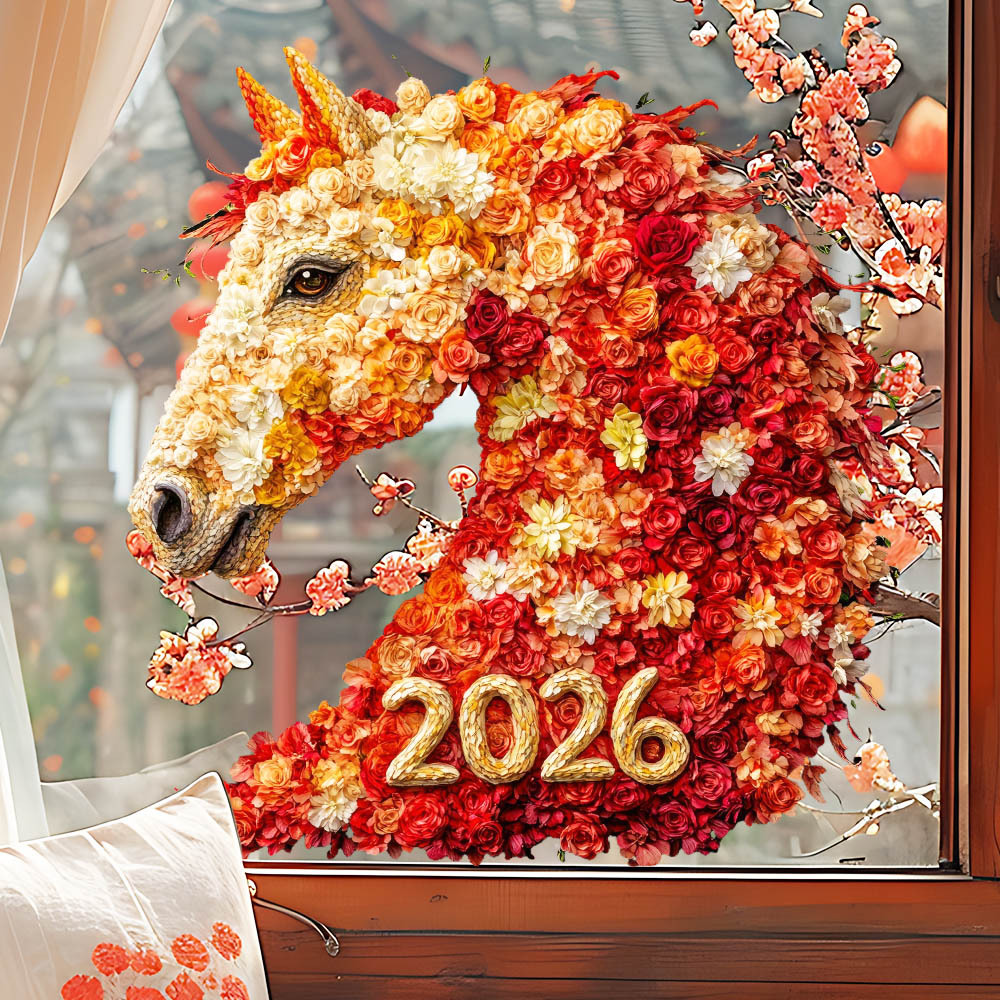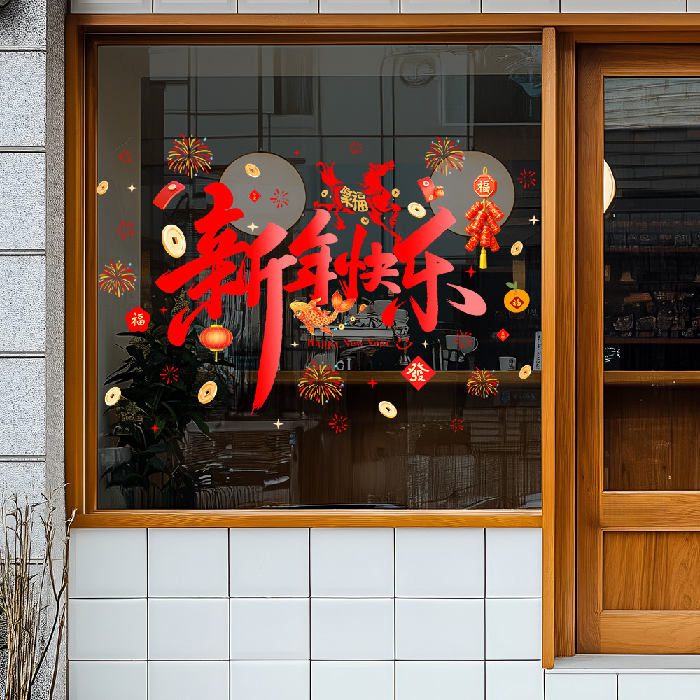 爱客2026卡通马年生肖福字门贴 商场布置春节静电贴纸新年贴纸