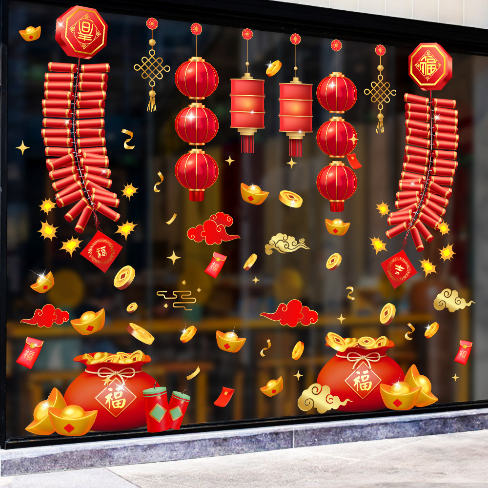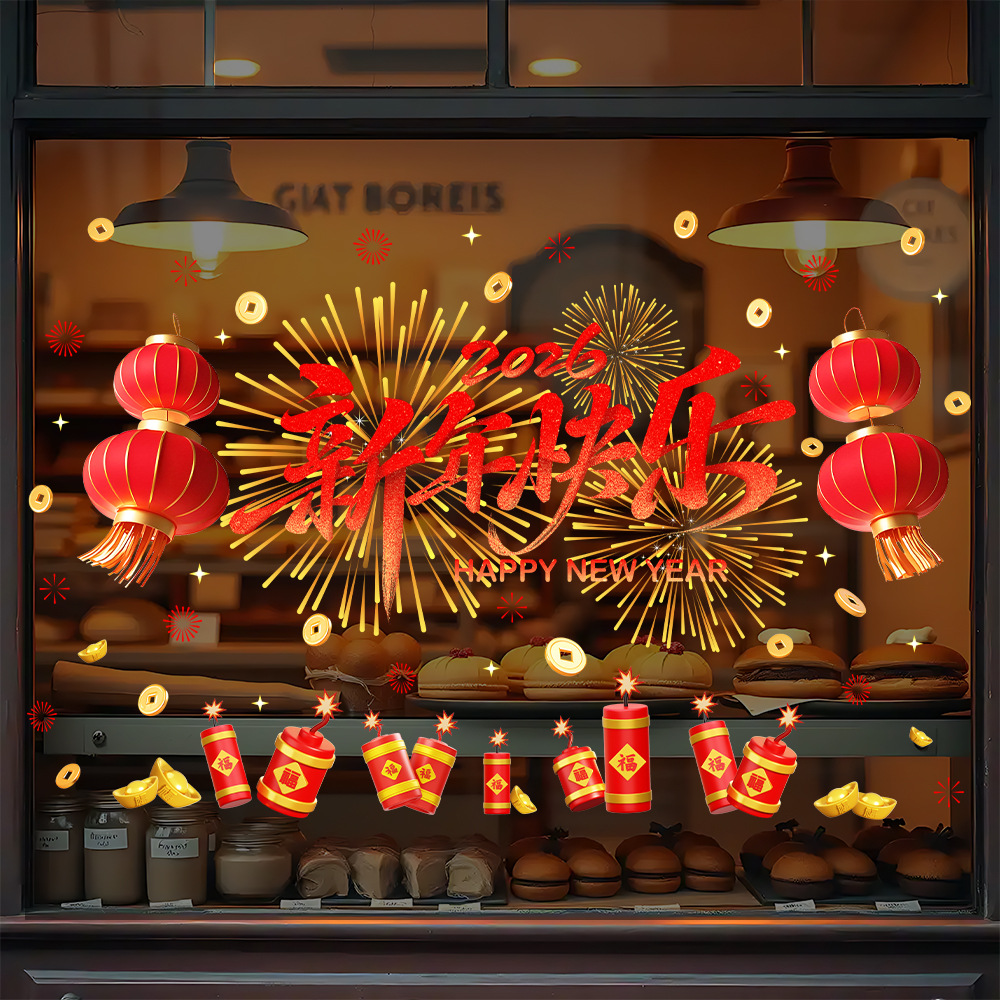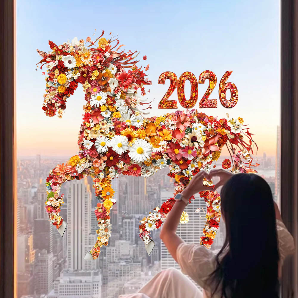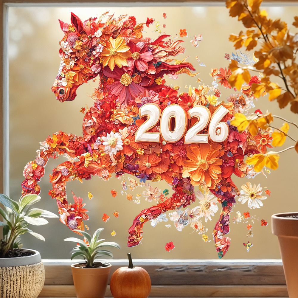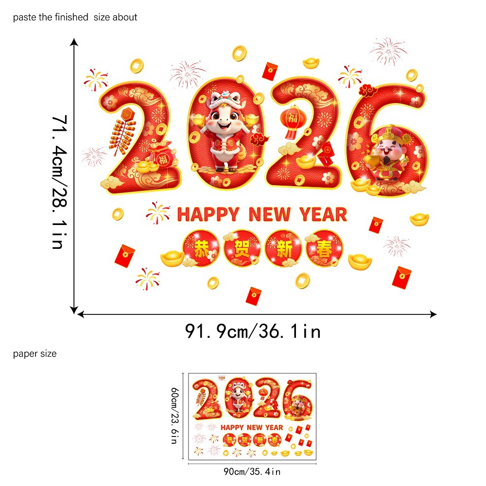 爱客2026卡通马年生肖福字门贴 商场布置春节静电贴纸新年贴纸