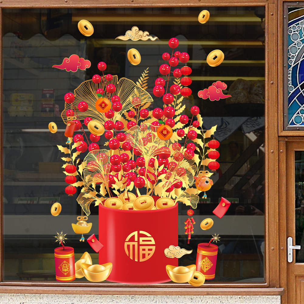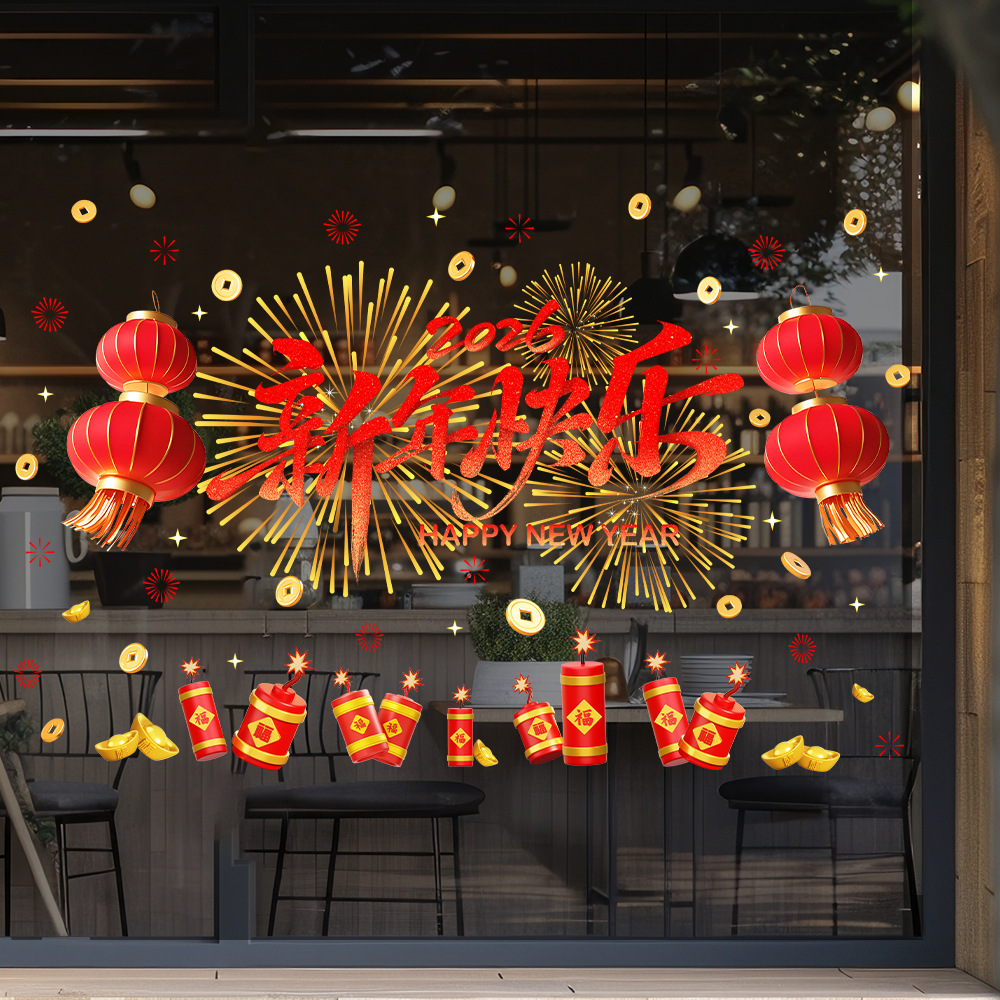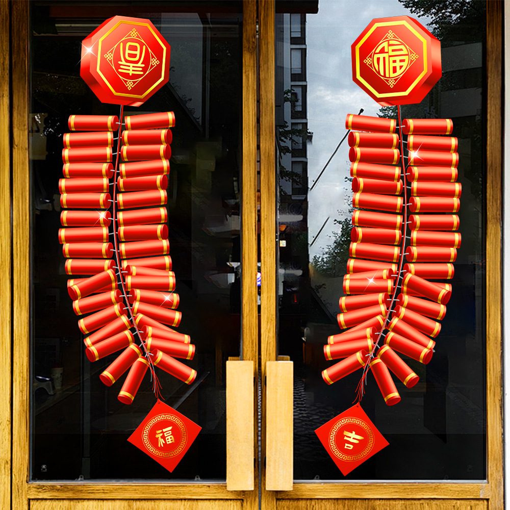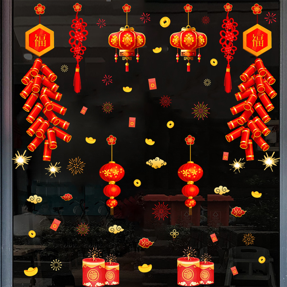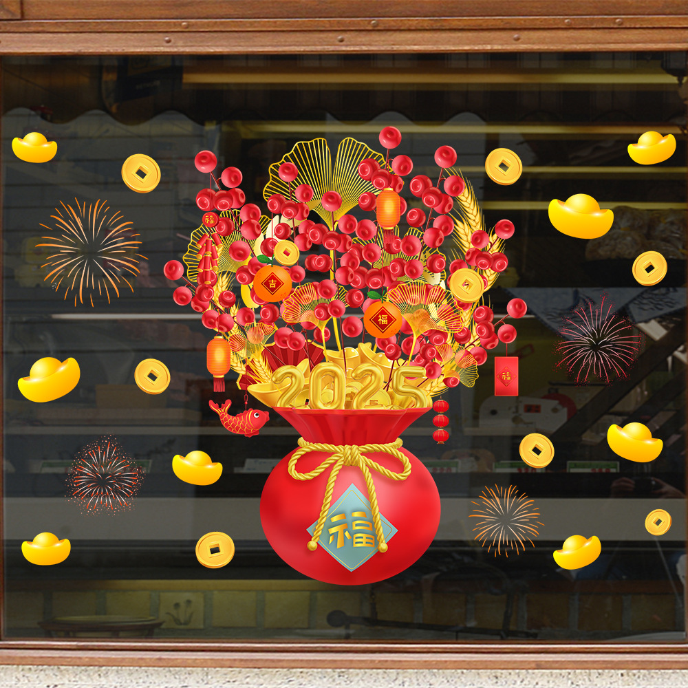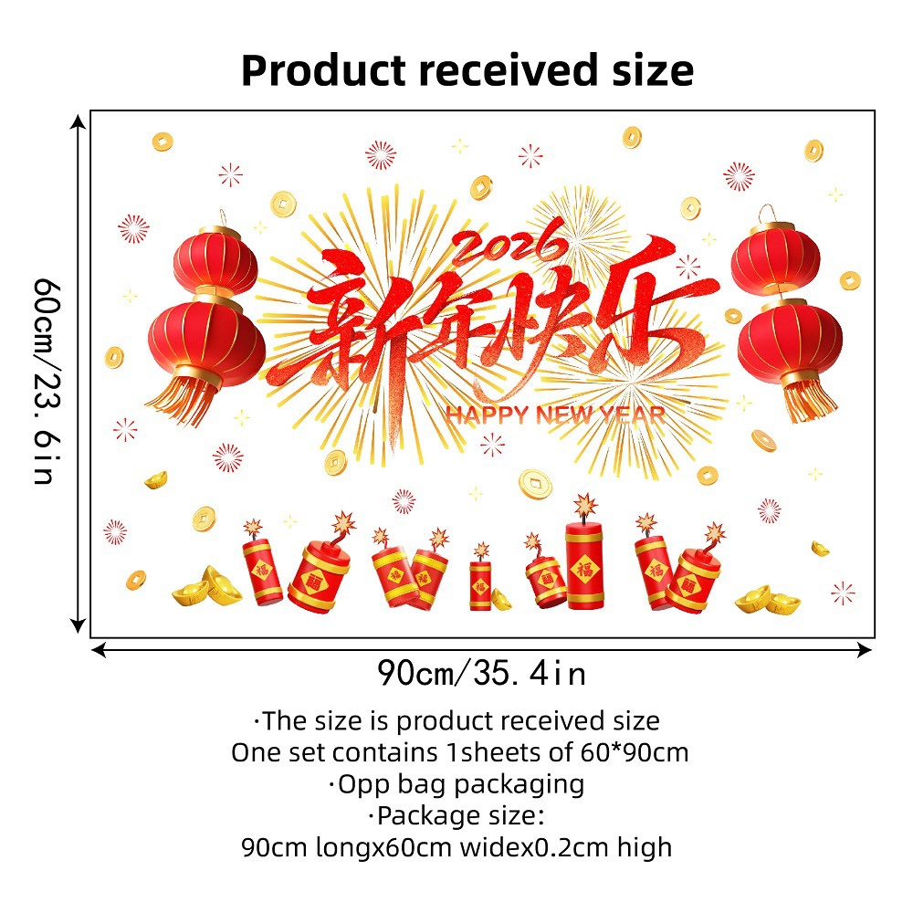 爱客2026卡通马年生肖福字门贴 商场布置春节静电贴纸新年贴纸