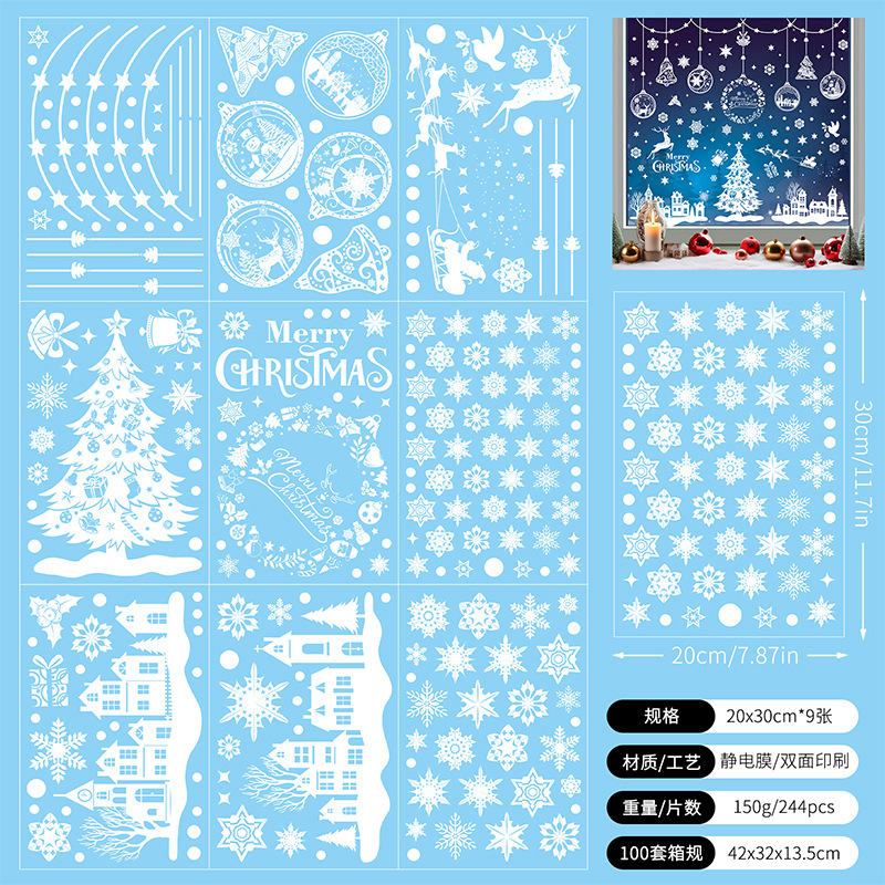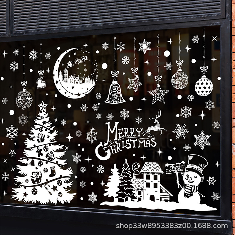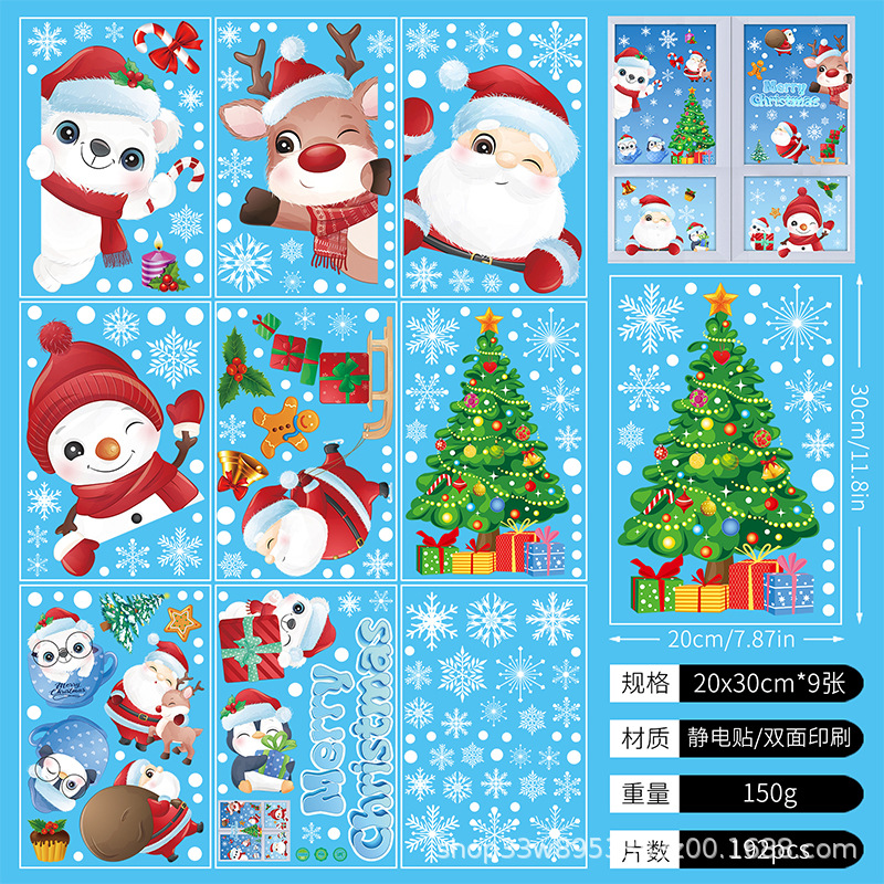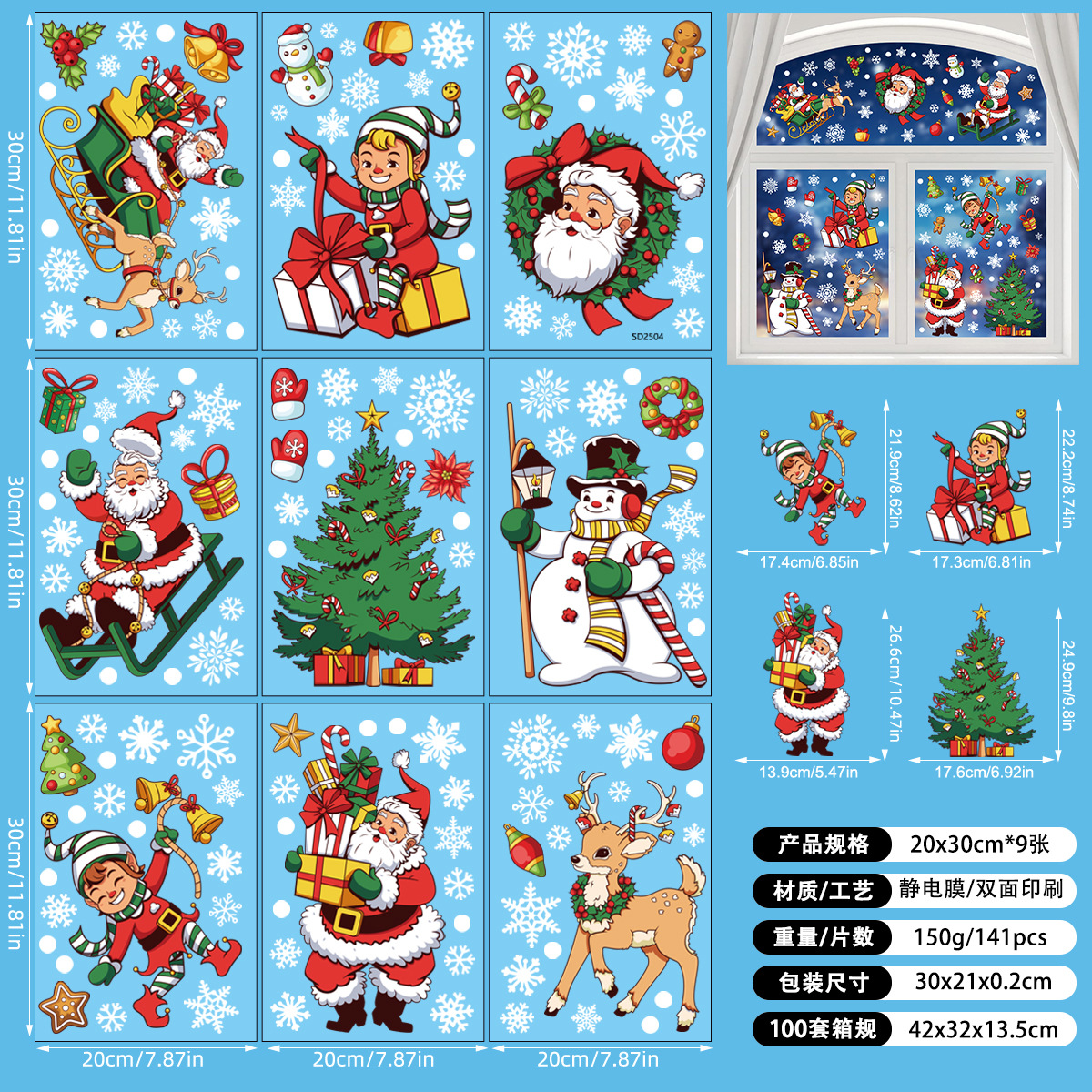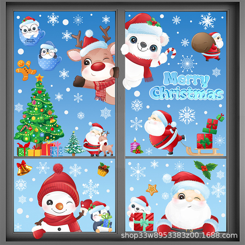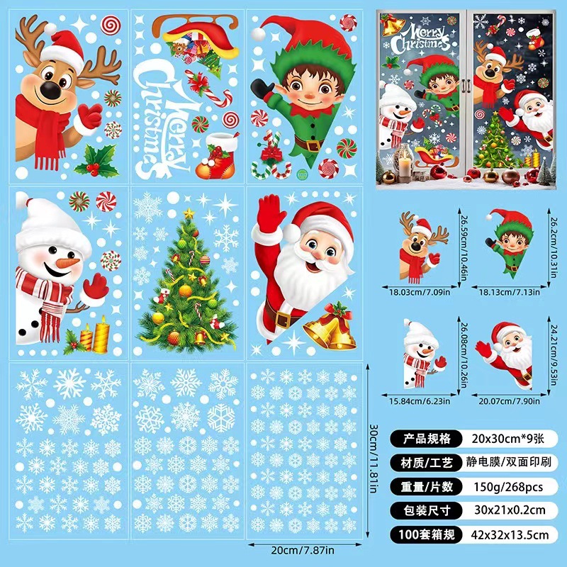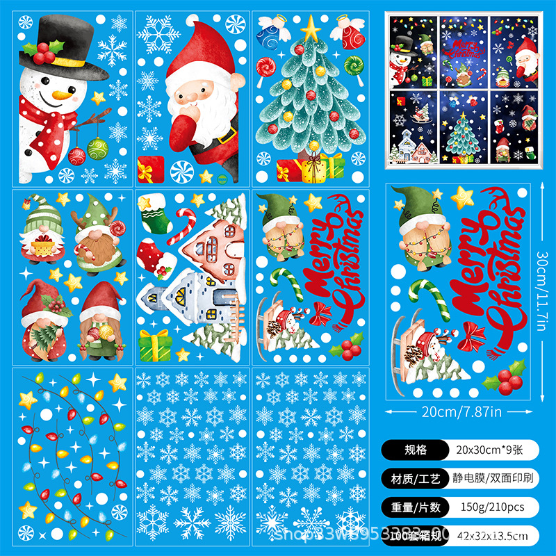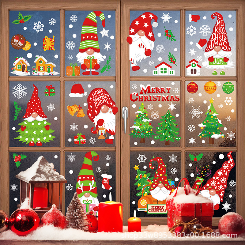跨境圣诞装饰品静电窗贴圣诞节商场橱窗装饰圣诞树侏儒人雪花贴纸