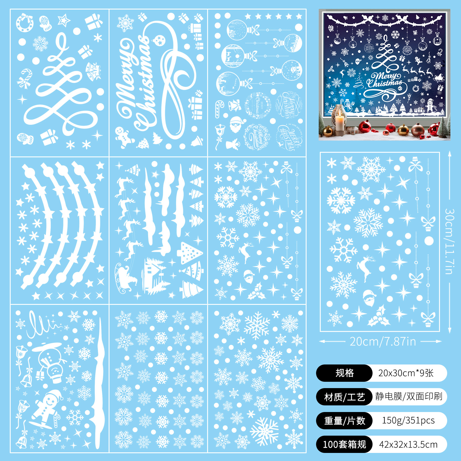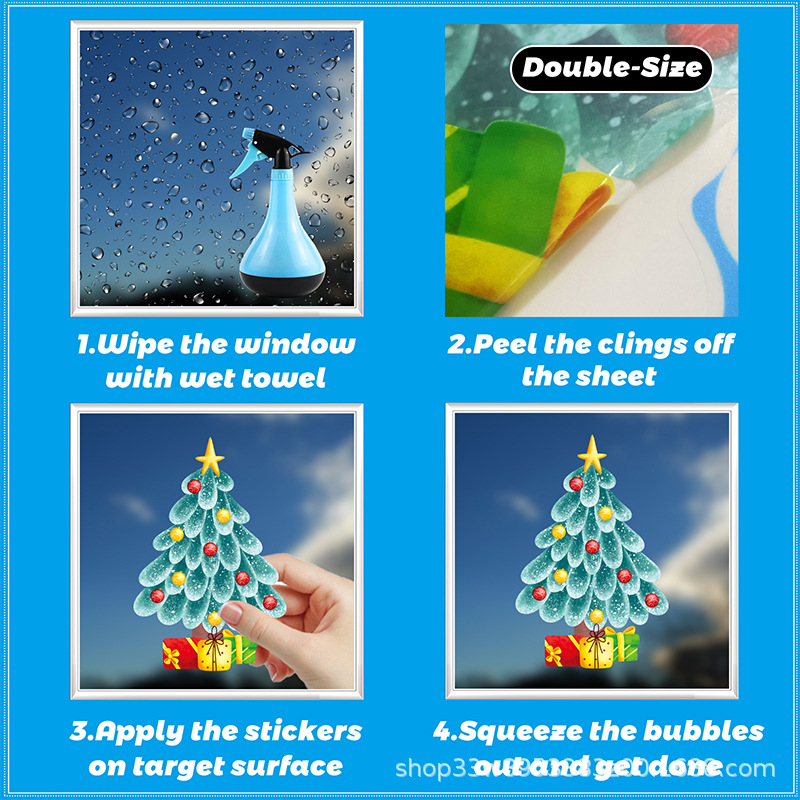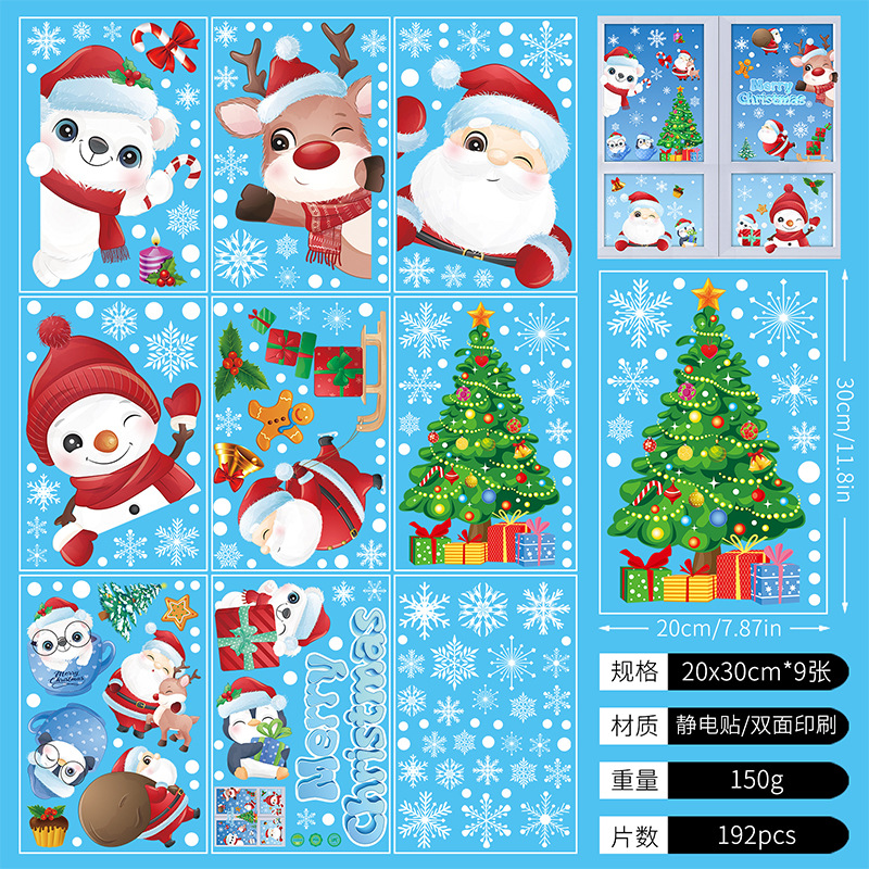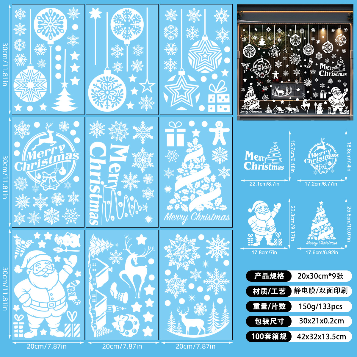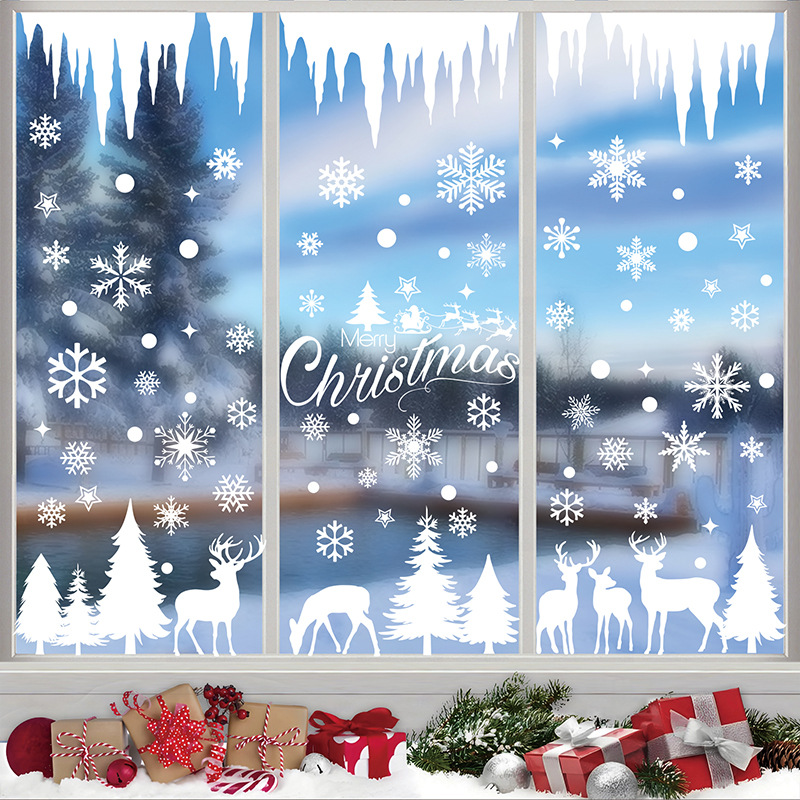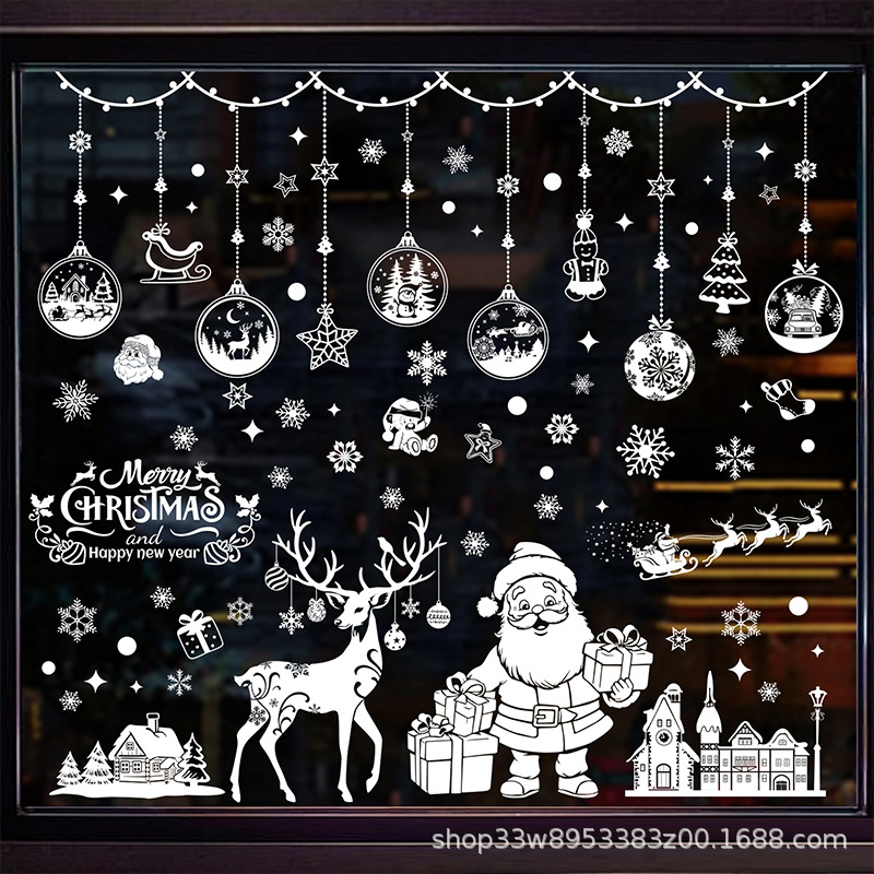跨境圣诞装饰品静电窗贴圣诞节商场橱窗装饰圣诞树侏儒人雪花贴纸