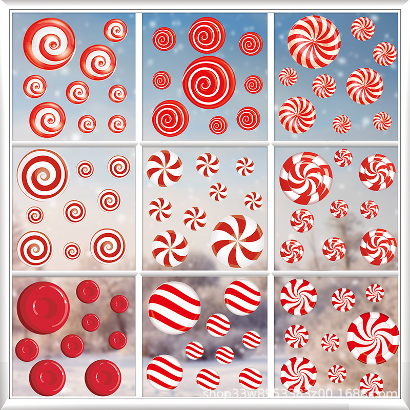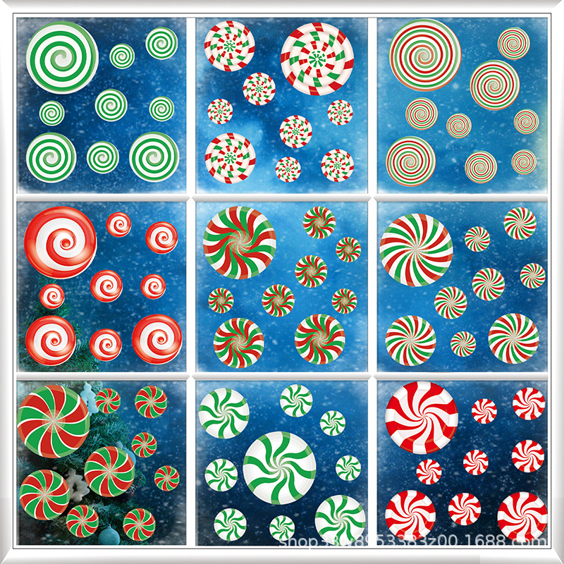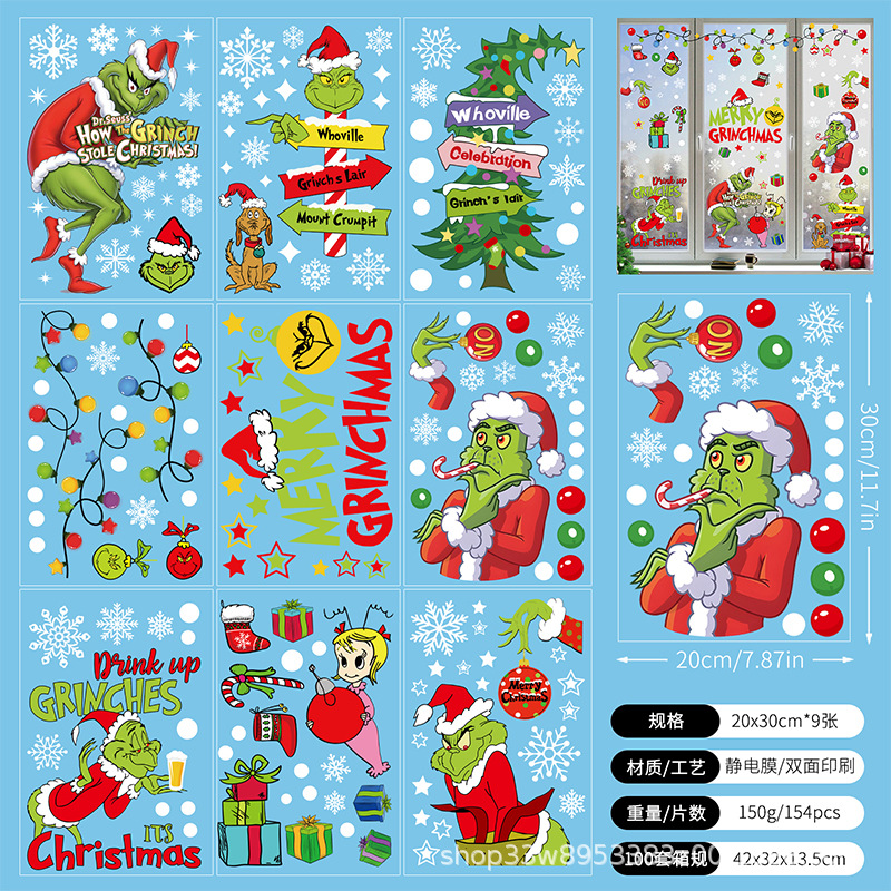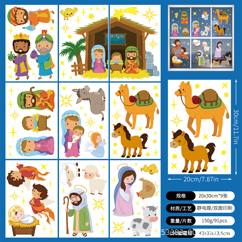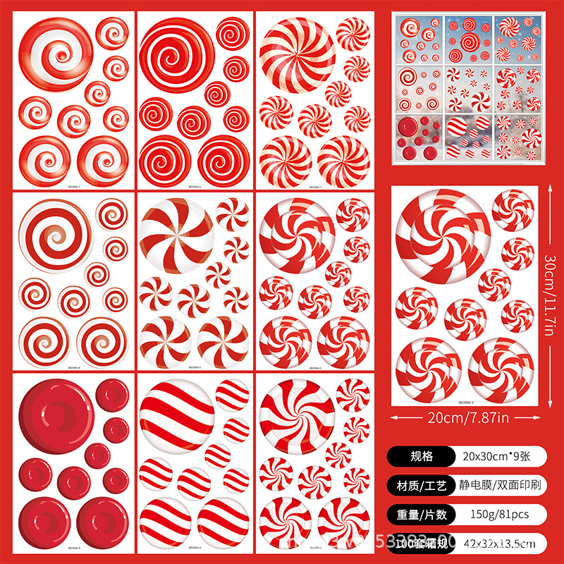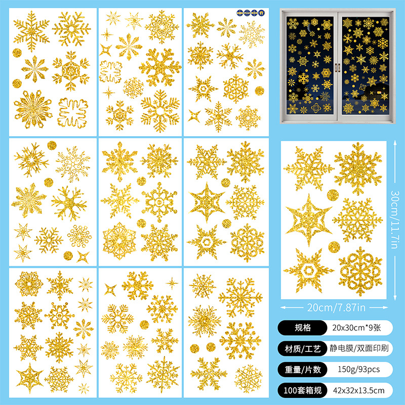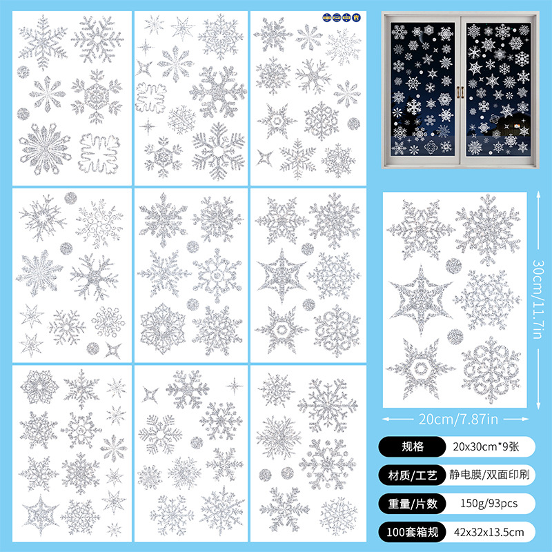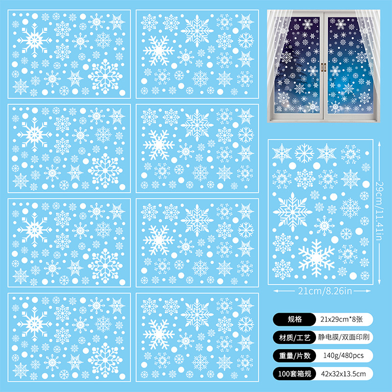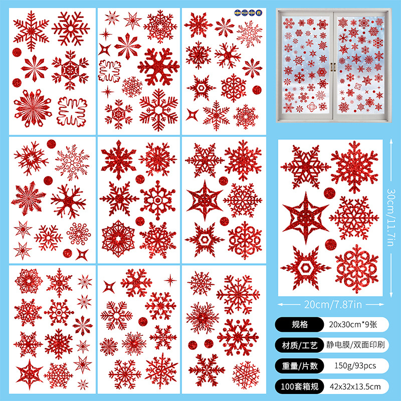 跨境圣诞装饰品静电窗贴圣诞节商场橱窗装饰圣诞树侏儒人雪花贴纸