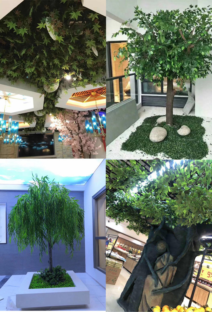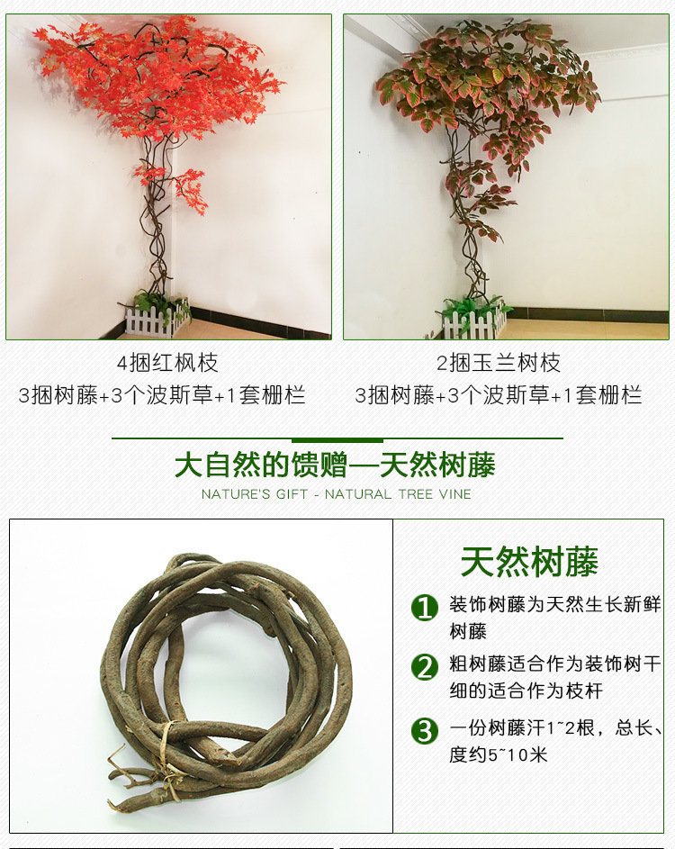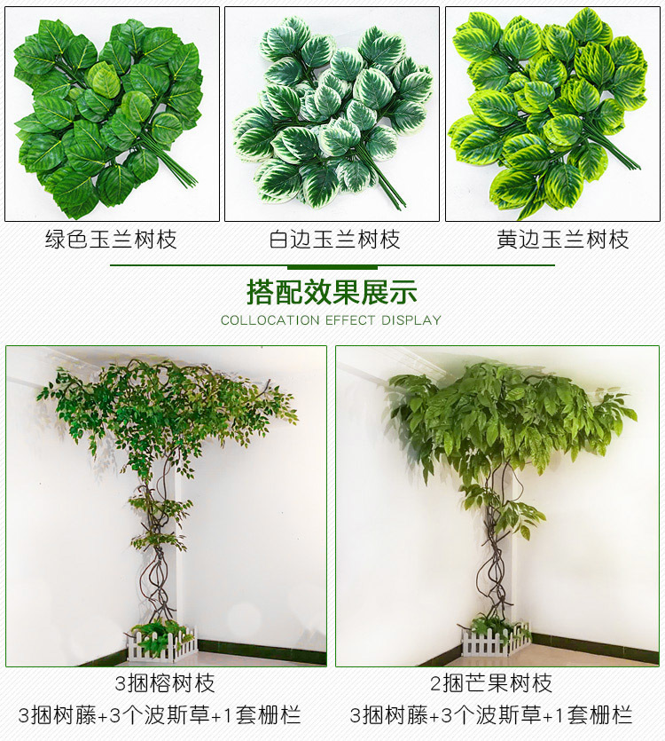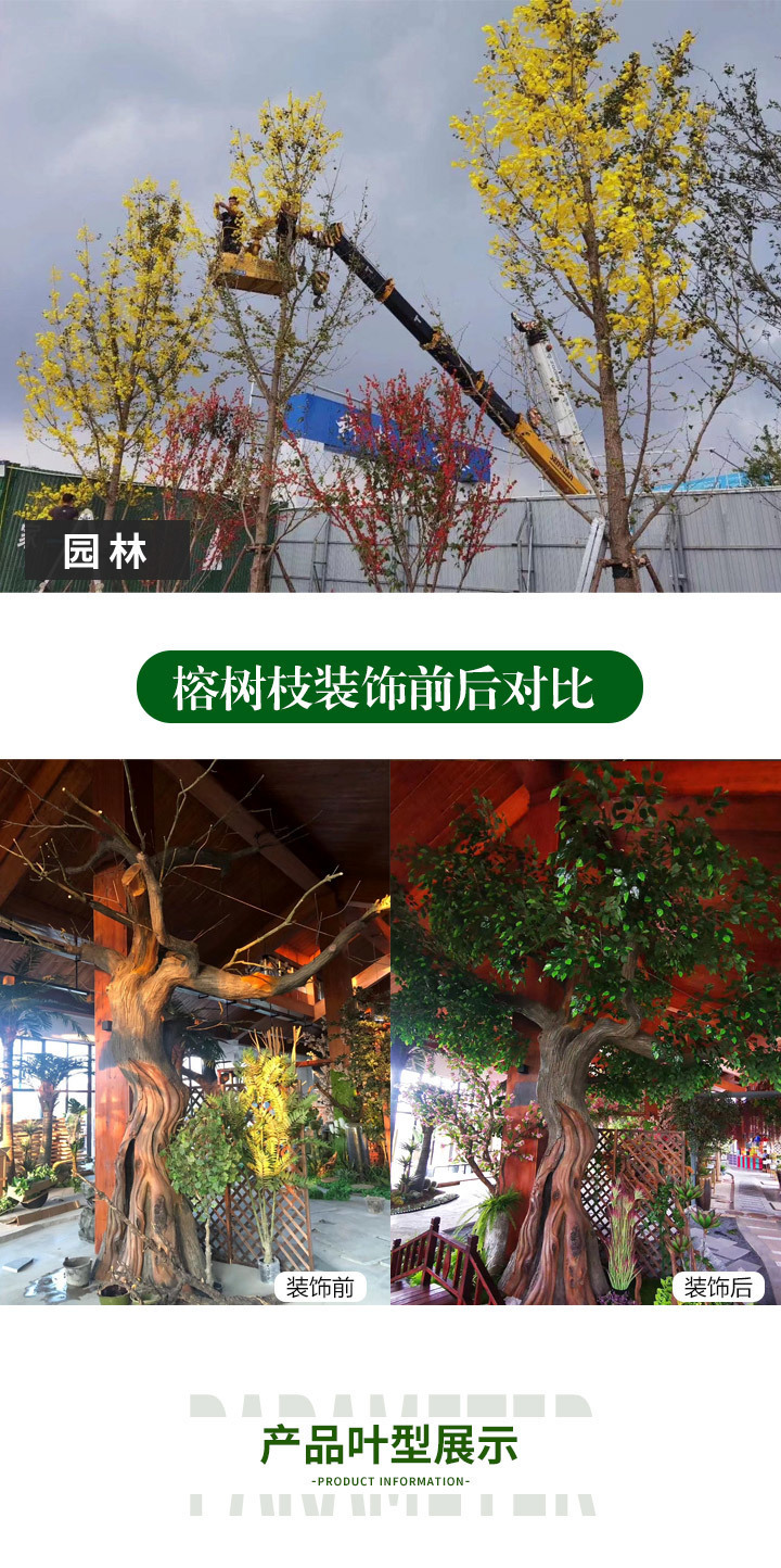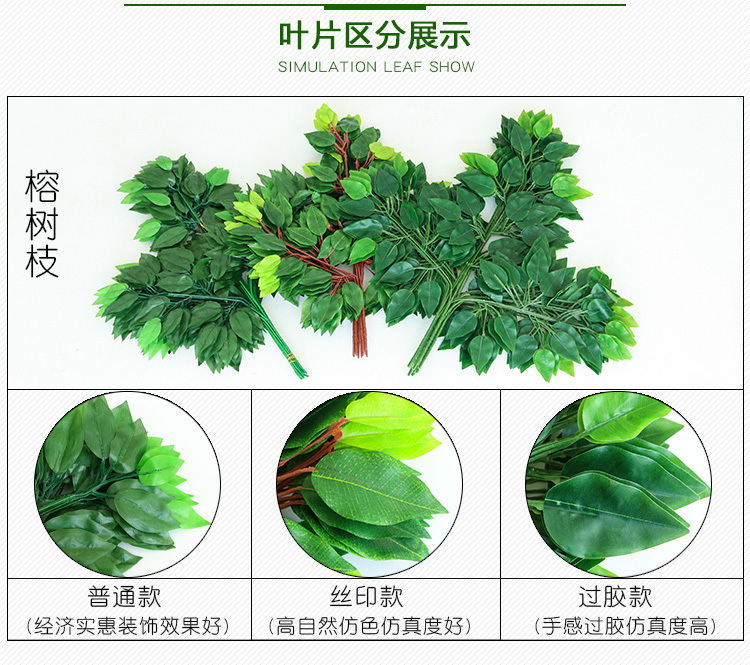 仿真榕树叶过胶塑料榕树枝绿色植物银杏红枫叶子假树枝装饰造景厂