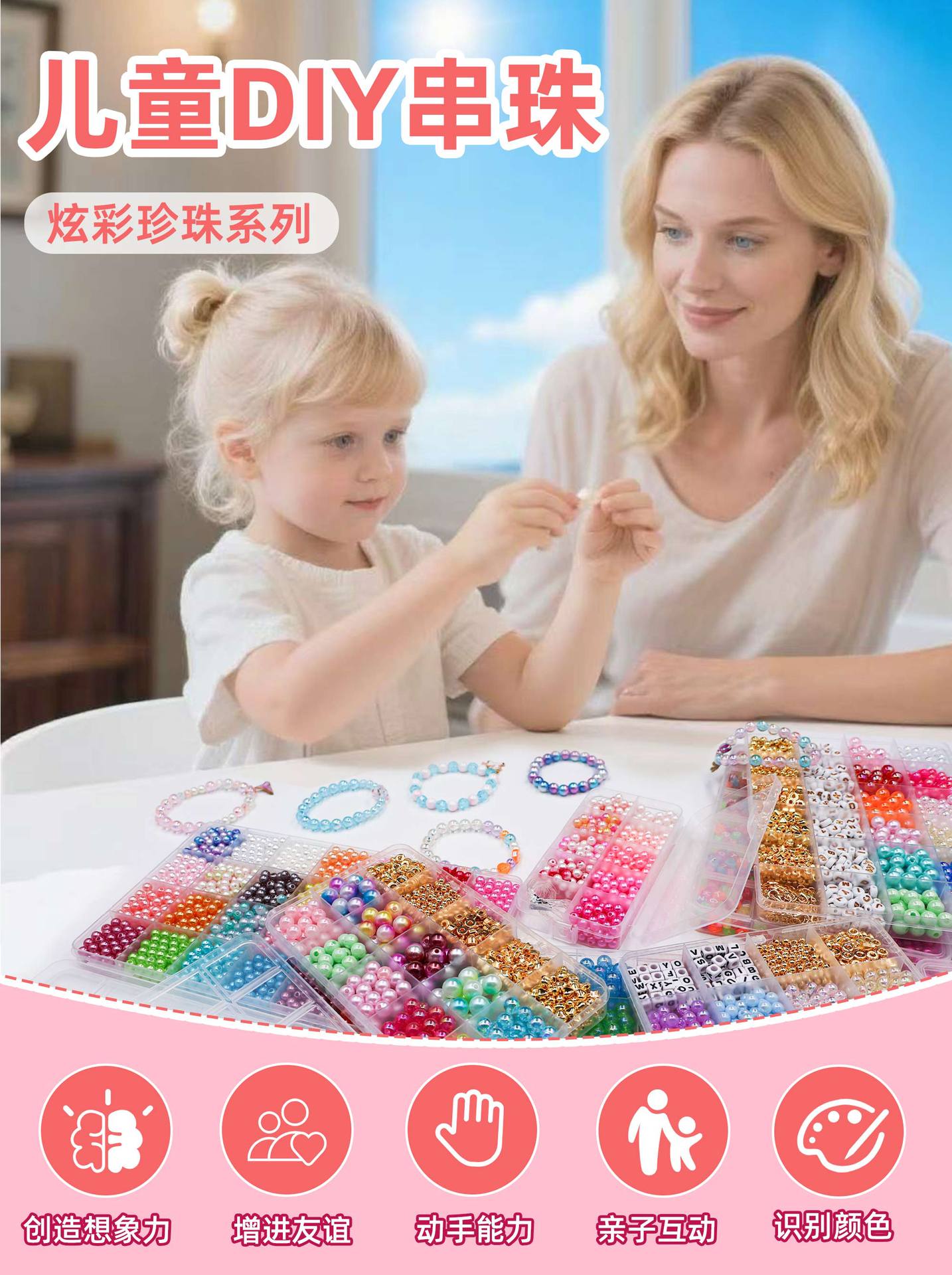 跨境串珠手链穿珠配饰彩色仿珍珠diy材料包套装手串饰品配件珠子
