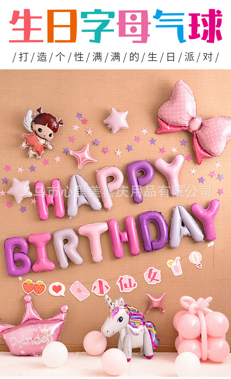16寸铝膜气球字母生日快乐气球主题派对布置装饰happybirthday