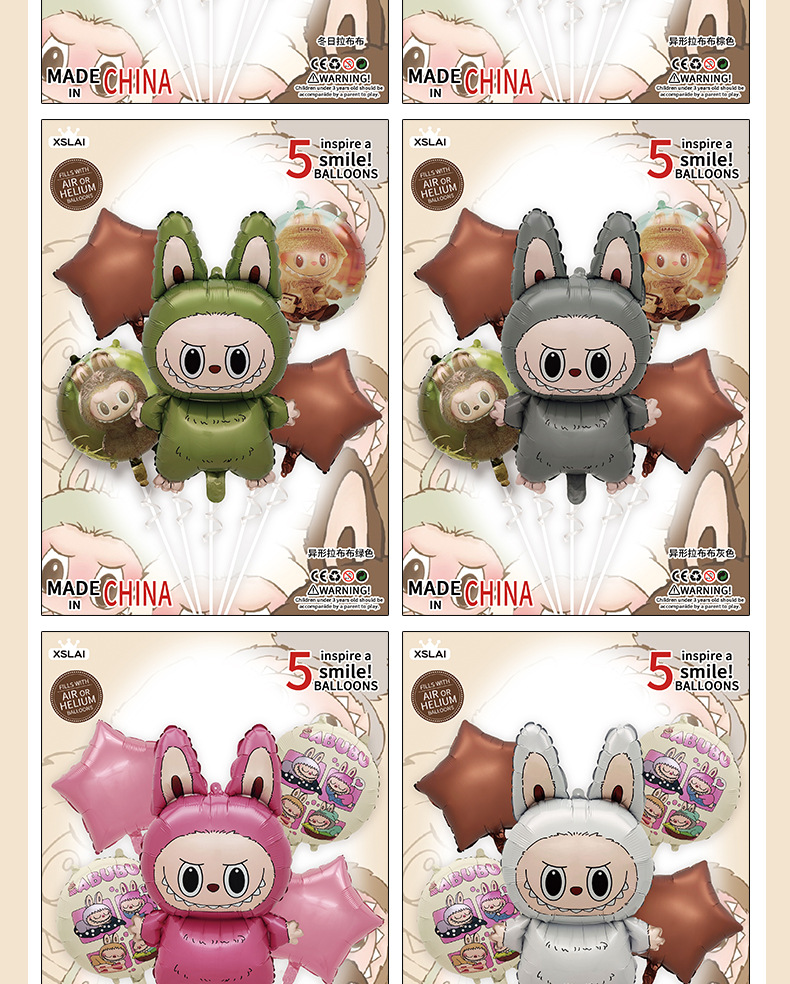 生日布置装饰品跨境拉布布铝膜气球气球套装夜市摆摊气球氦气飘空