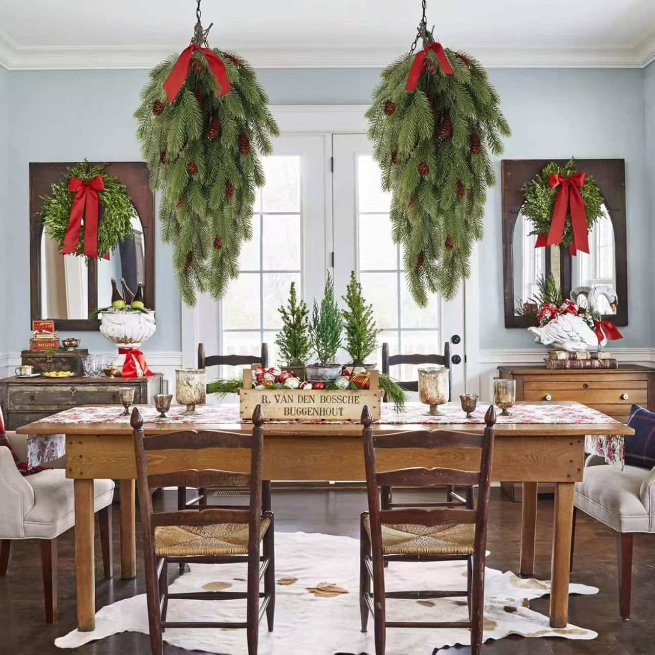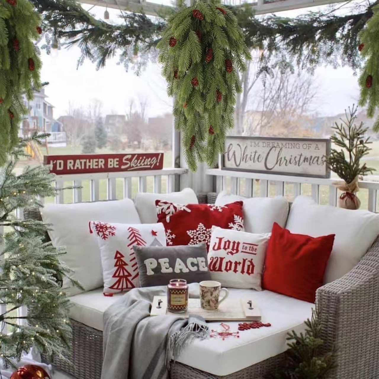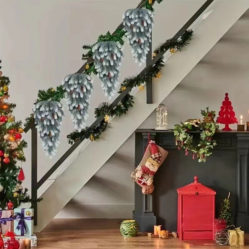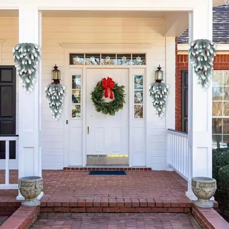 跨境节日氛围圣诞装饰挂件仿真壁挂松针带果诺福克藤条圣诞节装饰