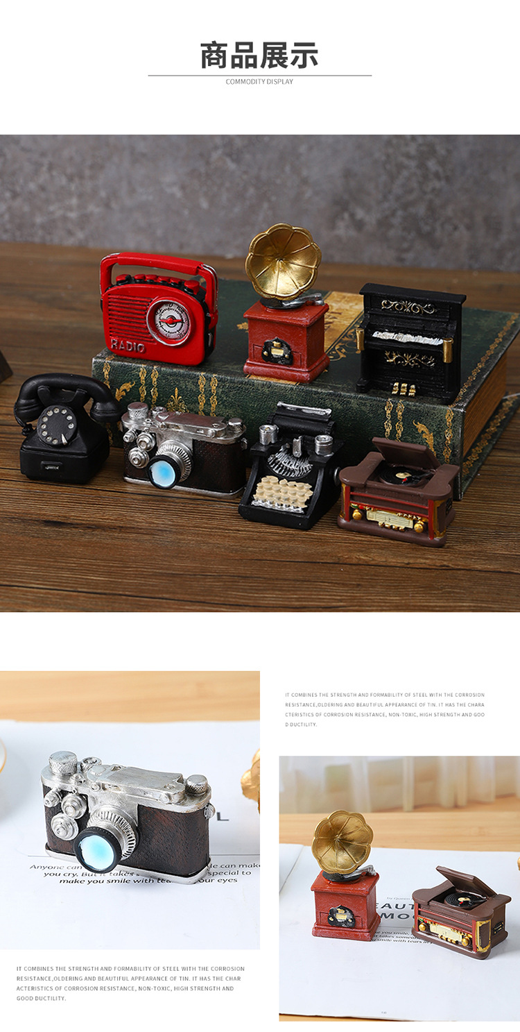 相机钢琴打字机复古做旧创意树脂迷你小摆件家居装饰网店拍摄道具