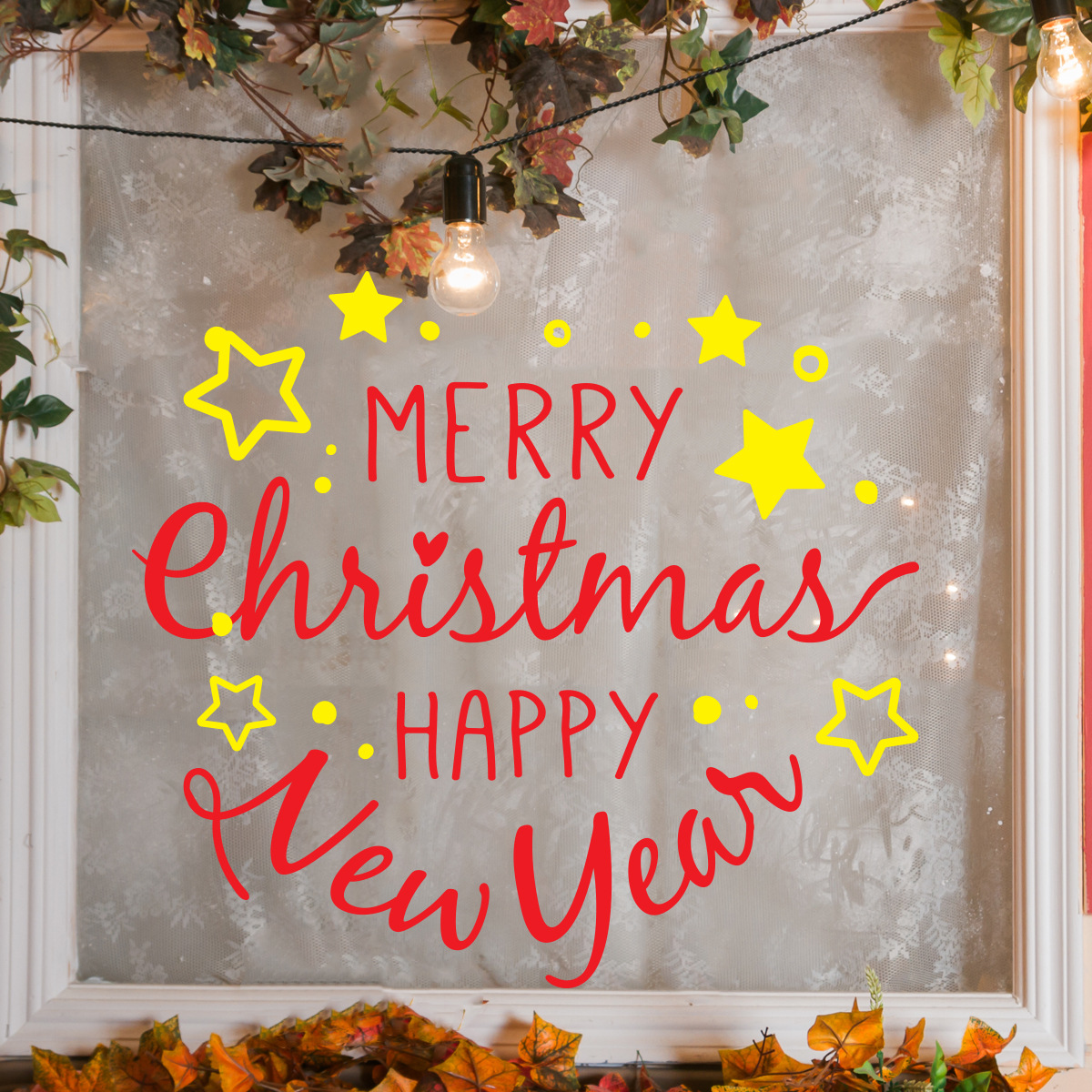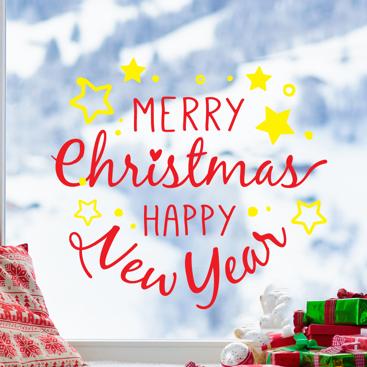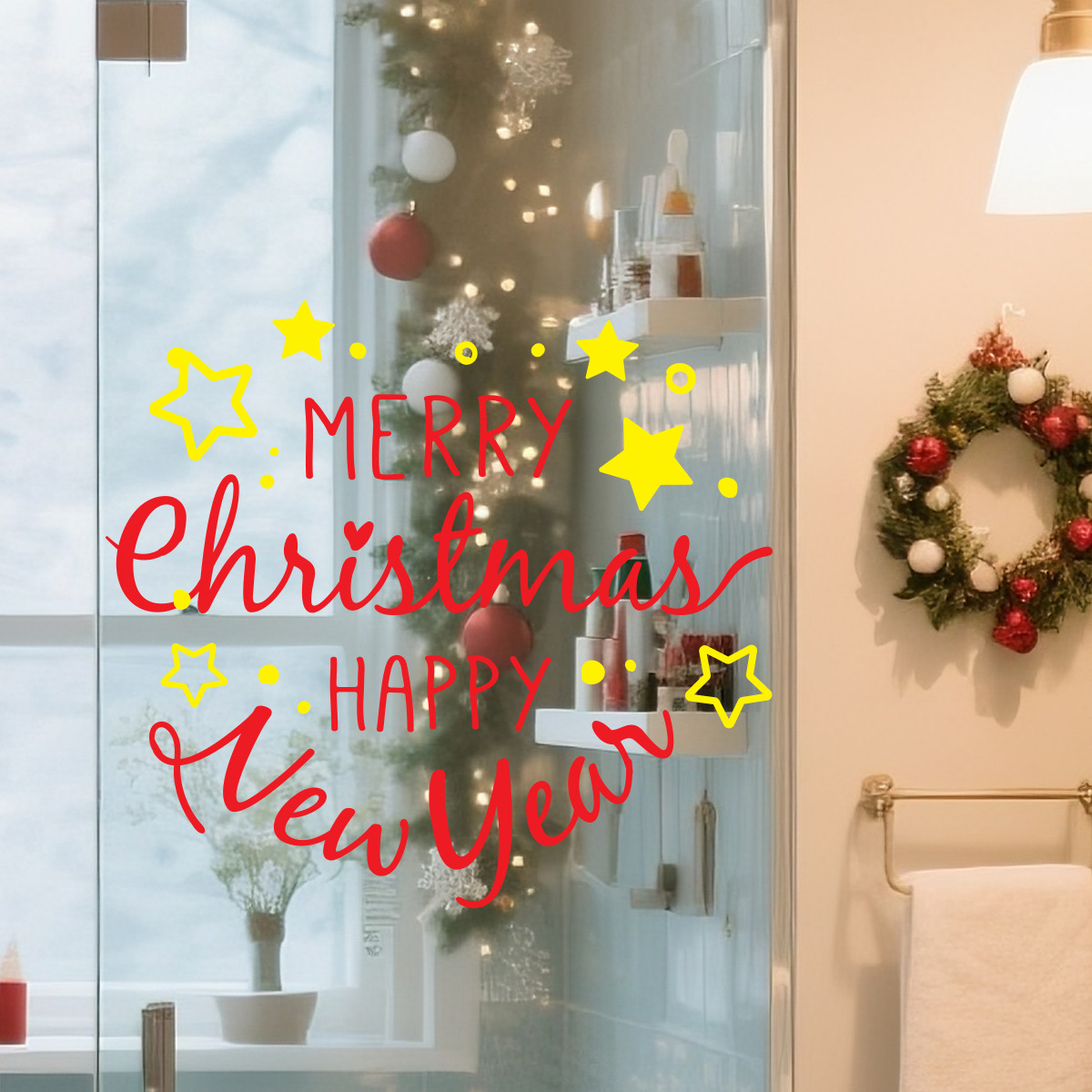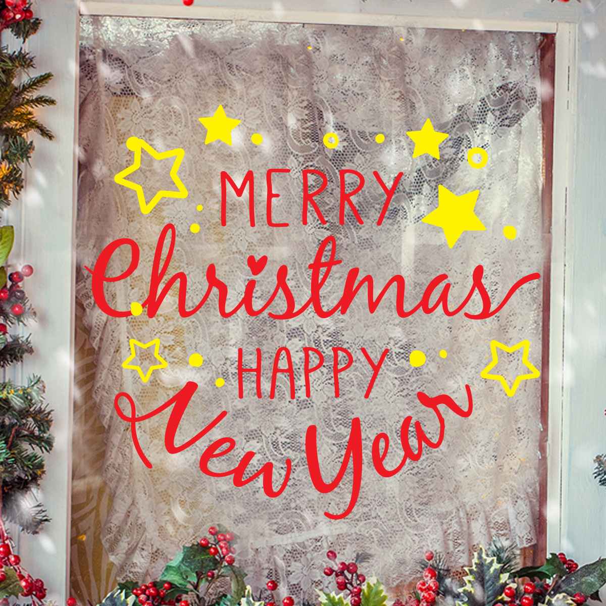 C18516圣诞节英文星星玻璃贴窗贴家居节日装饰双面可视自粘墙贴