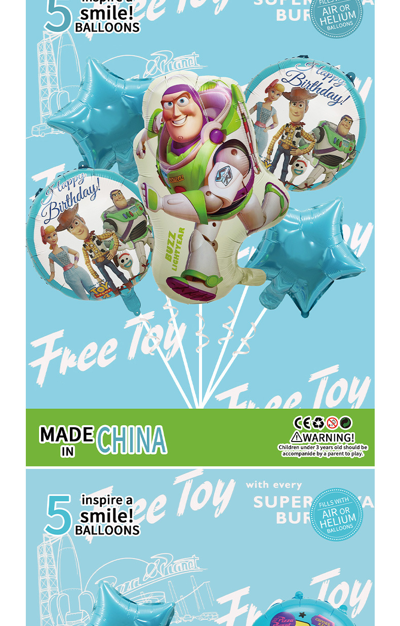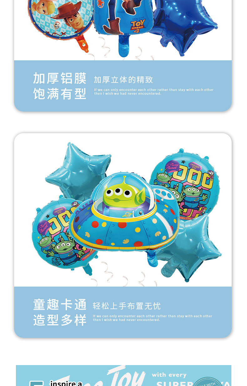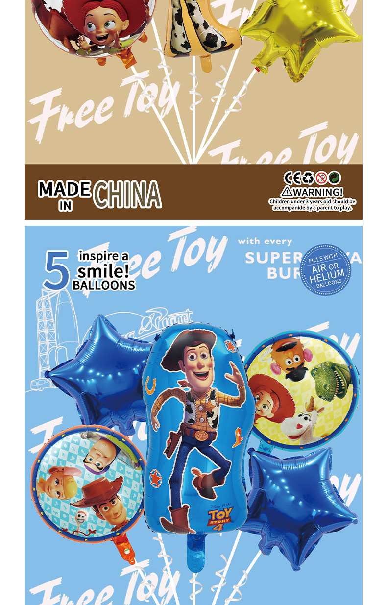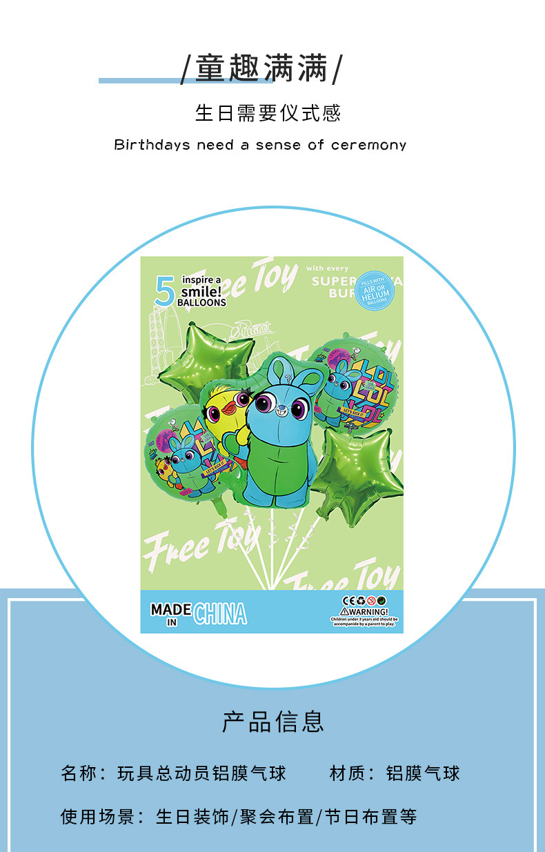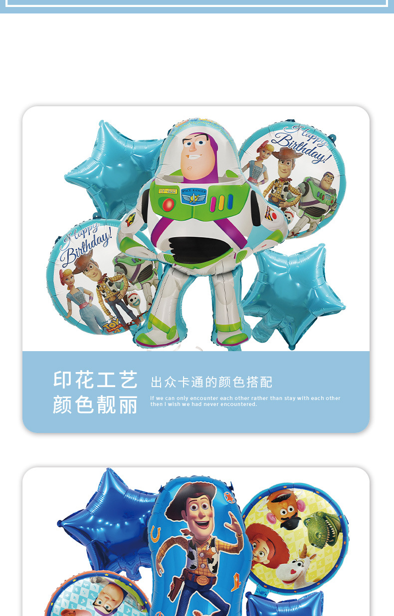 玩具总动员五件套铝膜气球巴斯光年达鸭和兔草莓熊造型气球套餐