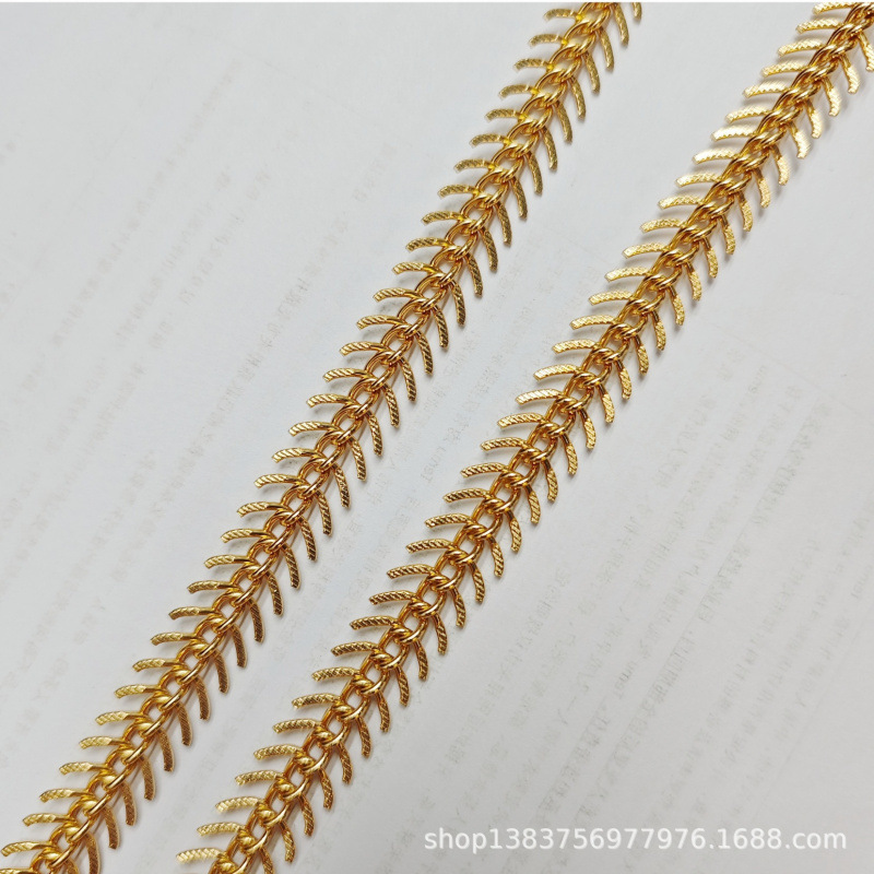 KC金色鱼骨铁链鱼翅链时尚潮流项链鞋帽装饰铜链等五金配件辅料