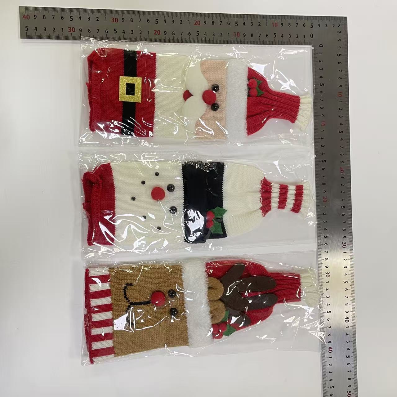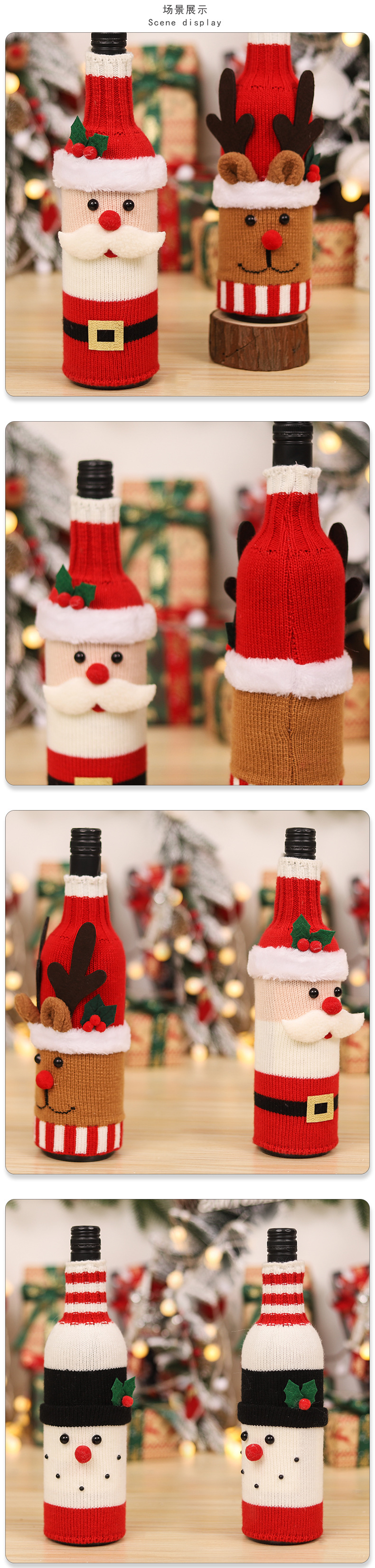 铭冠新品圣诞节装饰品针织羊毛腰带老人红酒瓶套餐桌装扮厨房装饰