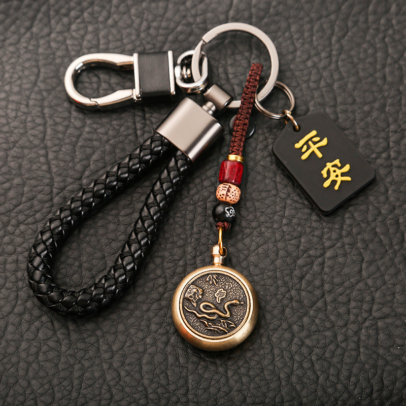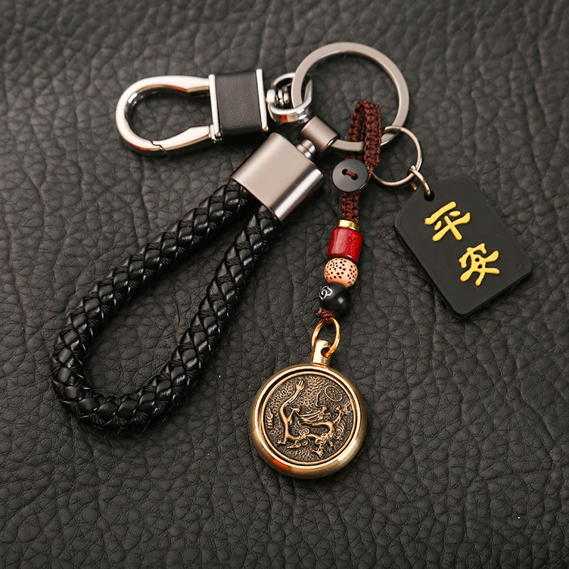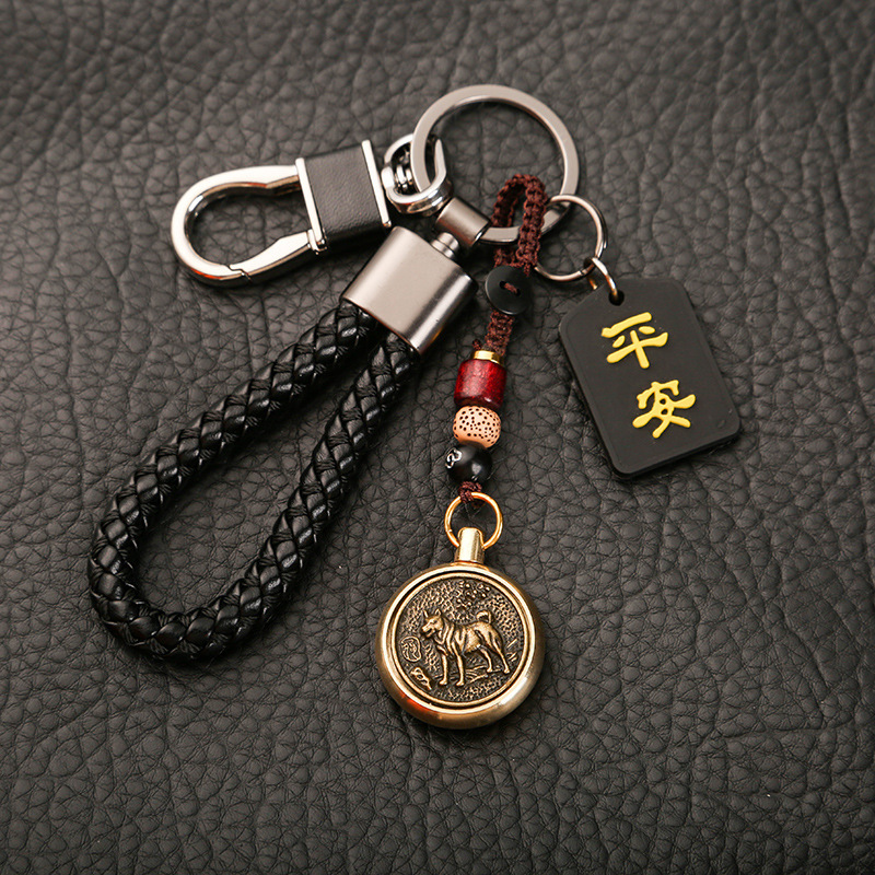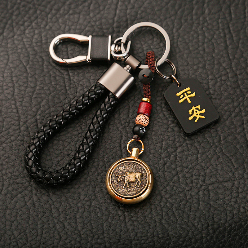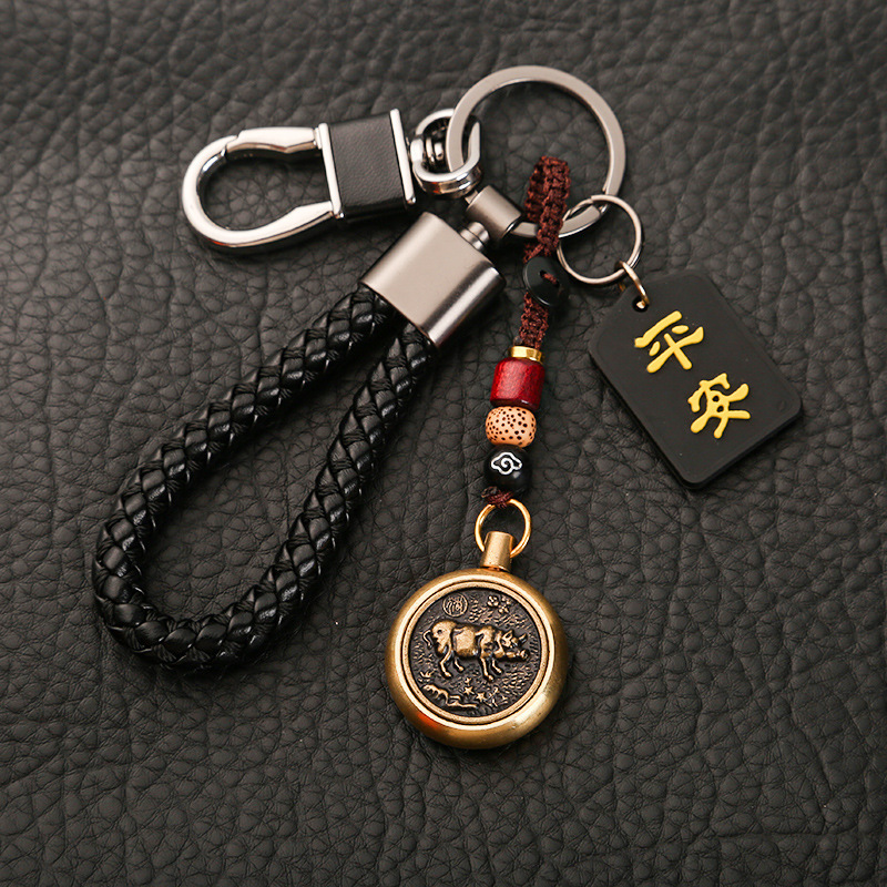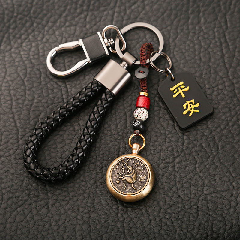 个性汽车钥匙扣黄铜十二生肖钥匙链手工挂件复古创意男转钱手把件