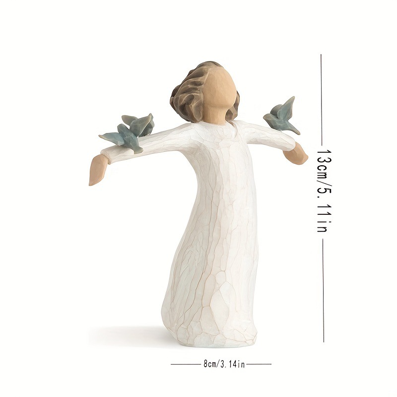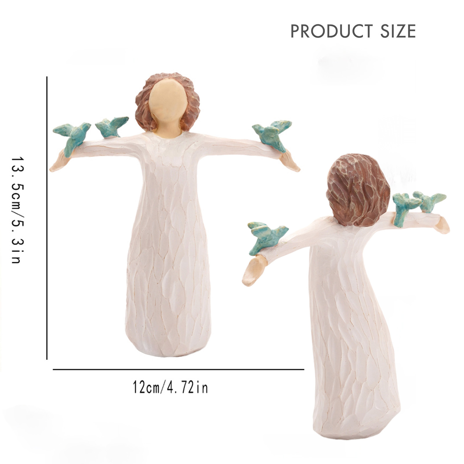 跨境平台姐妹拥抱天使女孩花鸟手绘雕像摆件礼物TemuTk海外仓代发