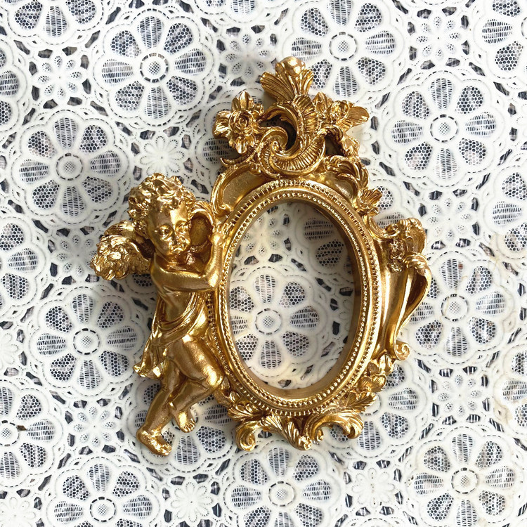 欧式维多利亚风格复古树脂迷你天使椭圆小相框饰品定位框耳钉项链