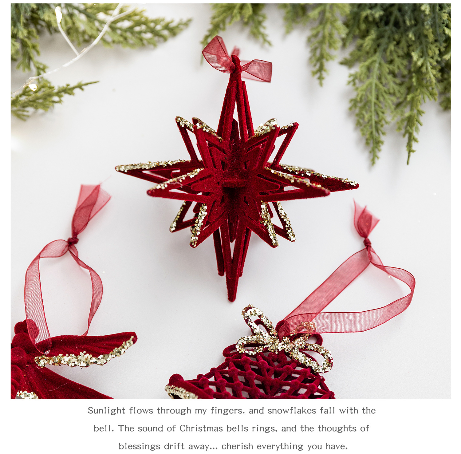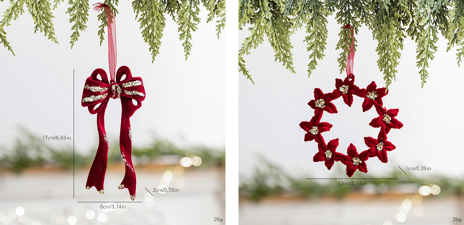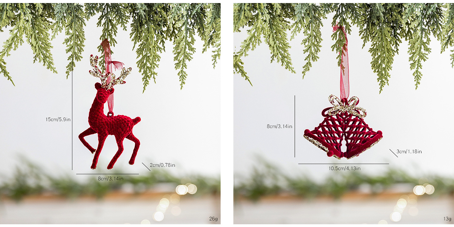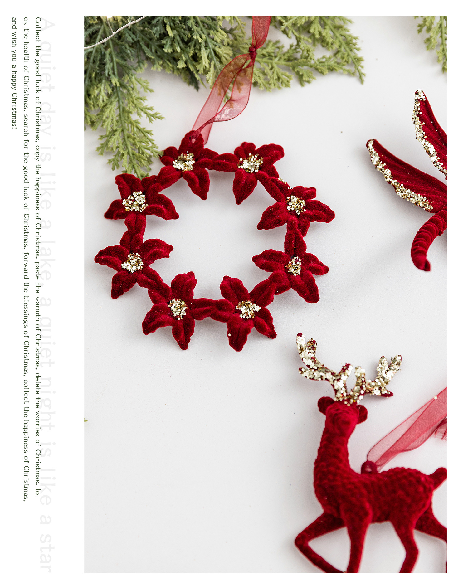 跨境新款圣诞酒红色植绒麋鹿蝴蝶结挂件diy蜻蜓花环圣诞树上挂饰