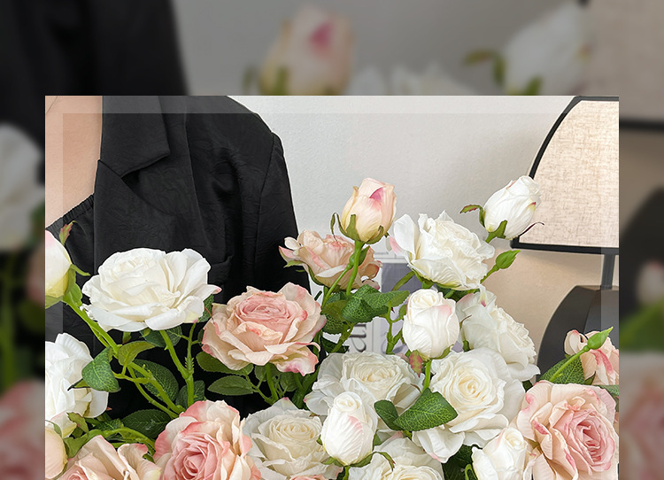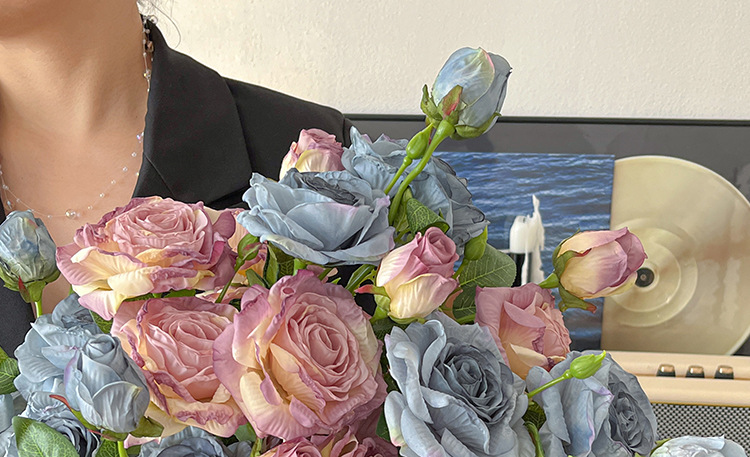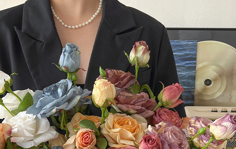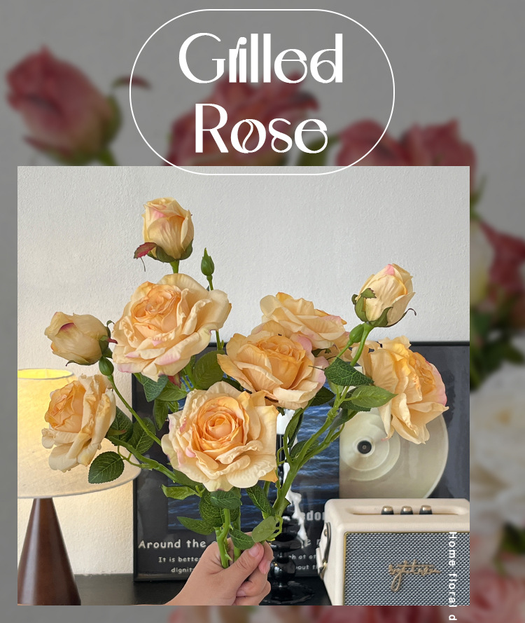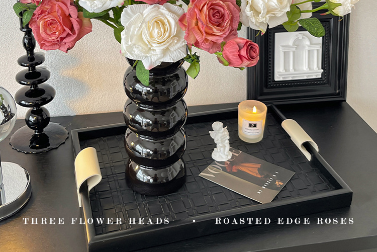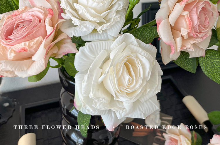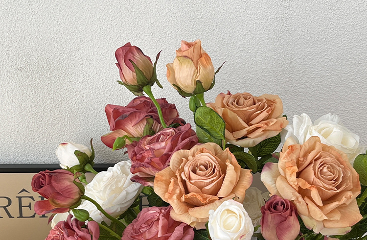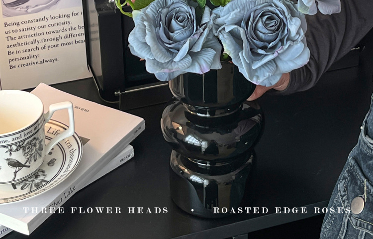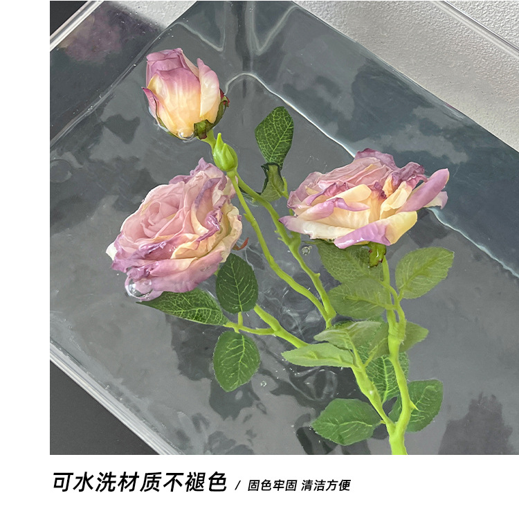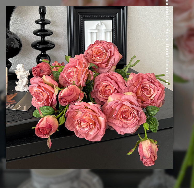 2花1苞烤边干枯玫瑰花仿真花束客厅摆件复古秋色假花装饰花仿真花