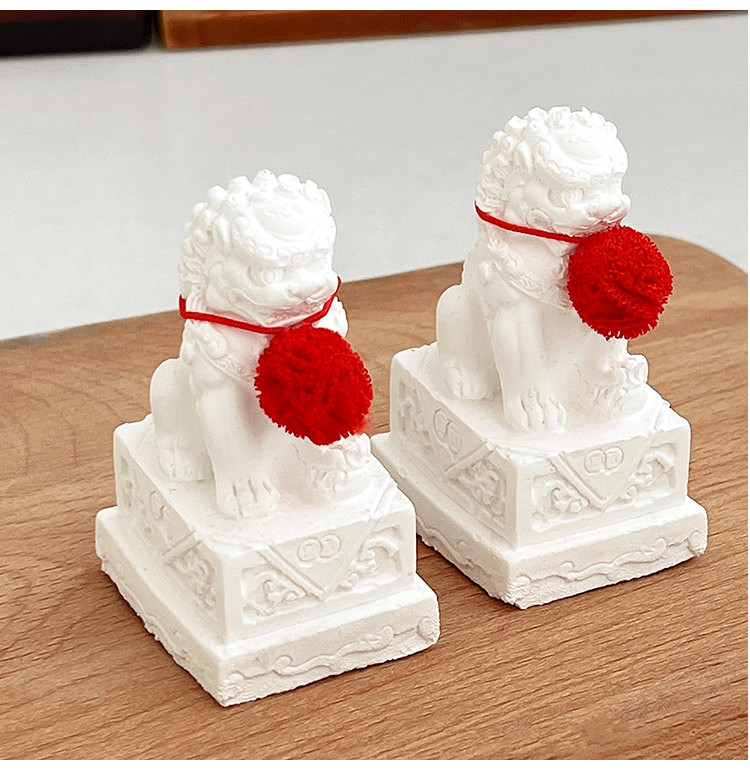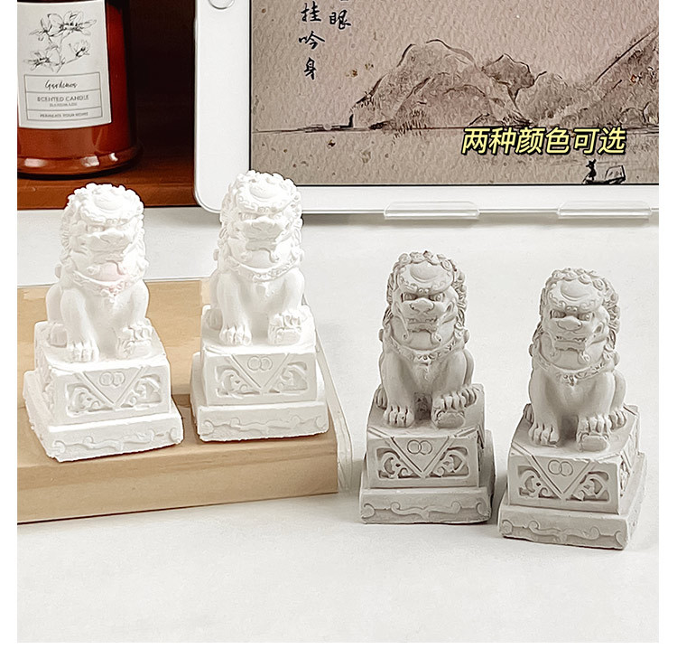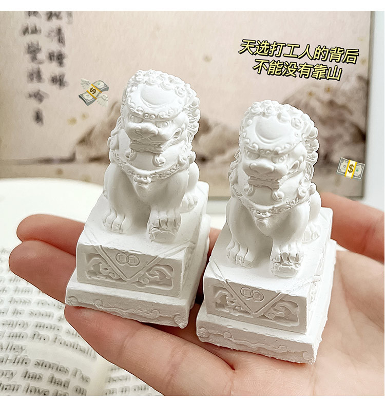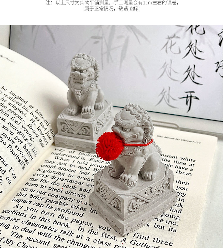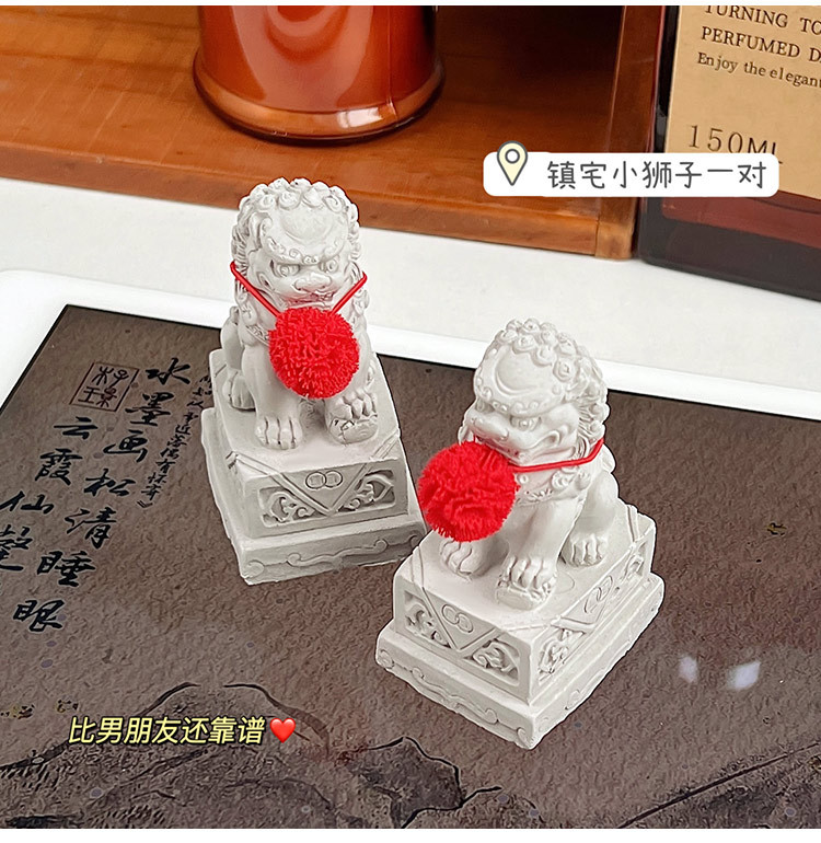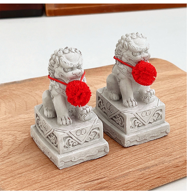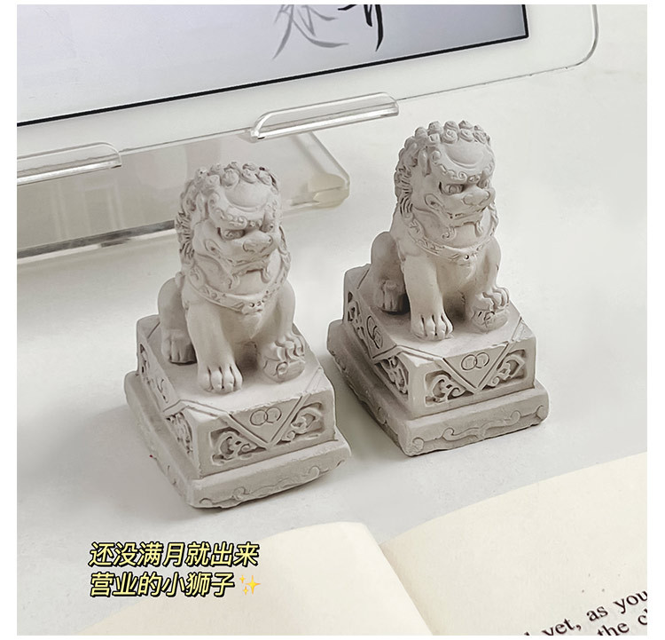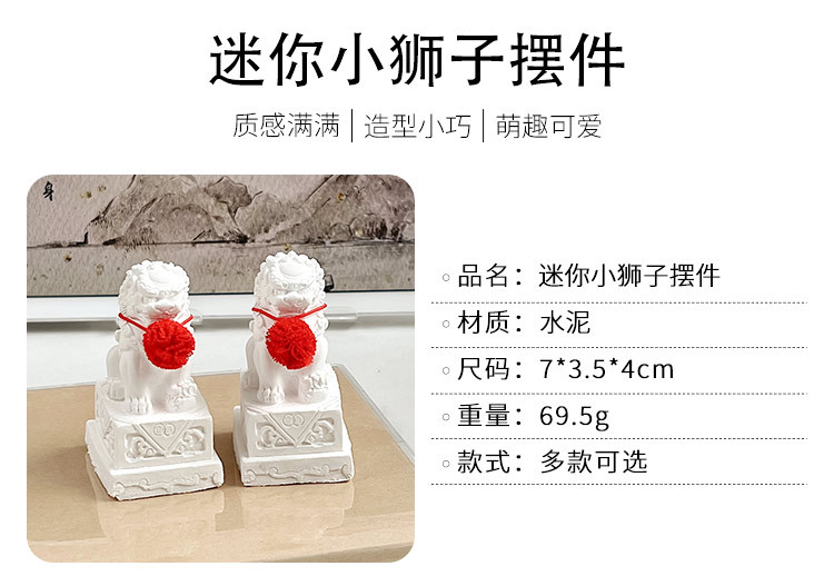 镇宅石狮子一对网红水泥桌面小摆件微缩看门神兽小狮子新年装饰品