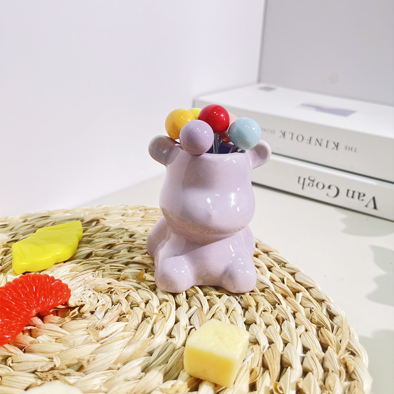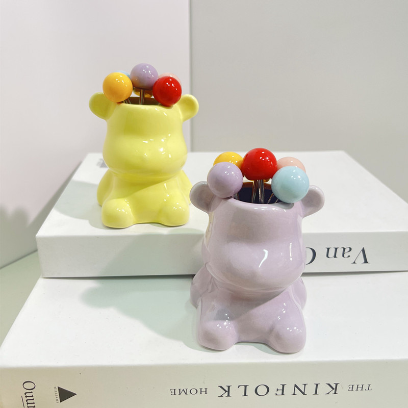 奶油风小号水果叉陶瓷收纳罐桌面家居日用摆件假花花瓶花盆装饰品