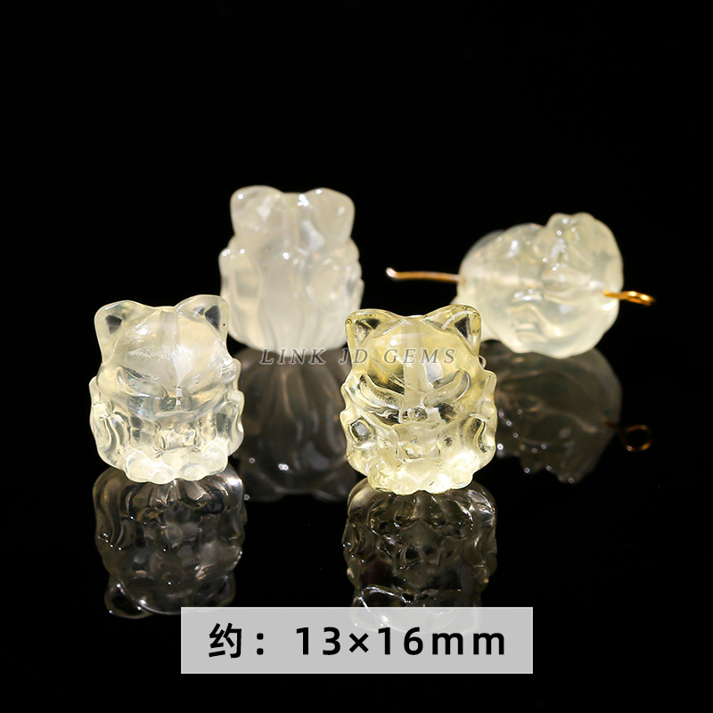 晶德珠宝 天然柠檬晶雕刻件单颗黄水晶猫爪醒狮头diy饰品配件批发