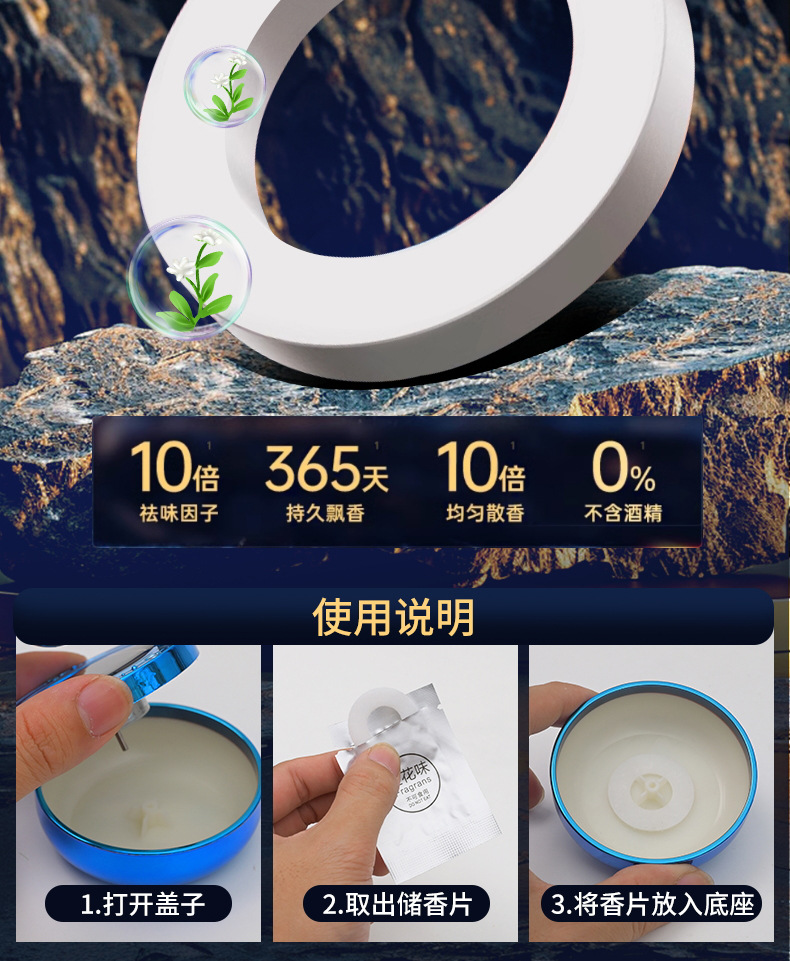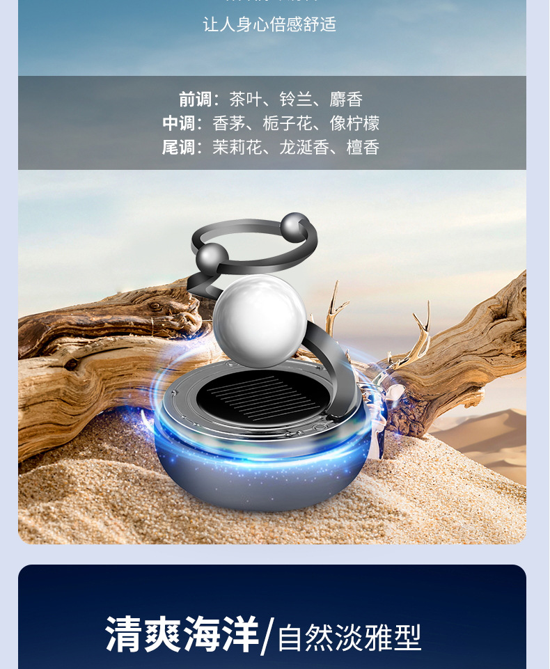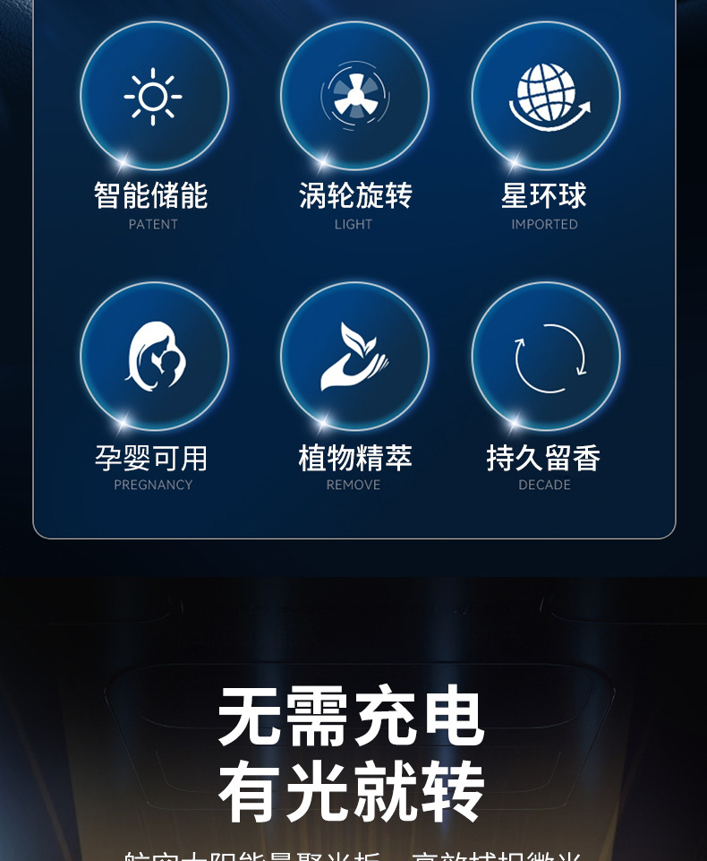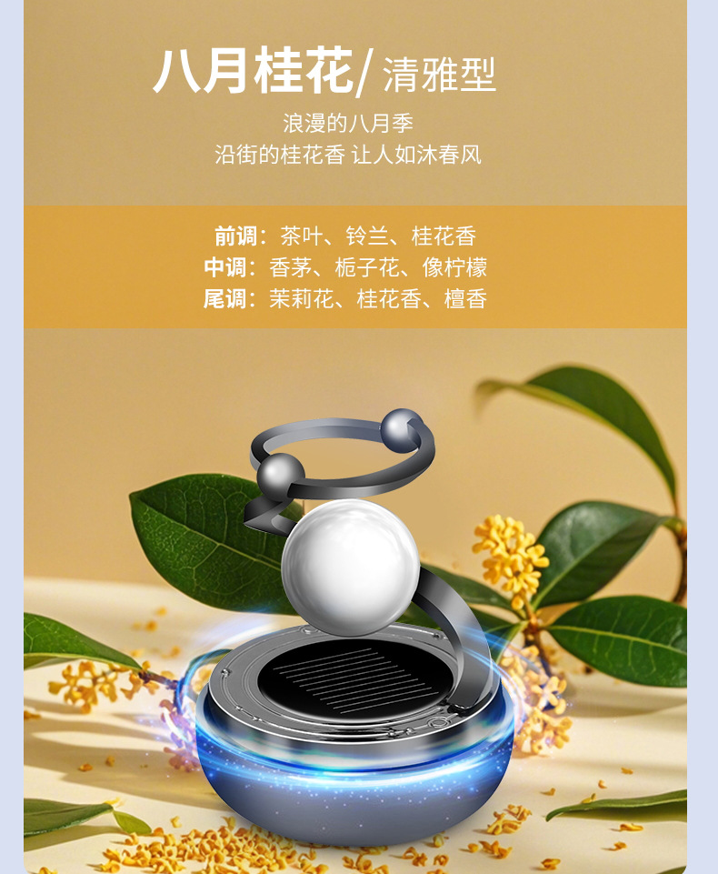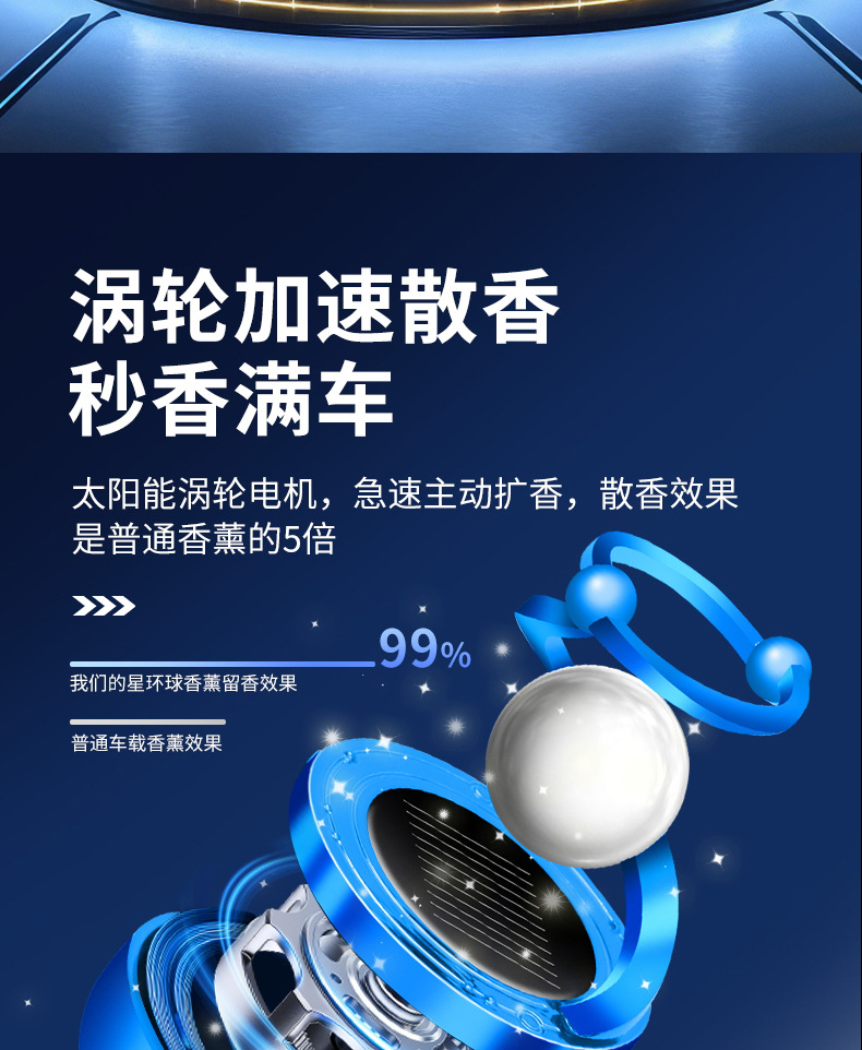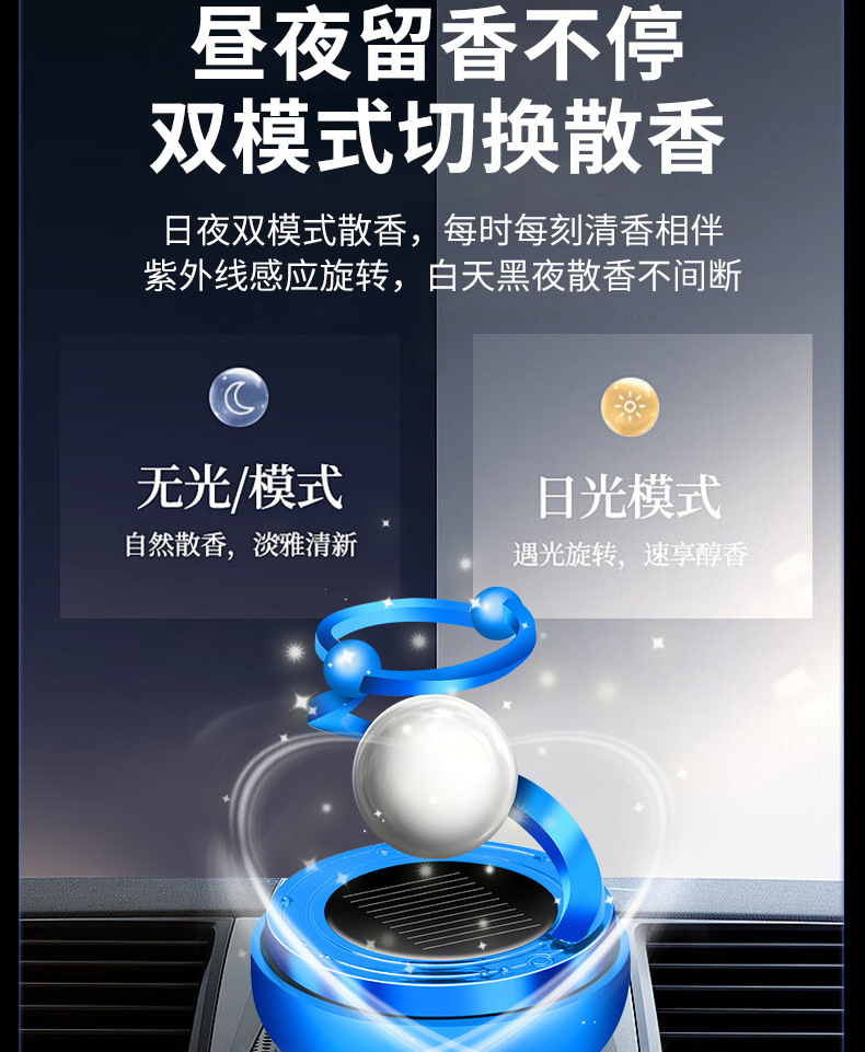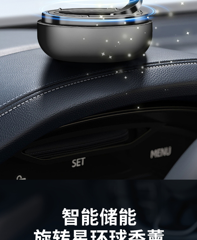 跨境车载创意太阳能星环旋转香薰汽车车内仪表台高级感香薰摆件