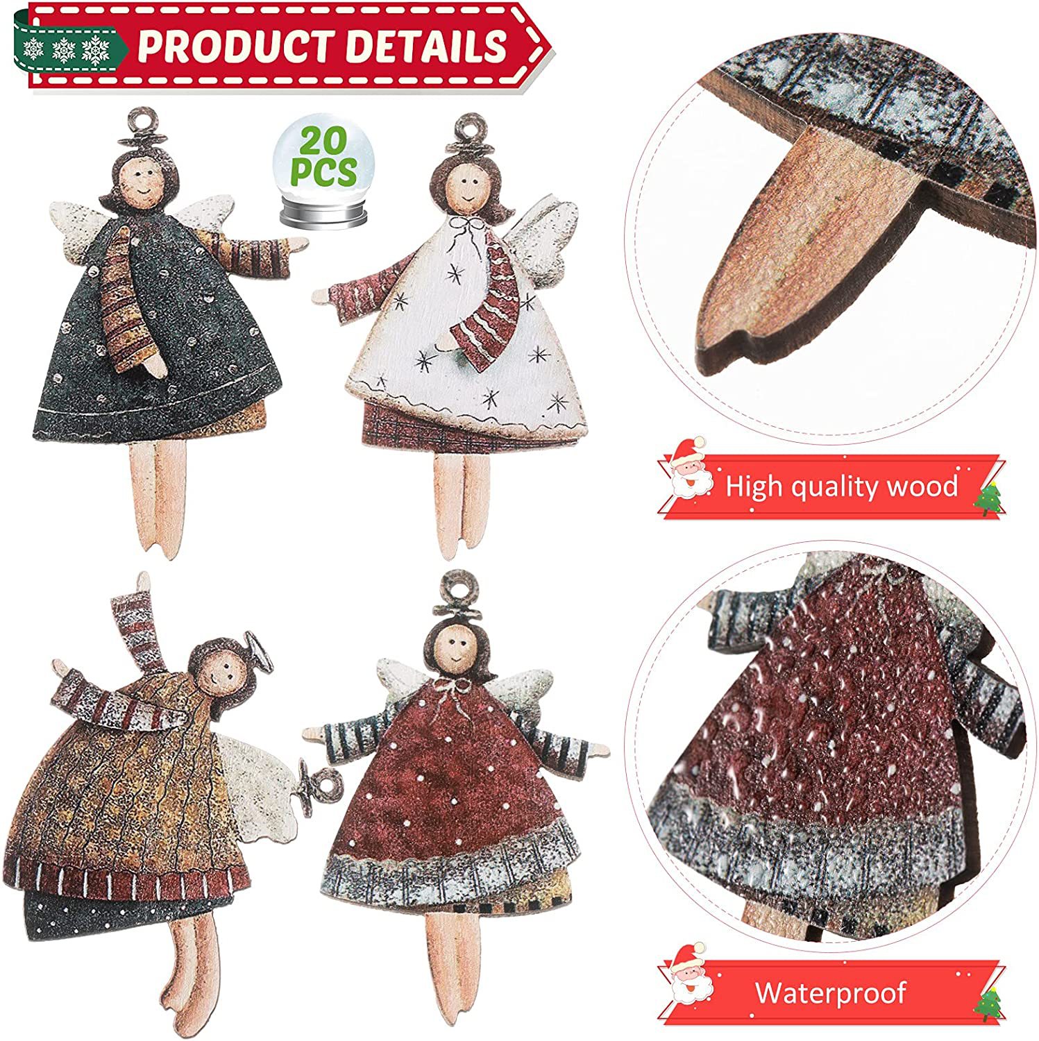 20件圣诞舞蹈天使装饰天使娃娃吊坠跳舞飞行天使吊坠圣诞树挂饰