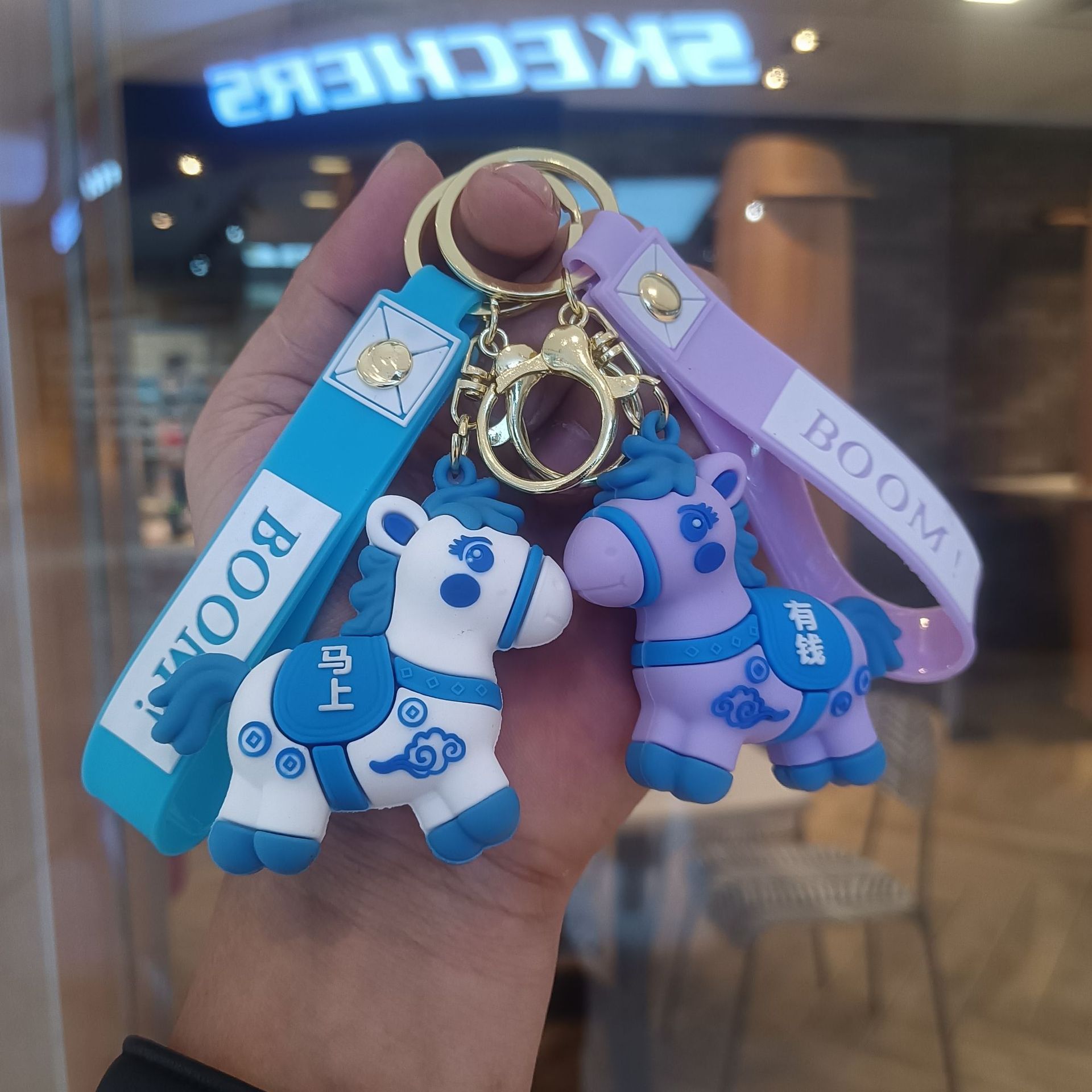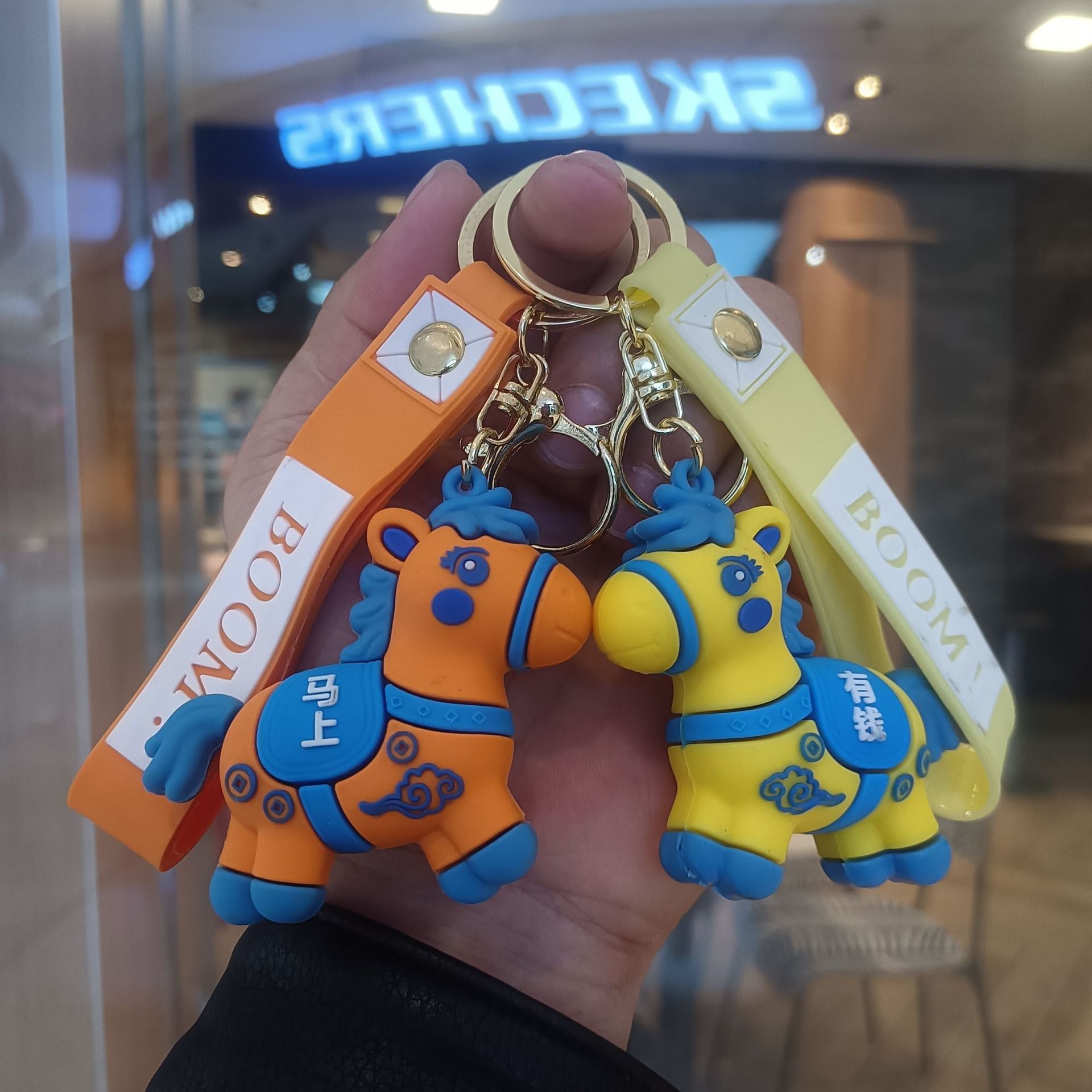 马年吉祥物生肖马上有钱钥匙扣卡通汽车包包钥匙链挂件娃娃机礼品