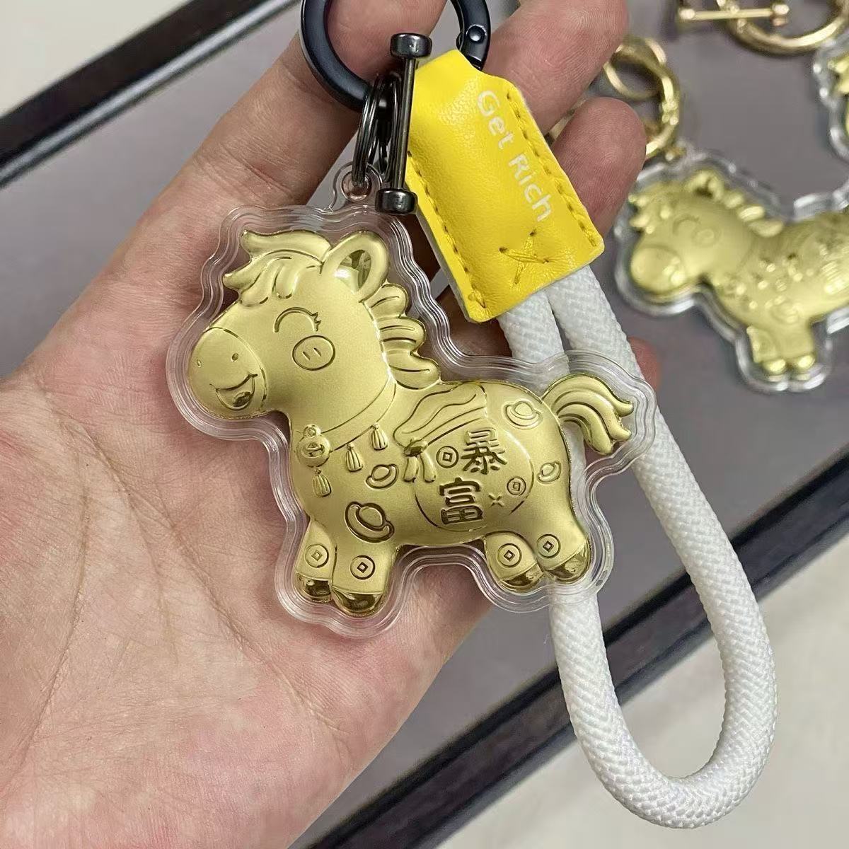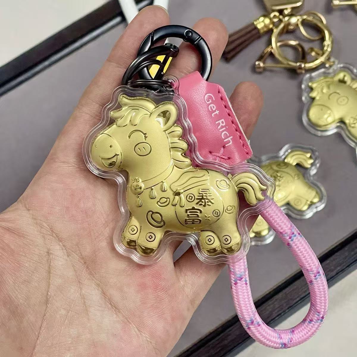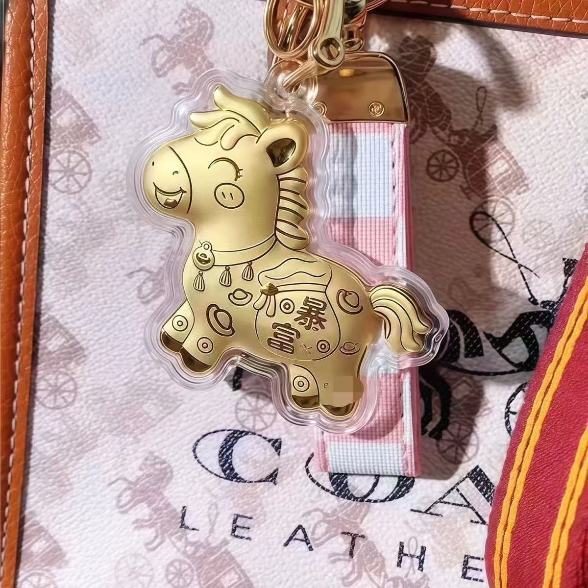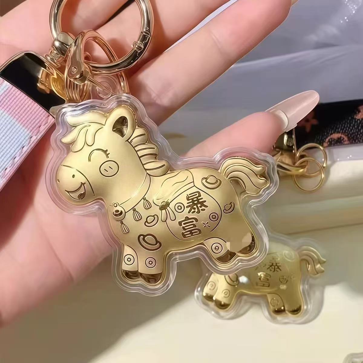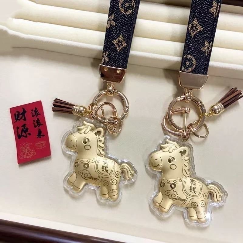含金马上有钱钥匙扣999足金20mg手机挂件黄金礼品金店送顾客引流