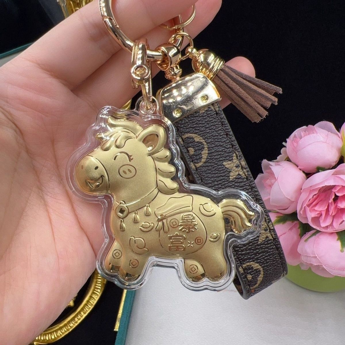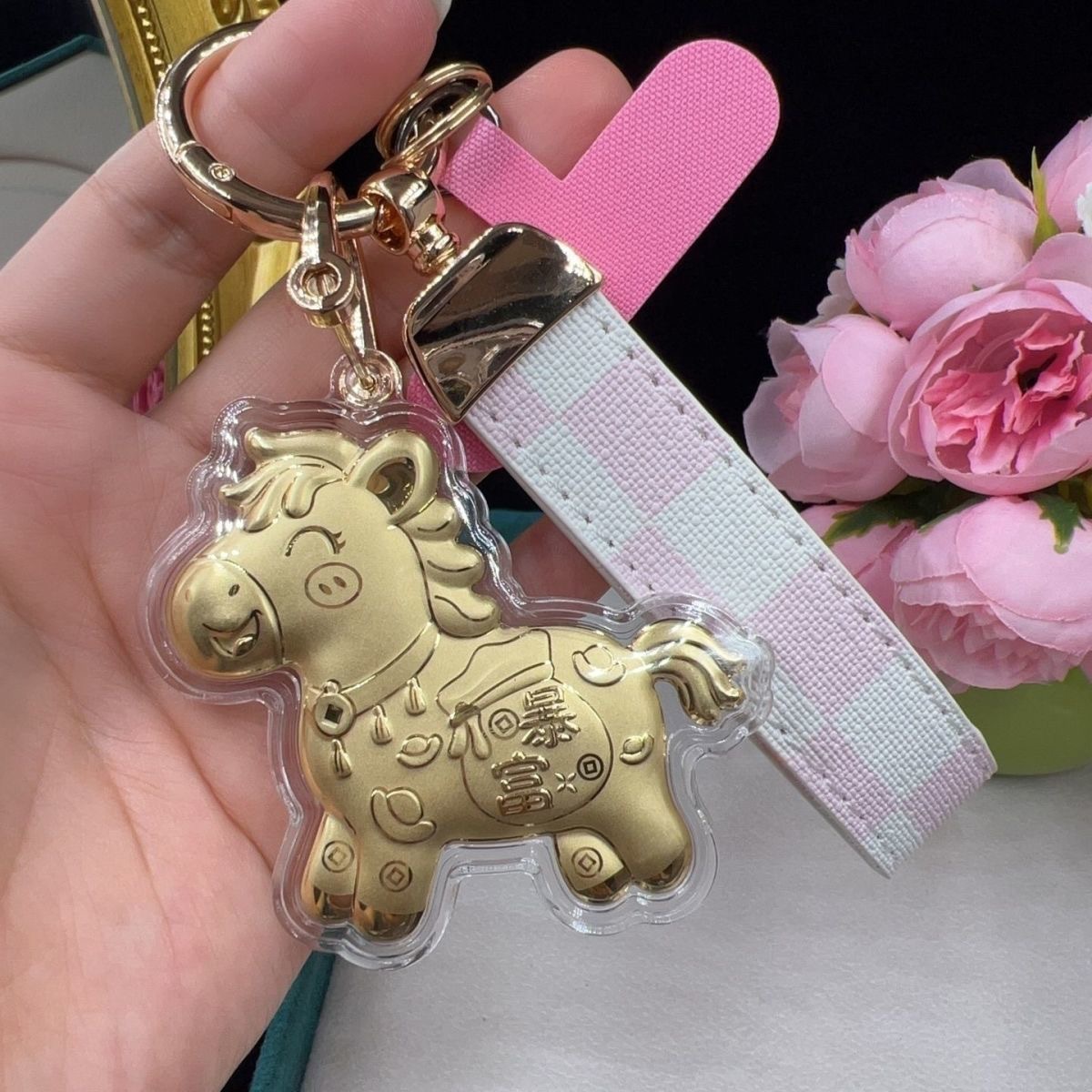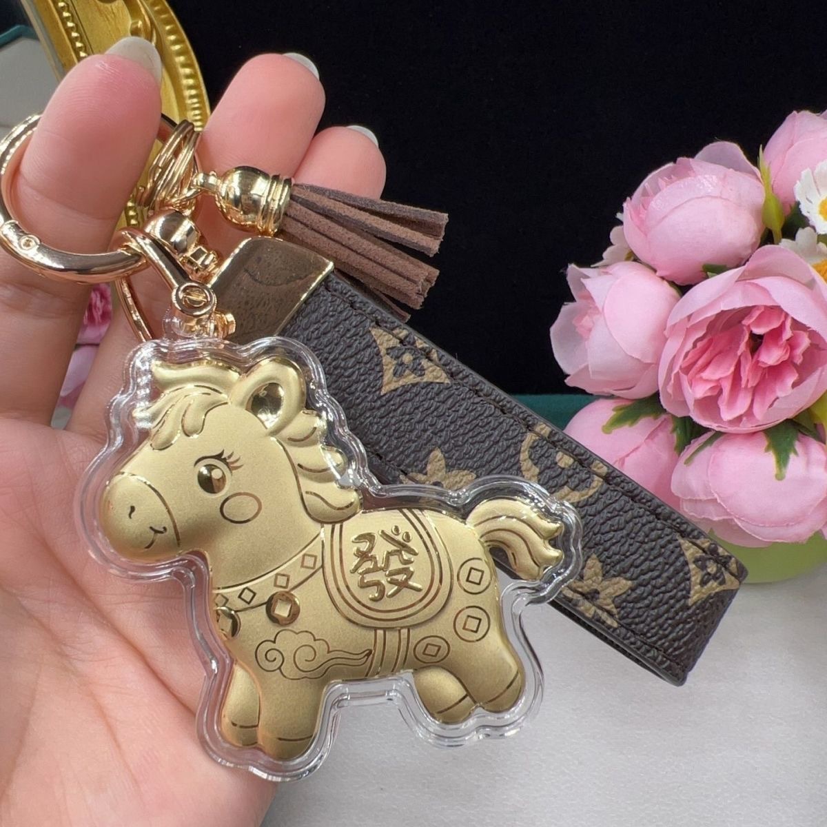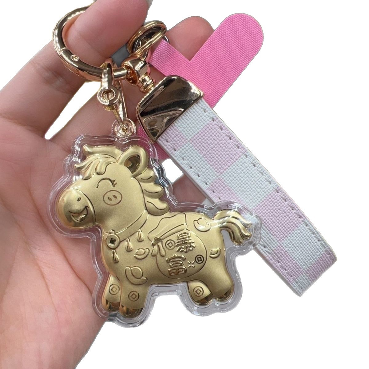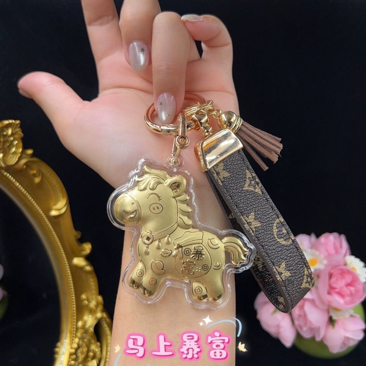 含金马上有钱钥匙扣999足金20mg手机挂件黄金礼品金店送顾客引流
