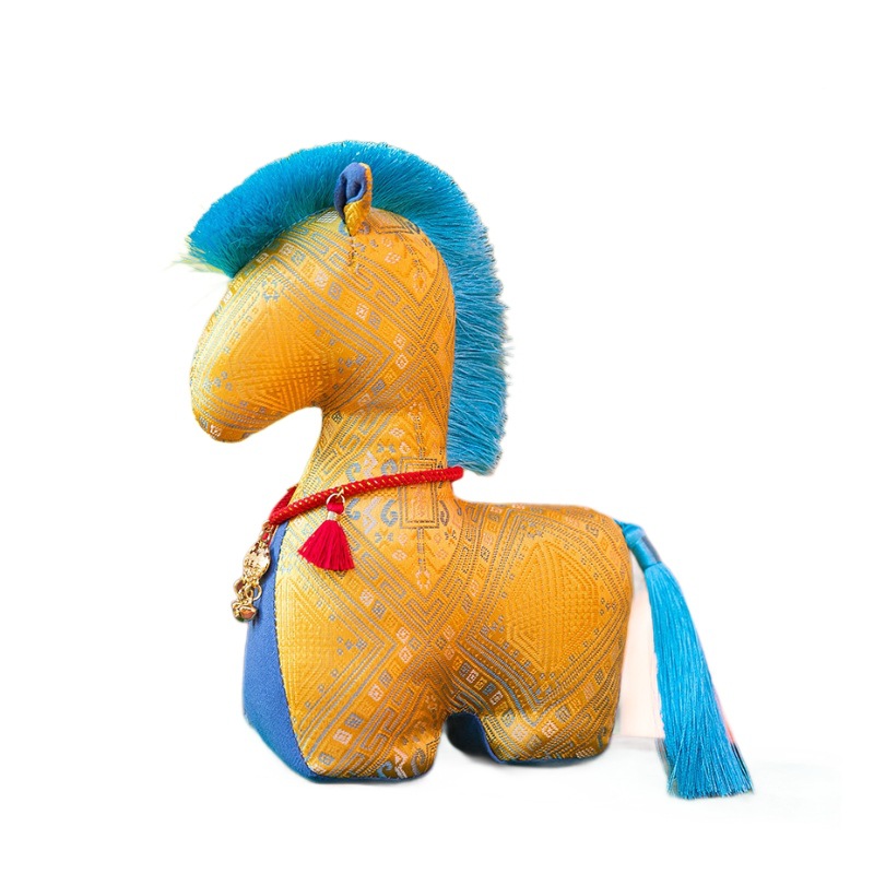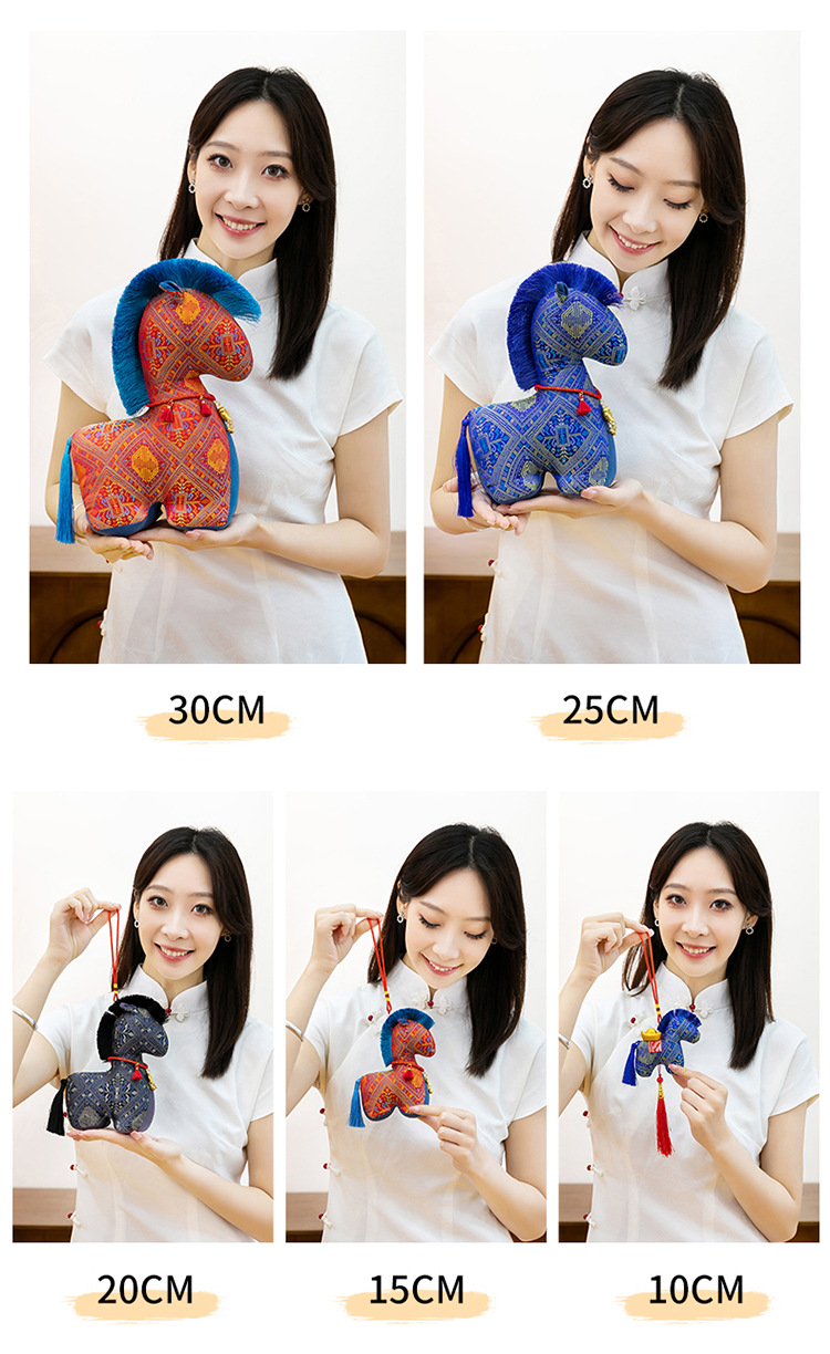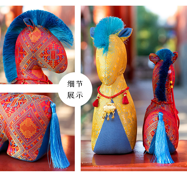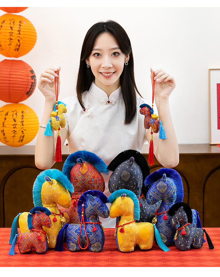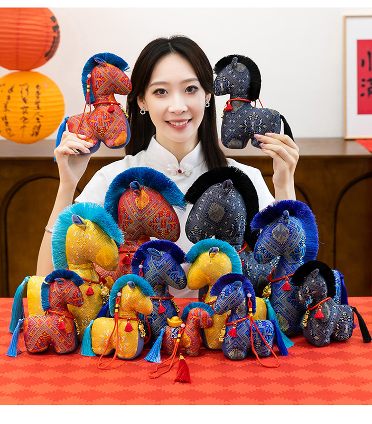 新款国风布艺马年公仔新年花布马毛绒玩具挂件生肖马玩偶年会礼品