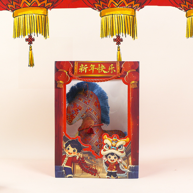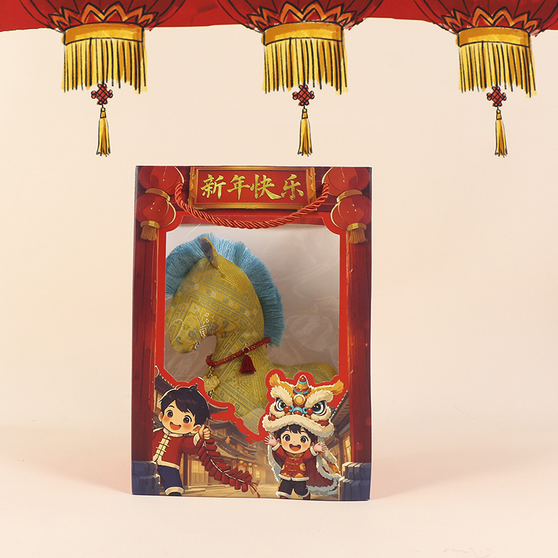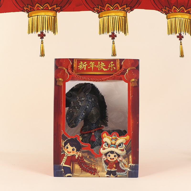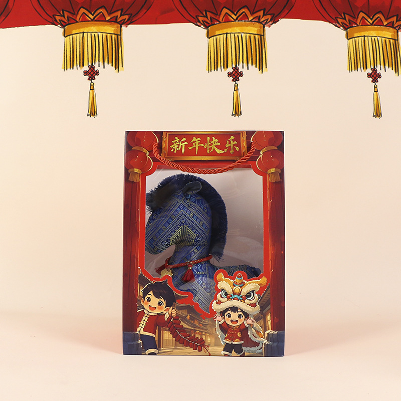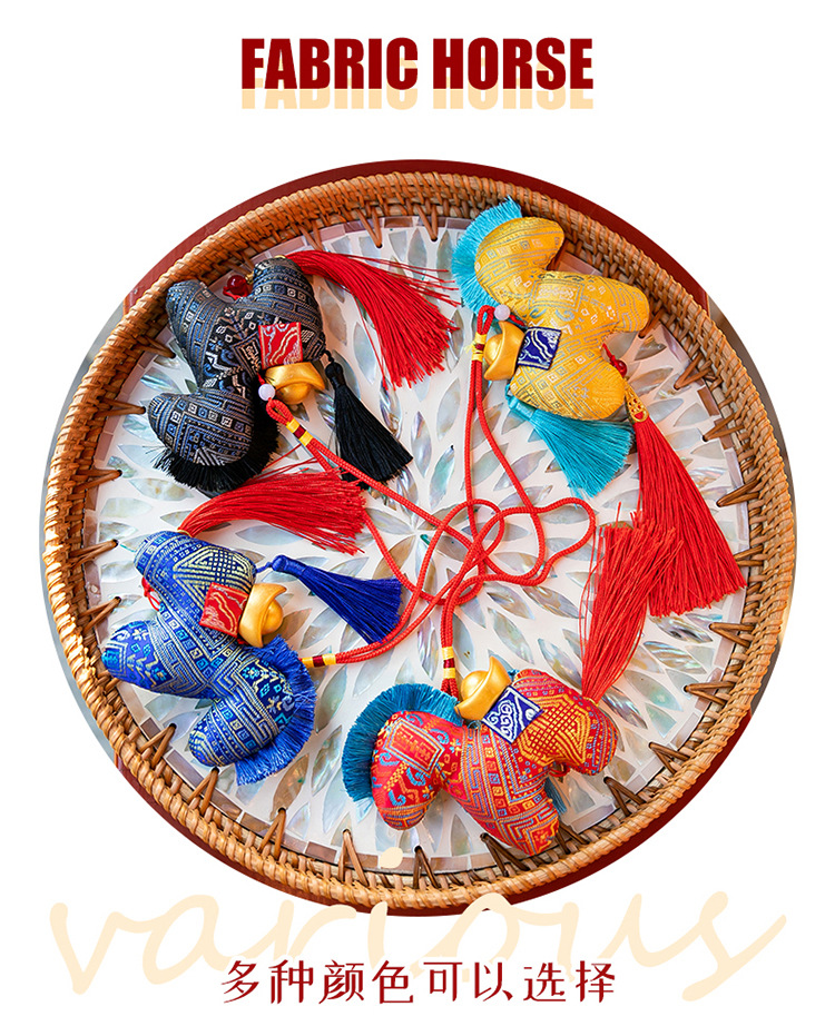 新款国风布艺马年公仔新年花布马毛绒玩具挂件生肖马玩偶年会礼品