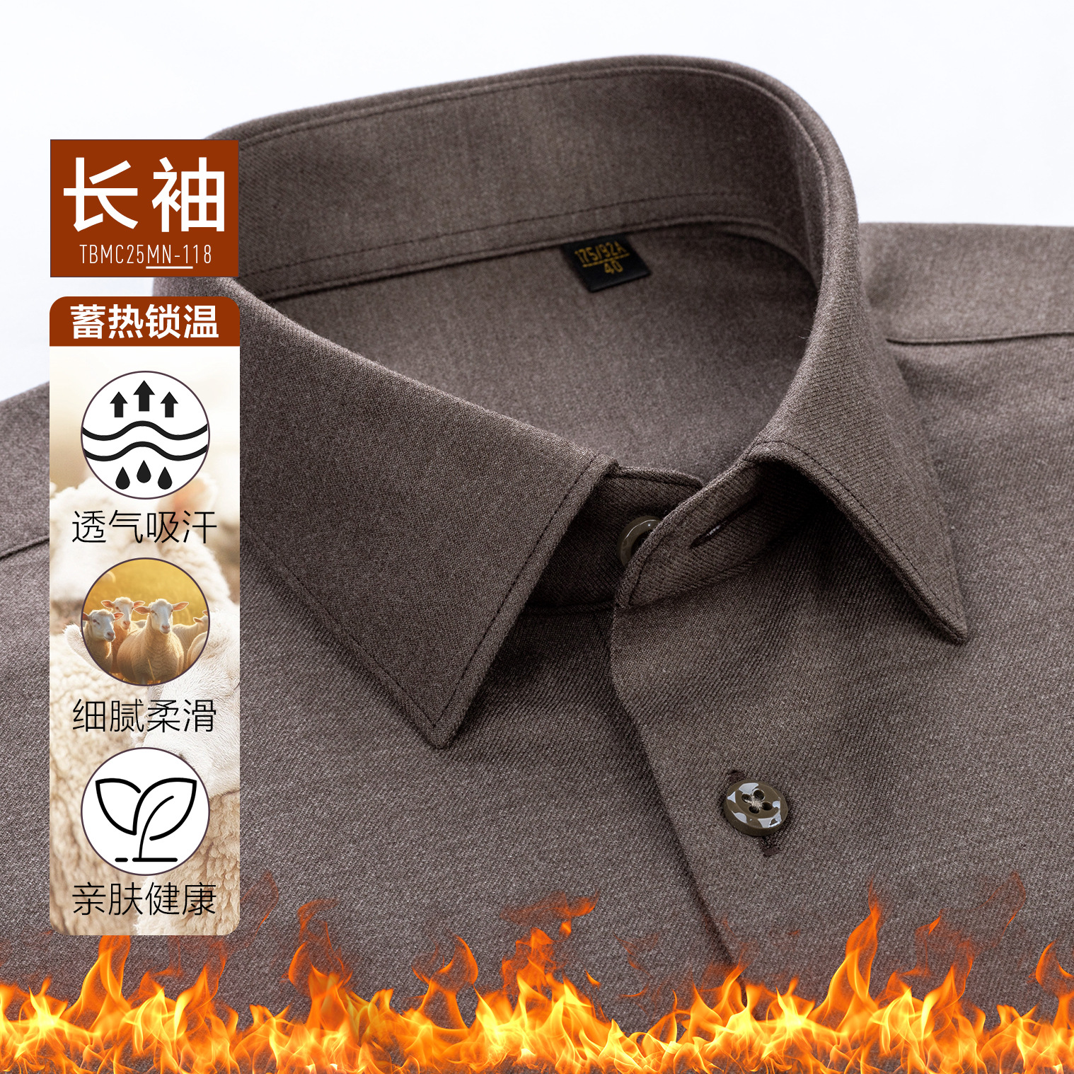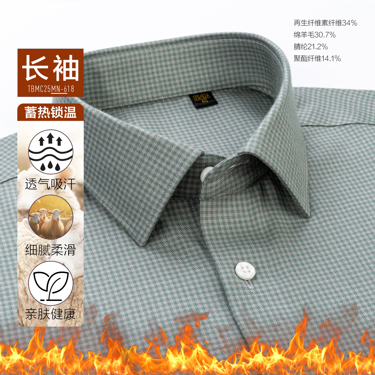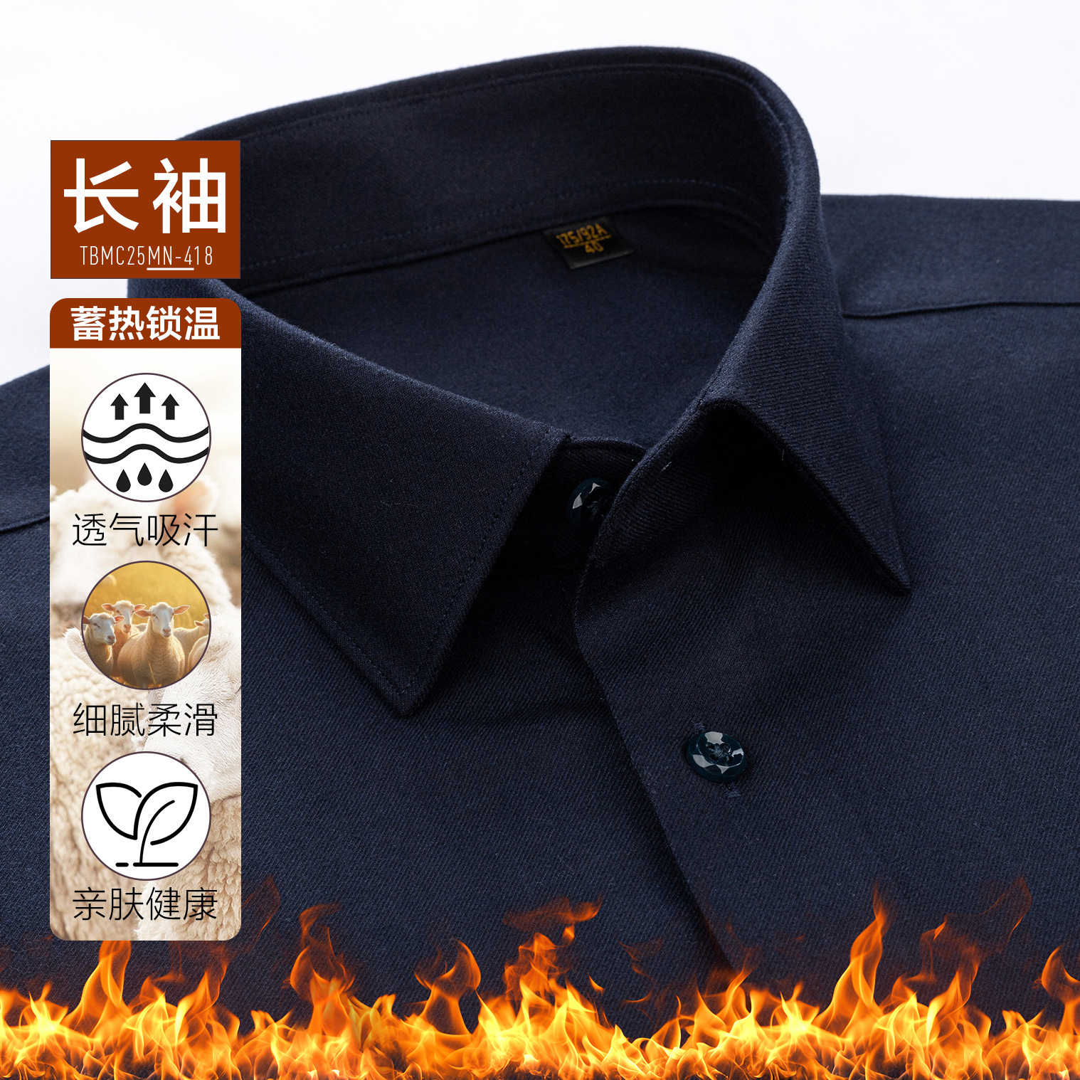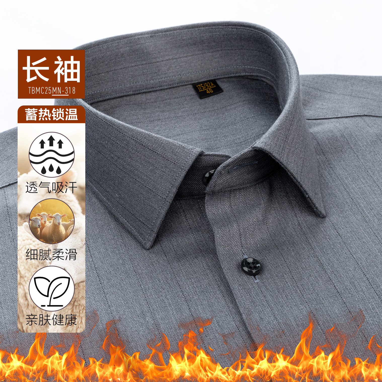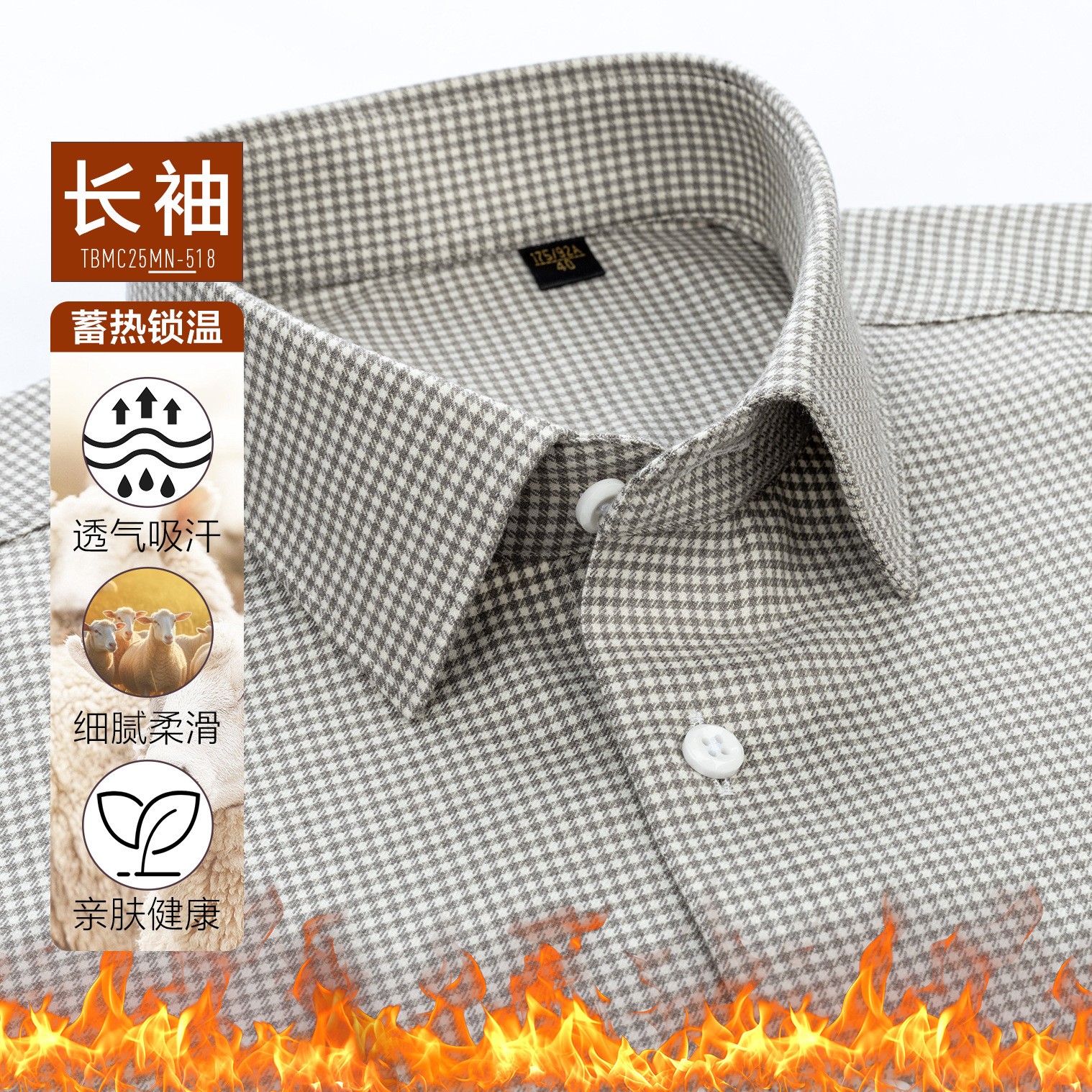 秋冬款精纺羊毛衬衫男休闲加厚磨毛保暖抗邹商务免烫衬衣男士长袖