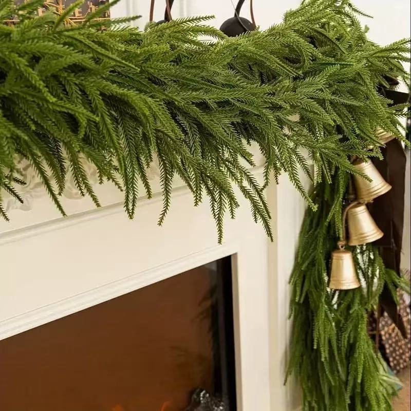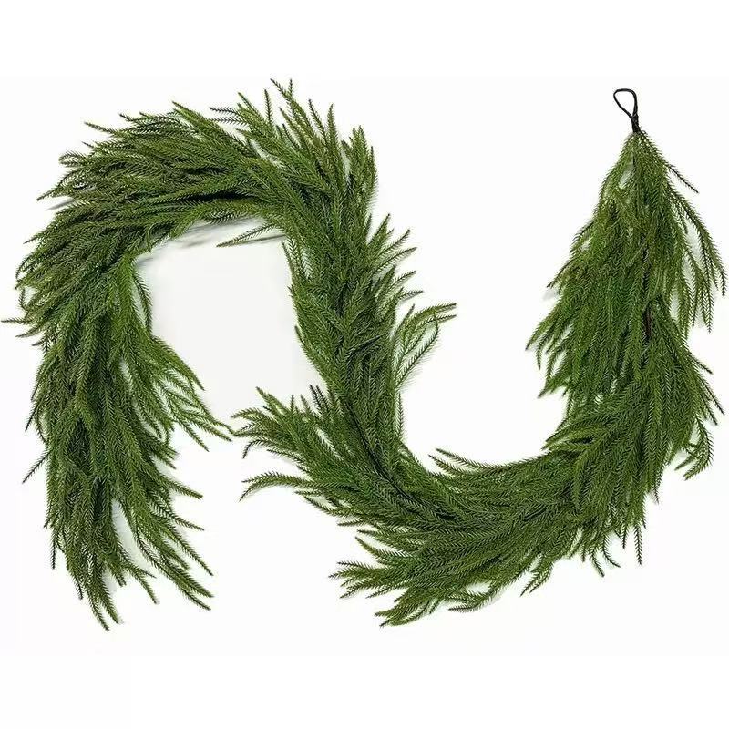 跨境亚马逊仿真松针藤条圣诞装饰柏叶松树福克斯松门挂门饰花环