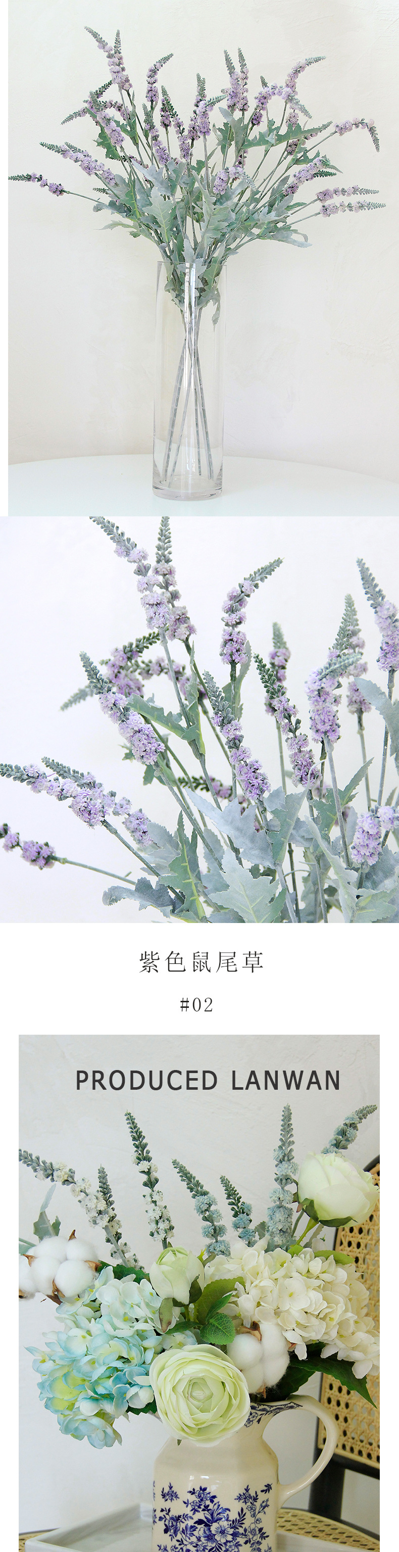 ins风仿真花植绒鼠尾草假花餐桌花摆件室内装饰复古绿植花束 拍摄