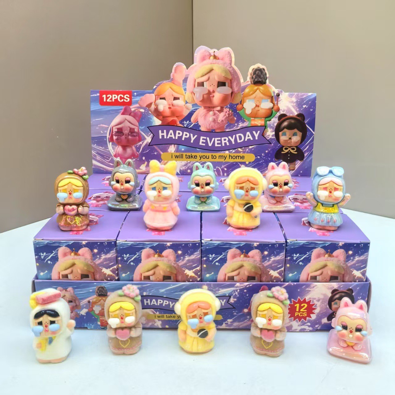 秋冬款植绒飞天哭娃盲盒公仔萌粒摆件小女警立体玩具潮玩批发盲盒